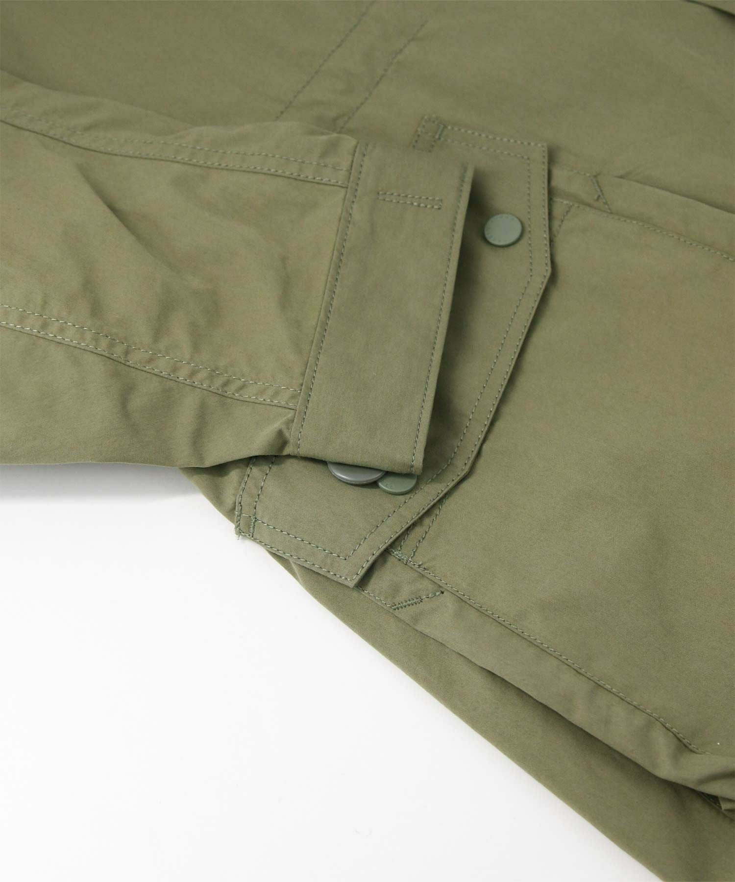 適度なハリコシがありながらも程よいしなやかさが特徴のバイオ加工を施した綿ポリエステルのハイカウントウェザーを使用。
