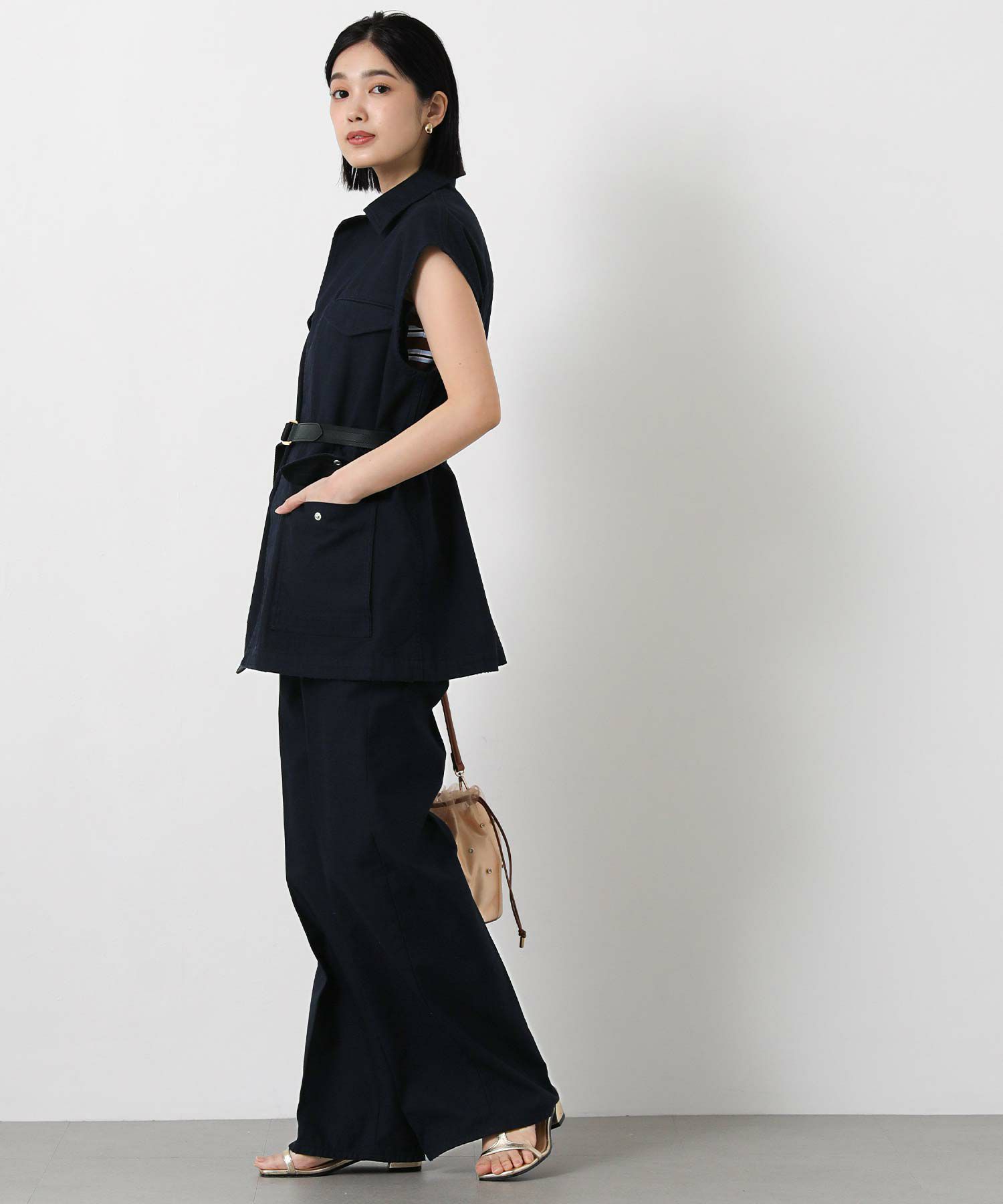 同素材のルミノアマリンワイドパンツ(SE1171426003)とセットアップでの着用もオススメ。