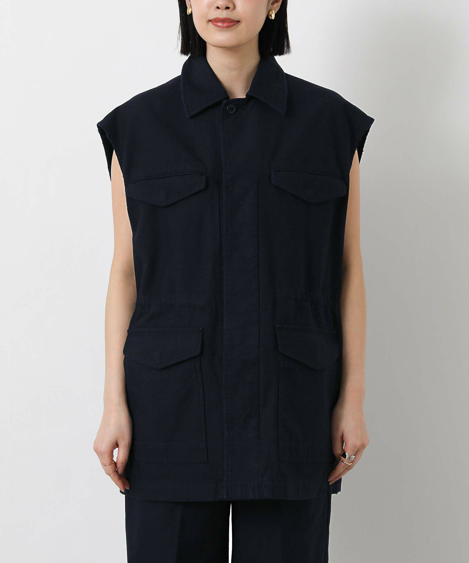 身頃に4つ配したポケットで、ワーク感があり程よくカジュアルダウンに着用できます。