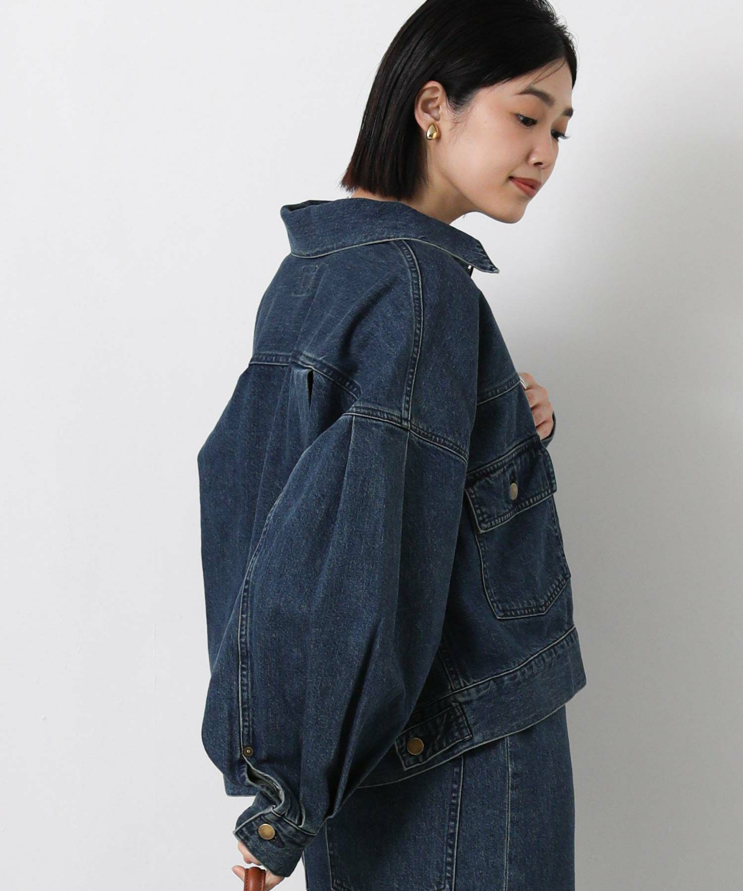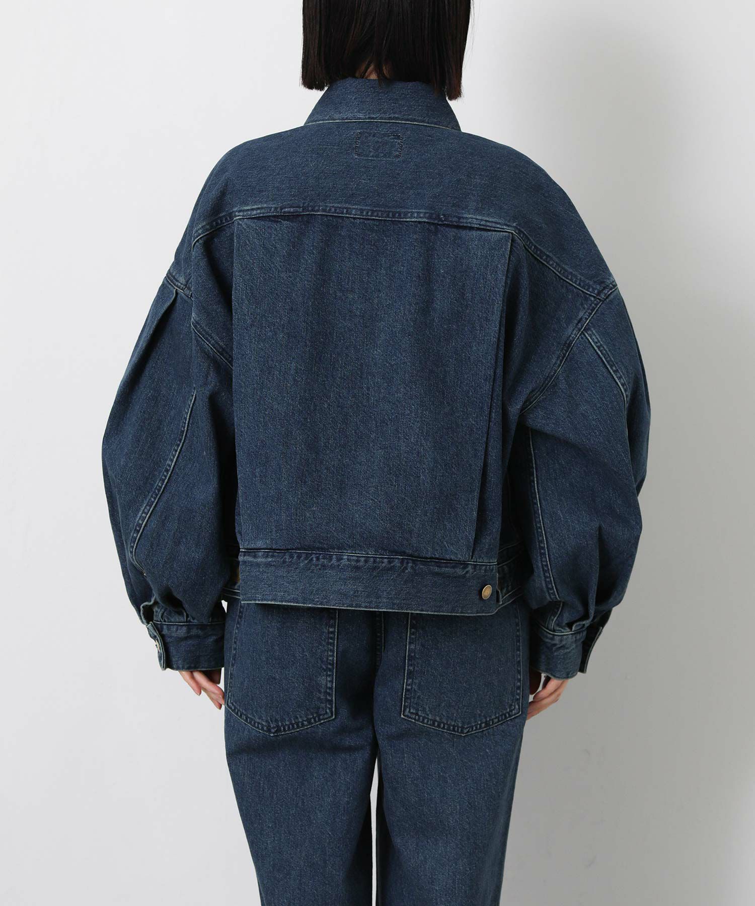 ハリのある生地感と後ろ身頃と袖のボリュームのバランスがポイントで、着用するだけでスタイルが決まる1着。