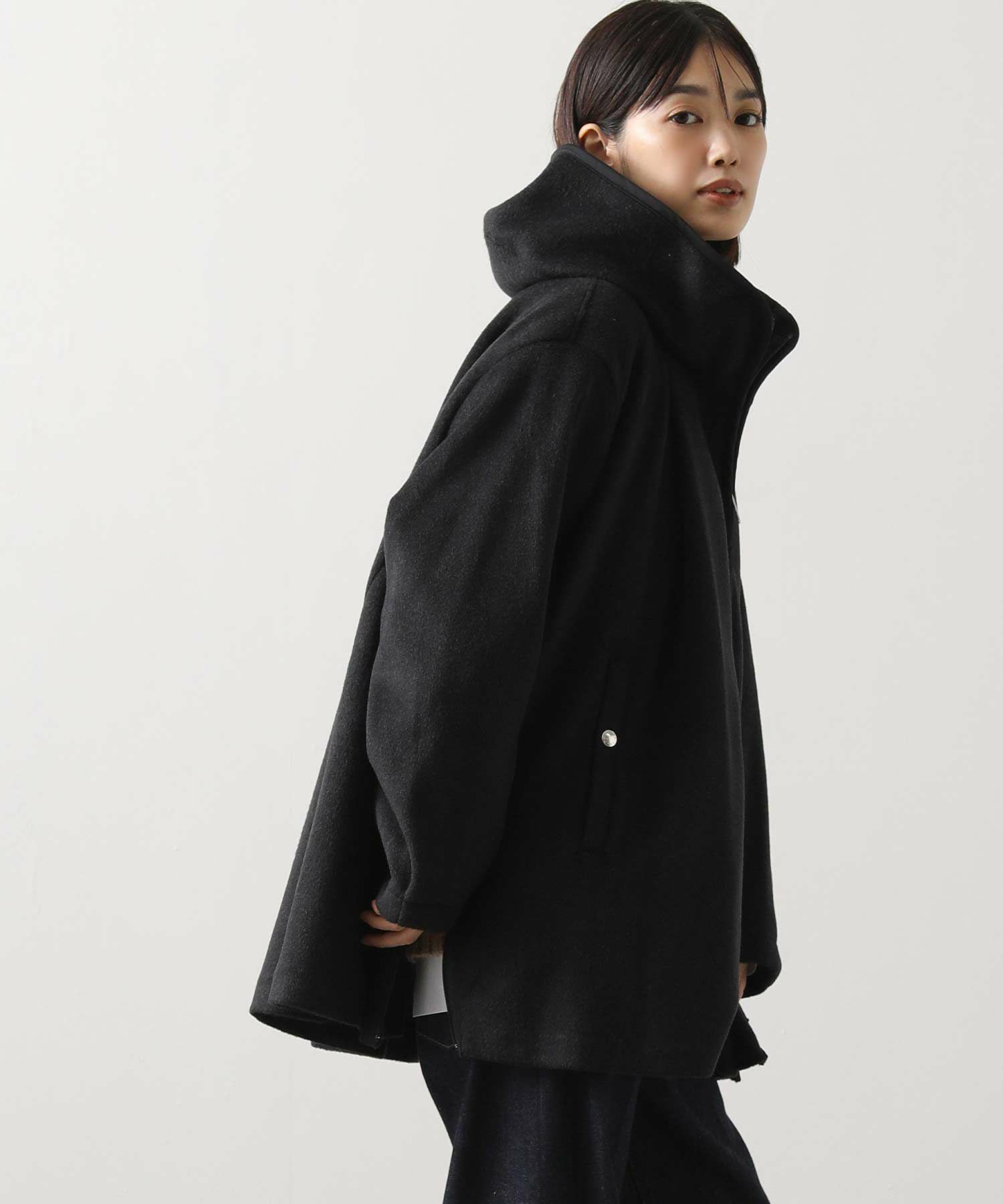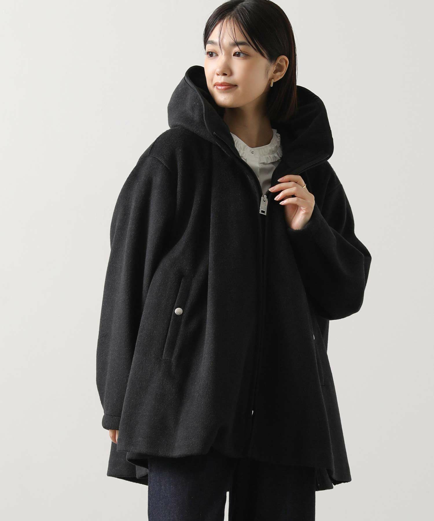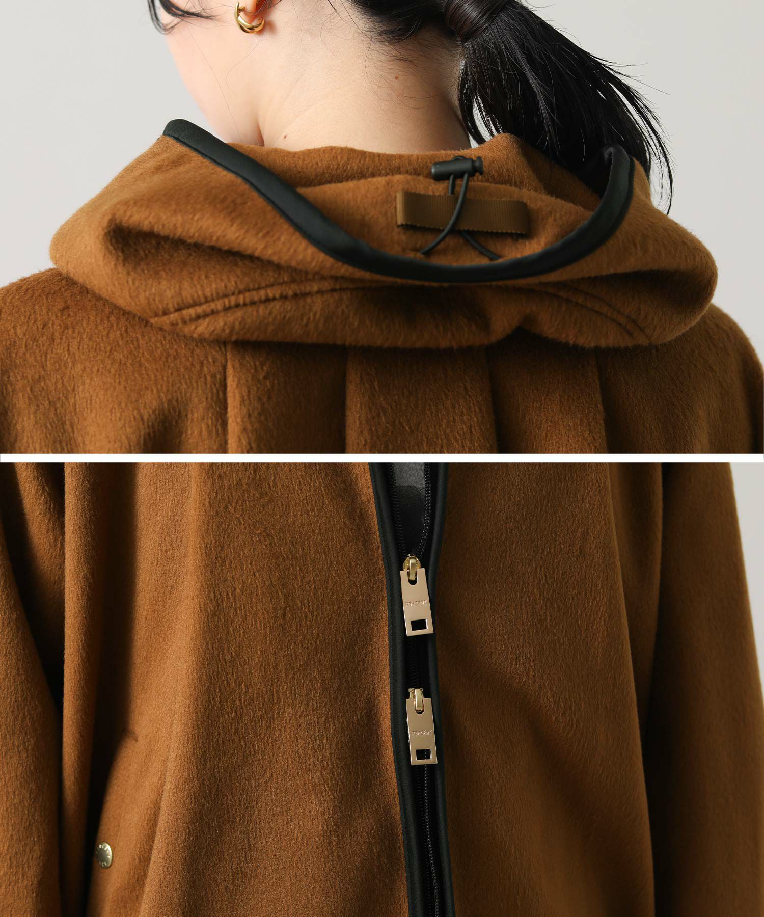 立体的に作られたフードが、小顔効果も◎シンプルながらもこだわりのあるディテールが魅力。