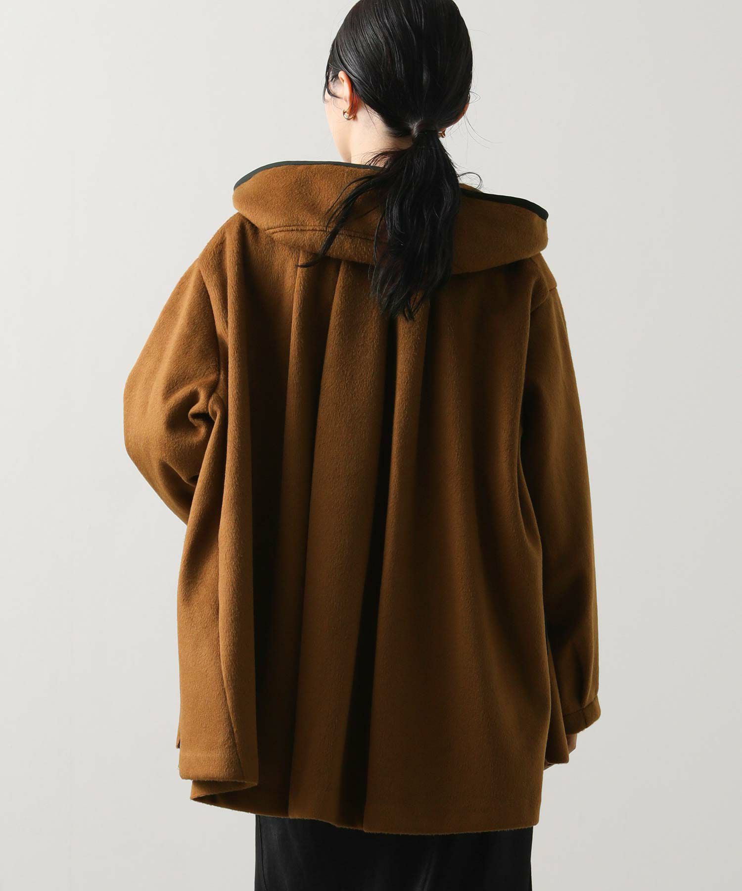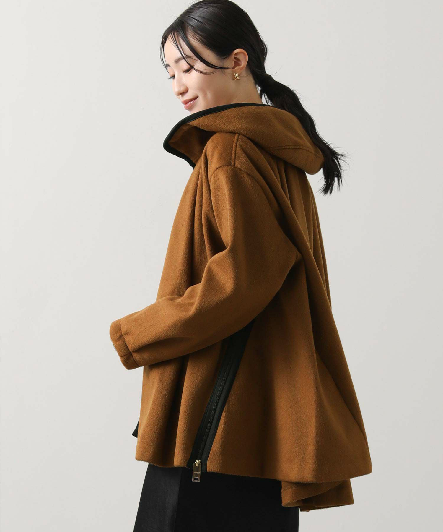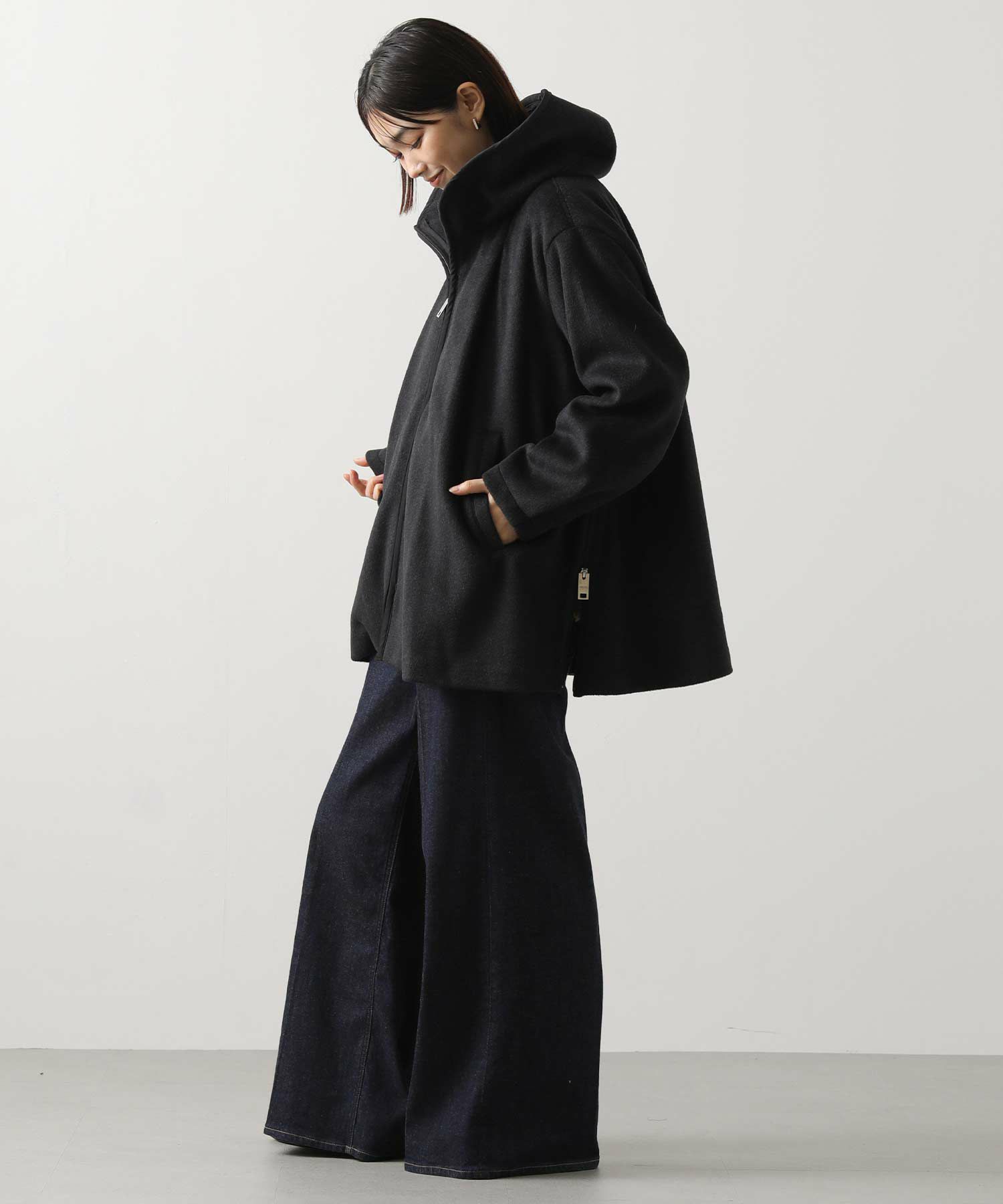 立体的に作られたフードが、小顔効果も◎シンプルながらもこだわりのあるディテールが魅力。