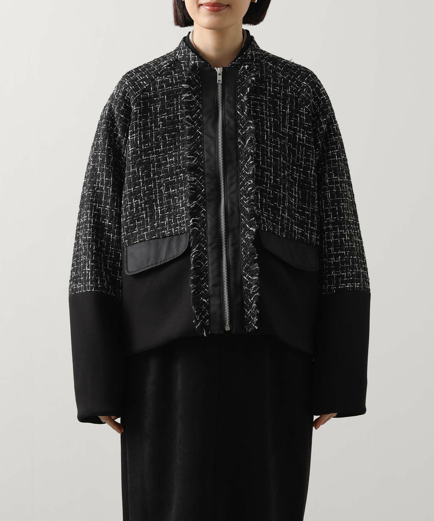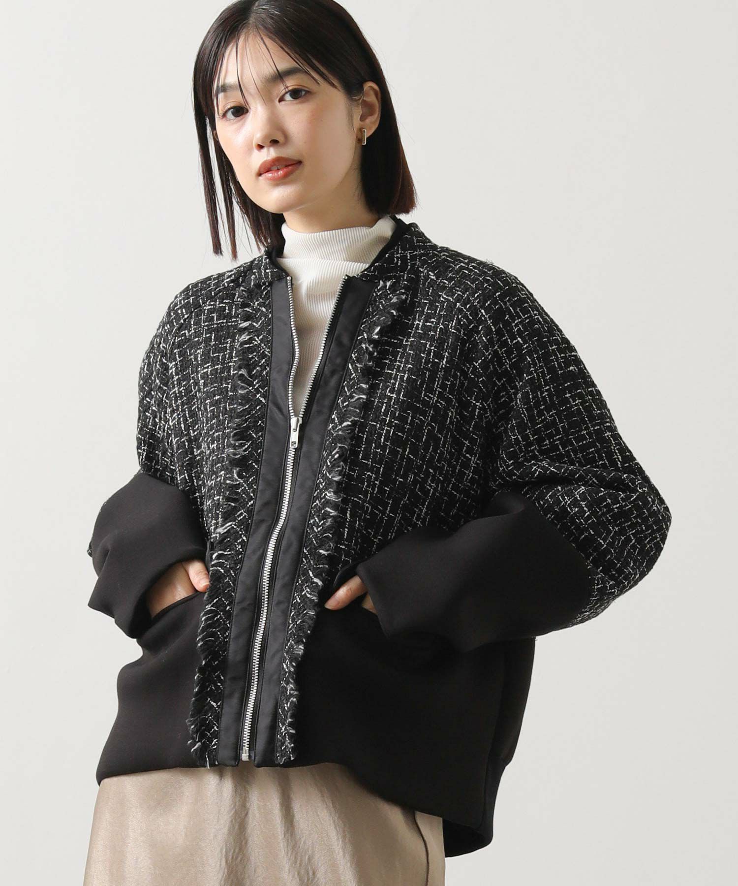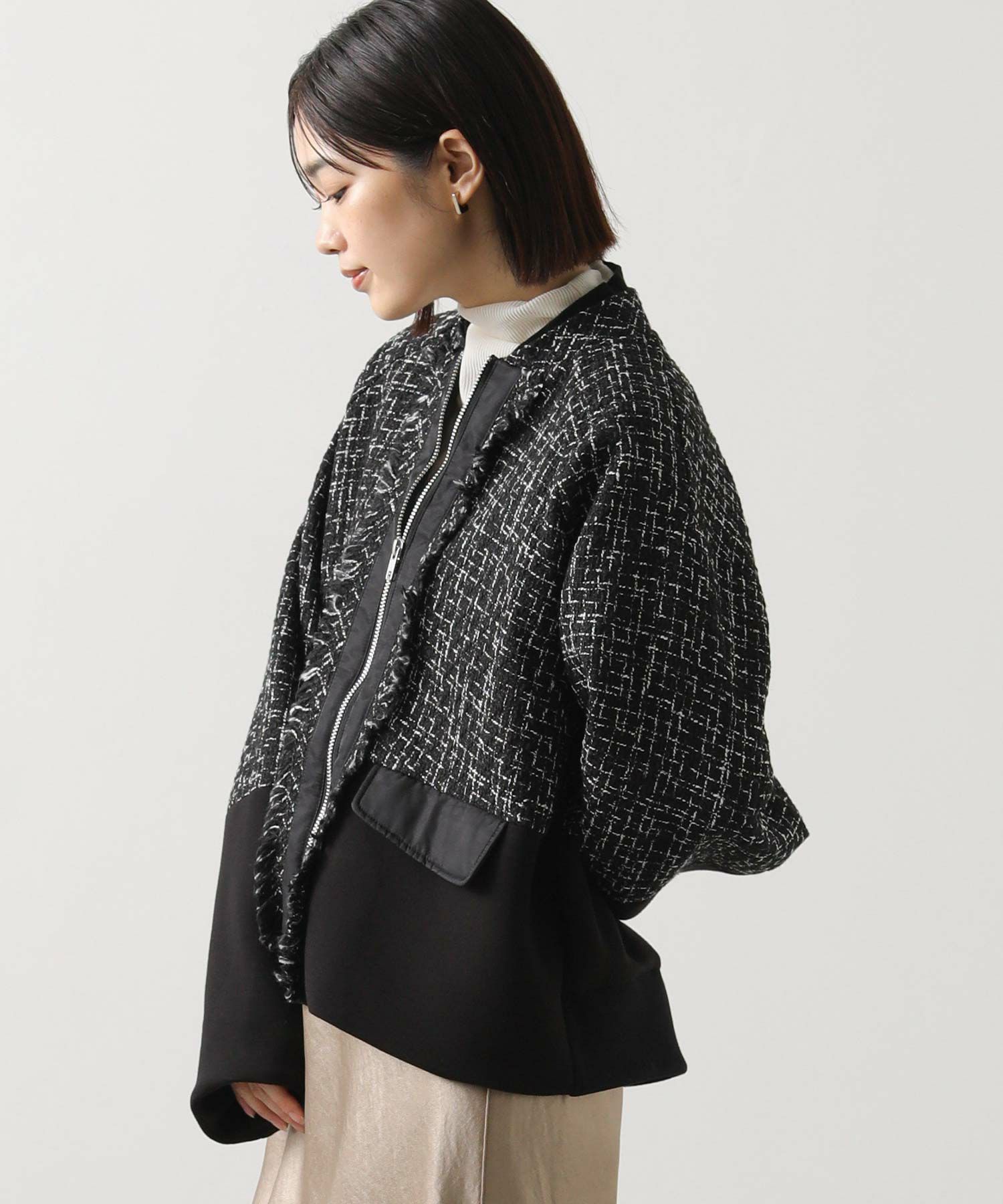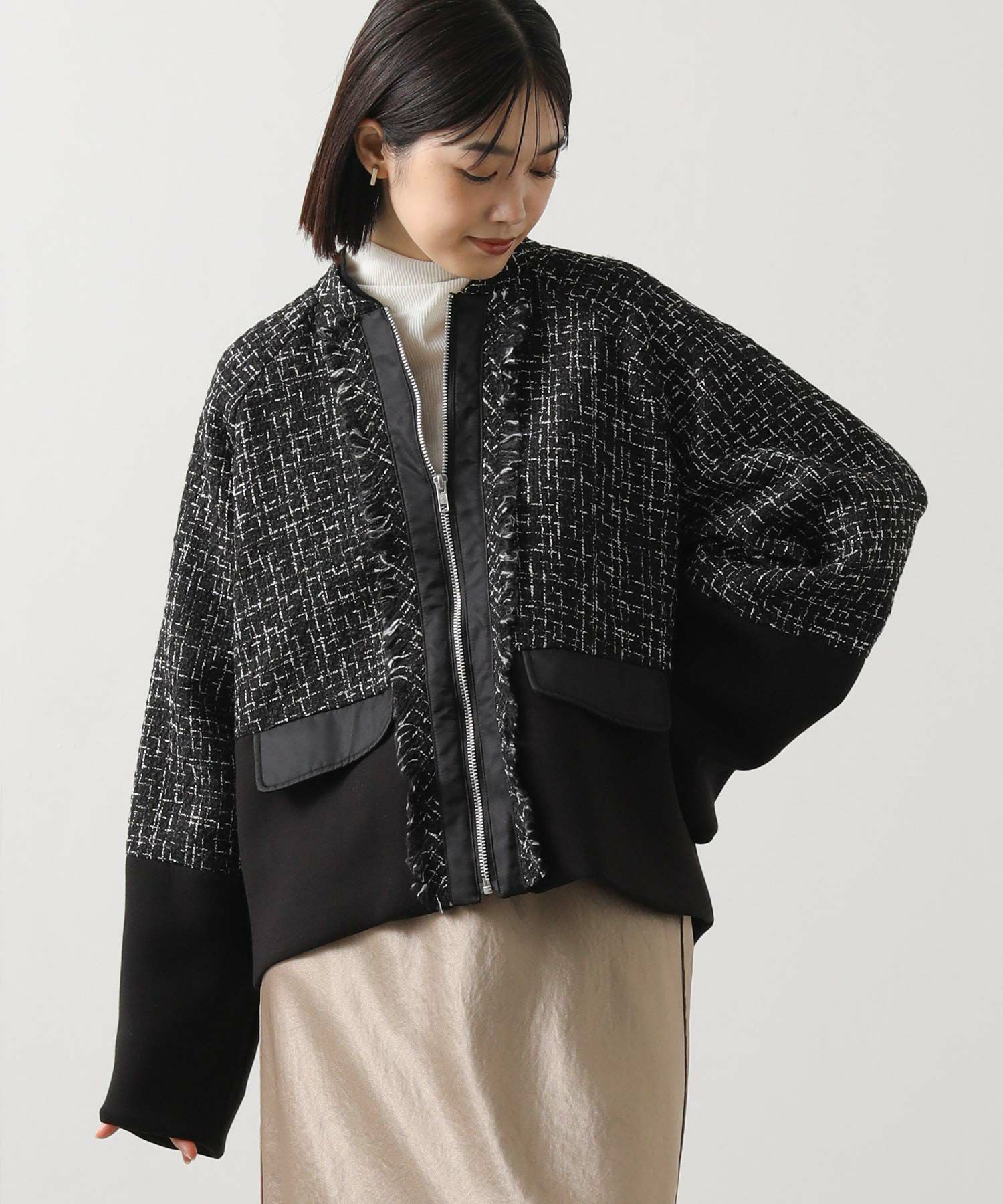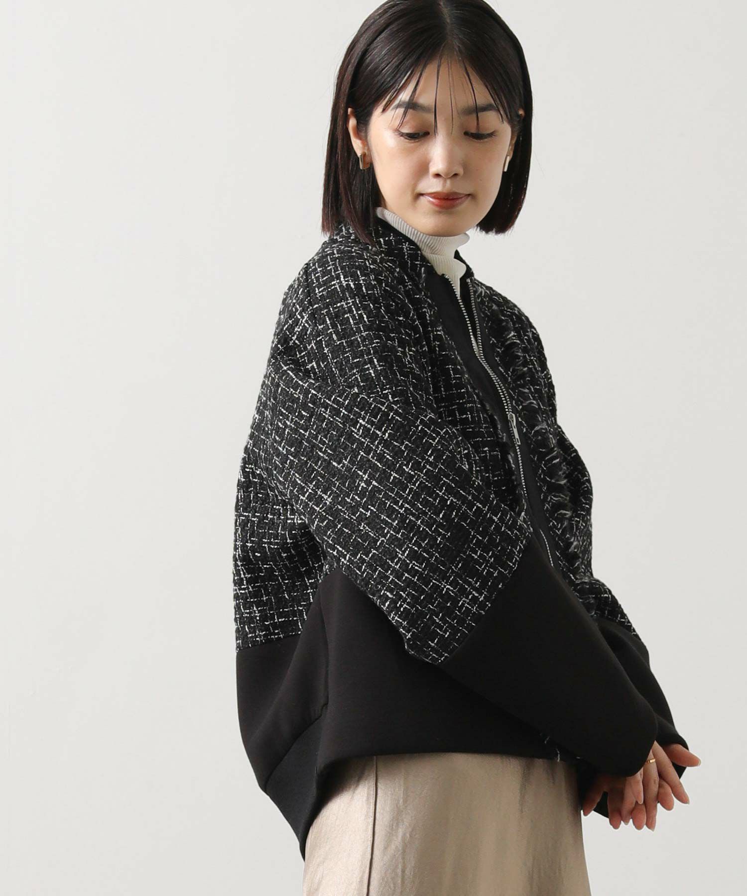 【MARECHALTERRE(マルシャルテル】から、ファンシーツイードとダンボールニットのコンビブルゾンをセレクト。
