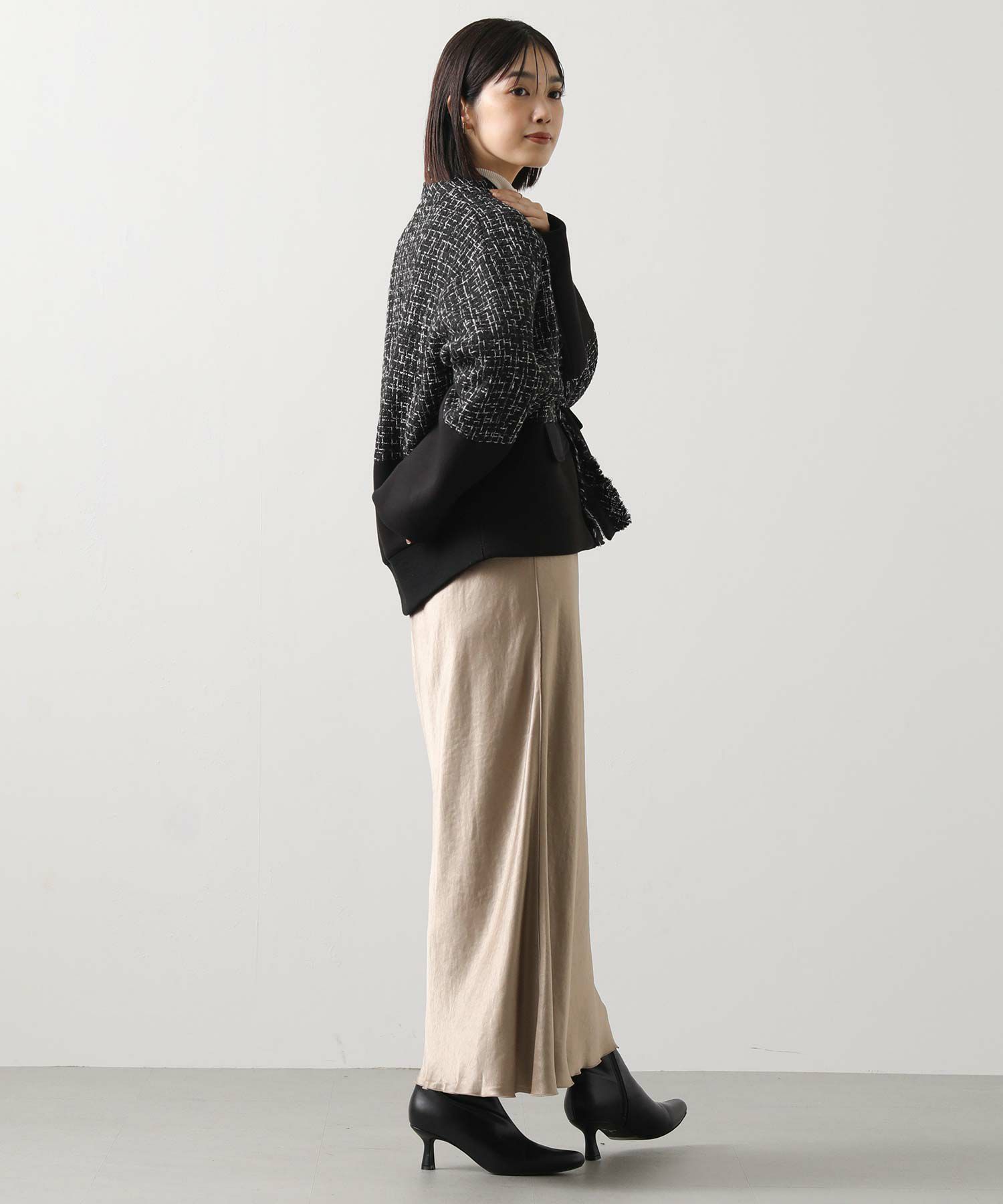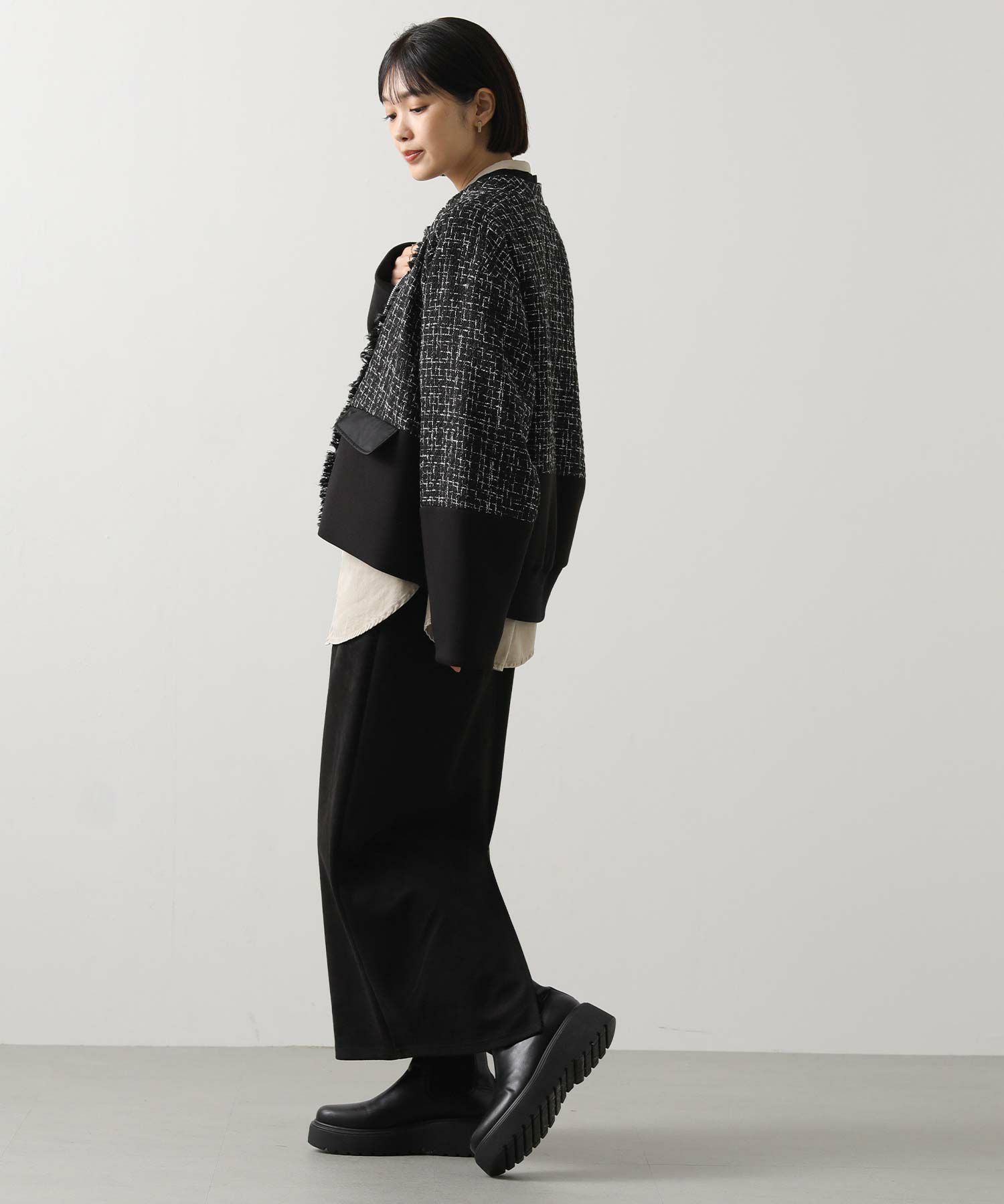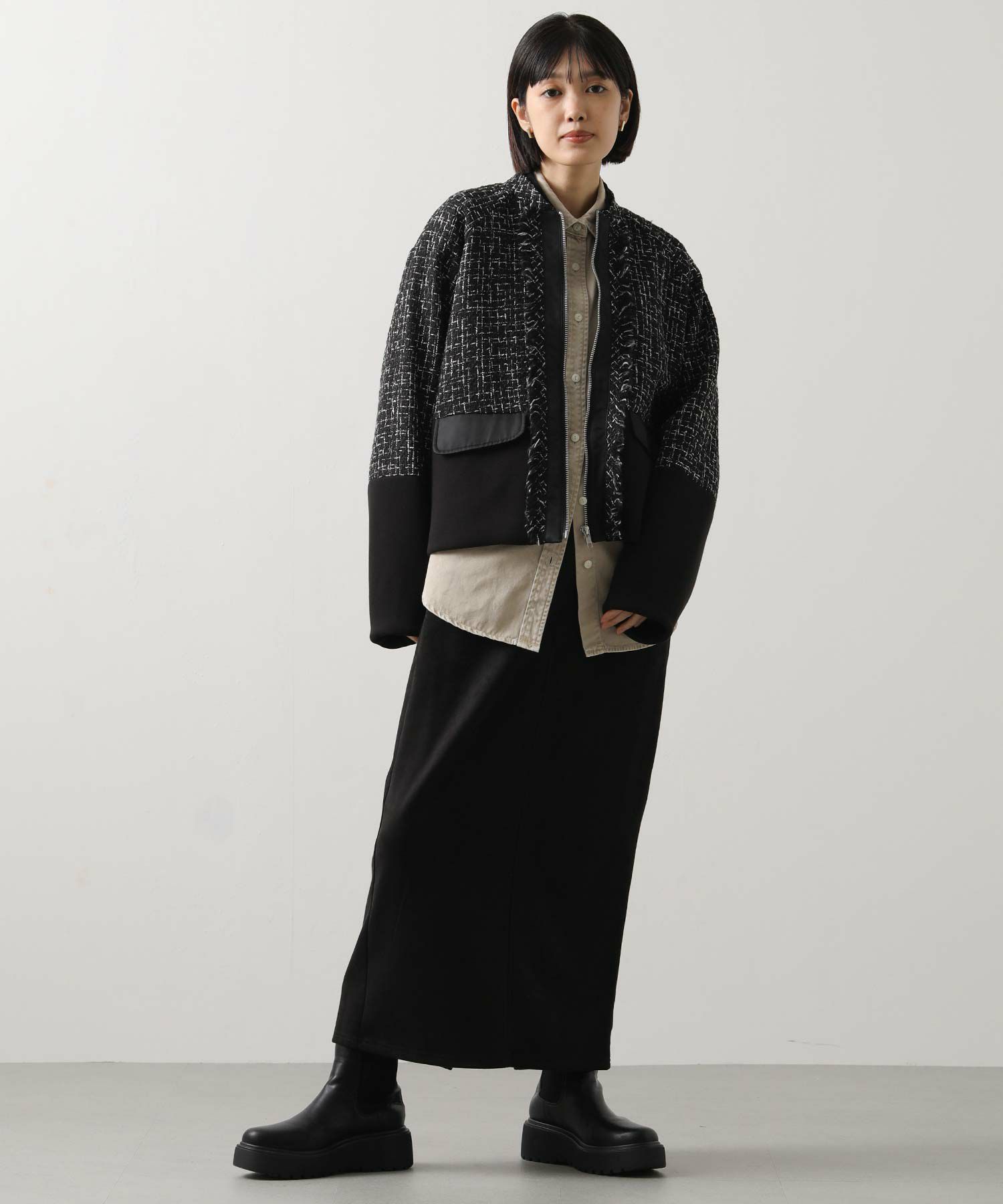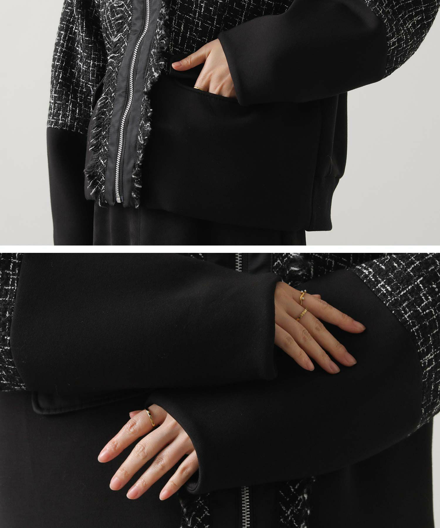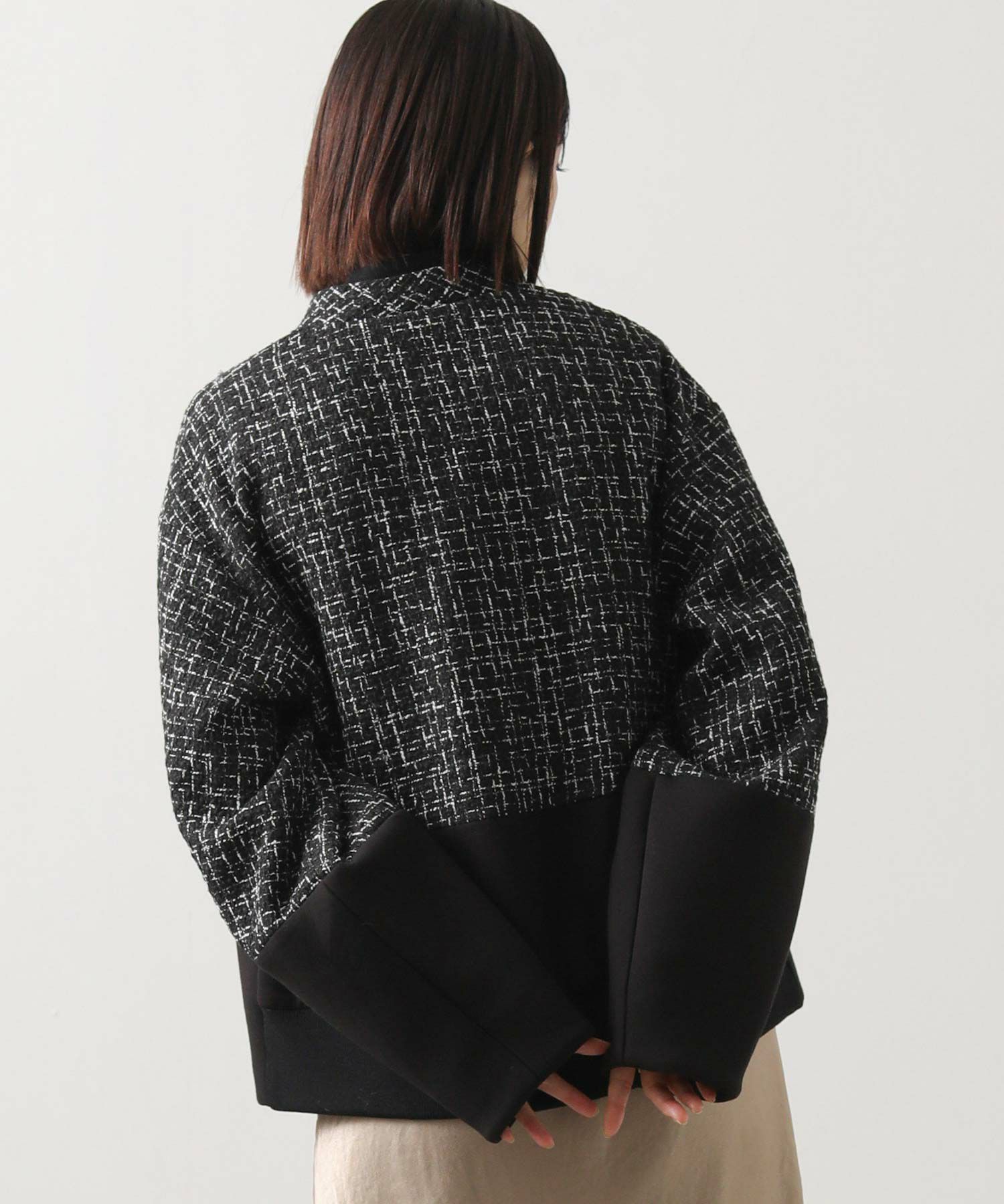 【MARECHALTERRE(マルシャルテル】から、ファンシーツイードとダンボールニットのコンビブルゾンをセレクト。