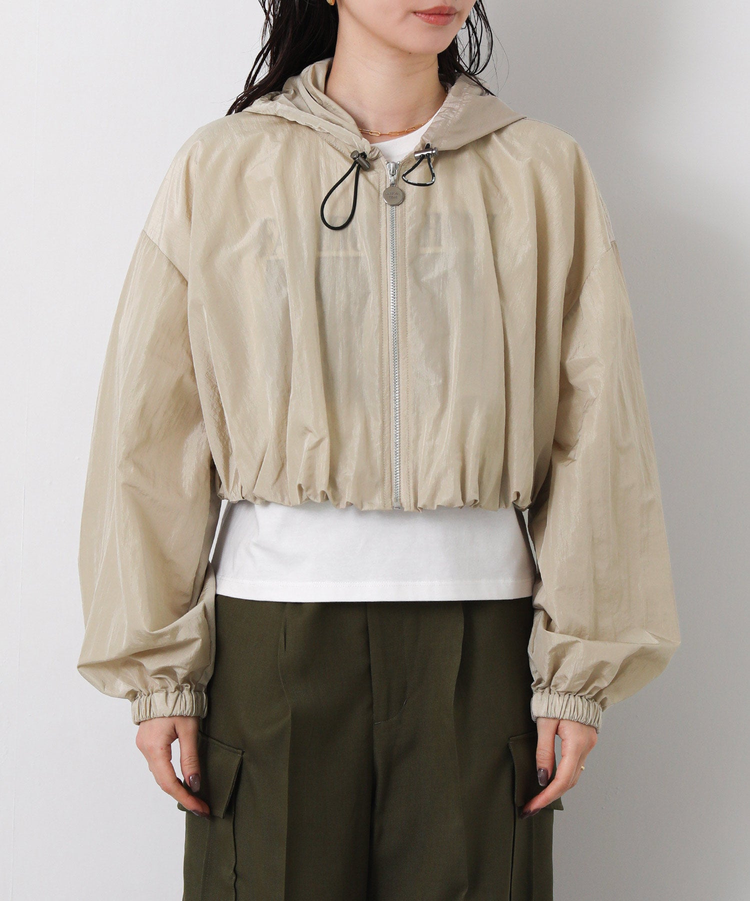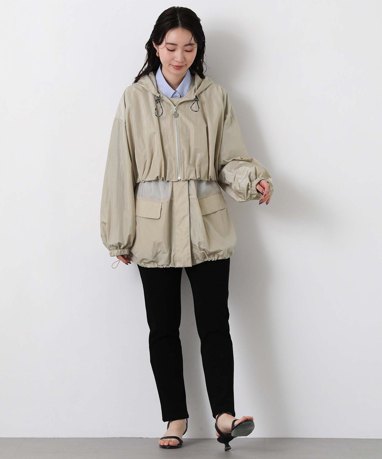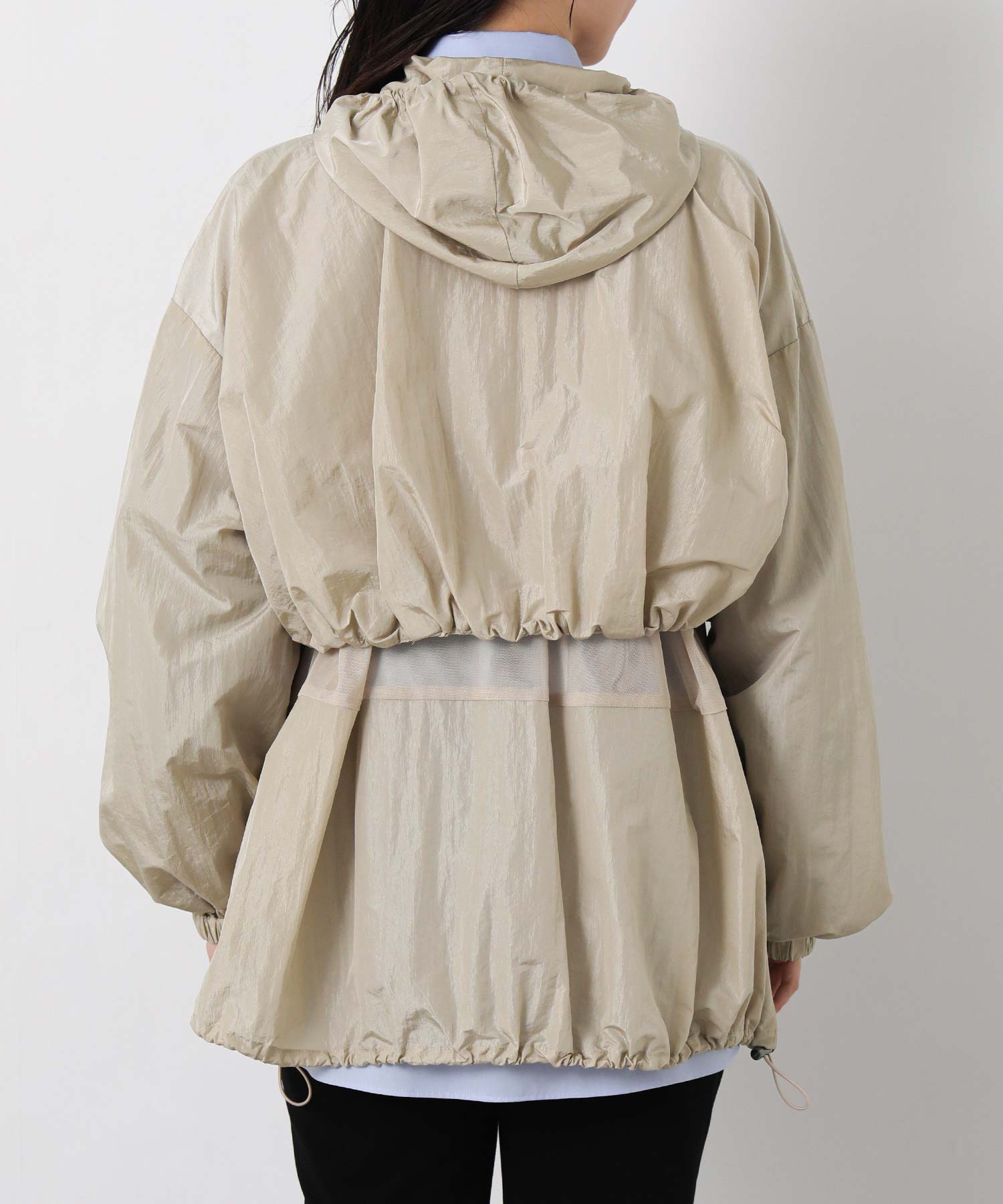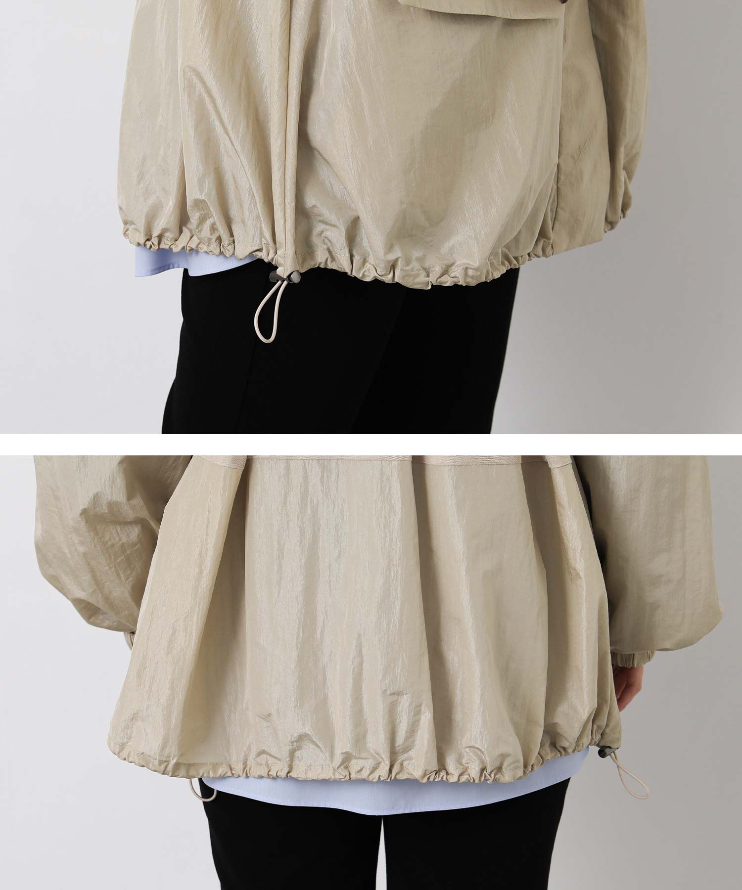 軽量ナイロンを使用したフーディと、レイヤード風に着こなせるナイロンベストのセットブルゾン。