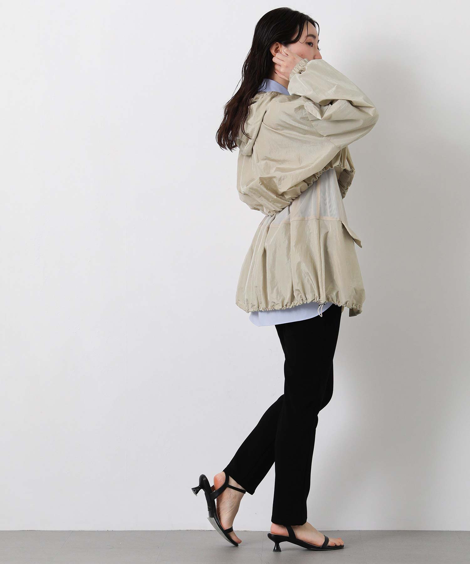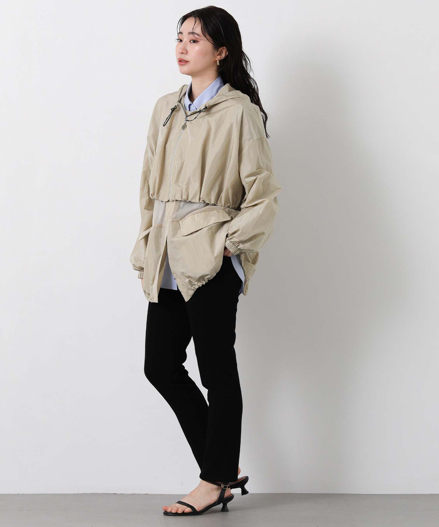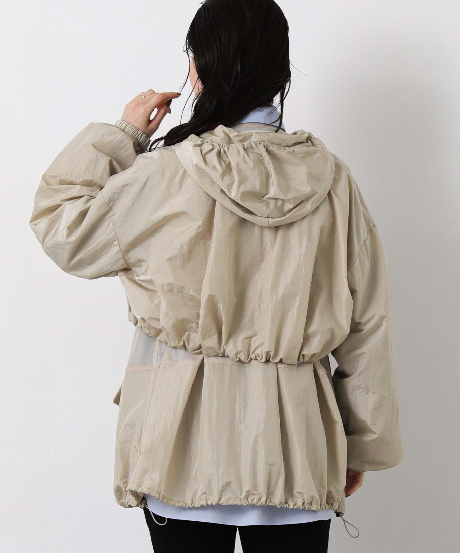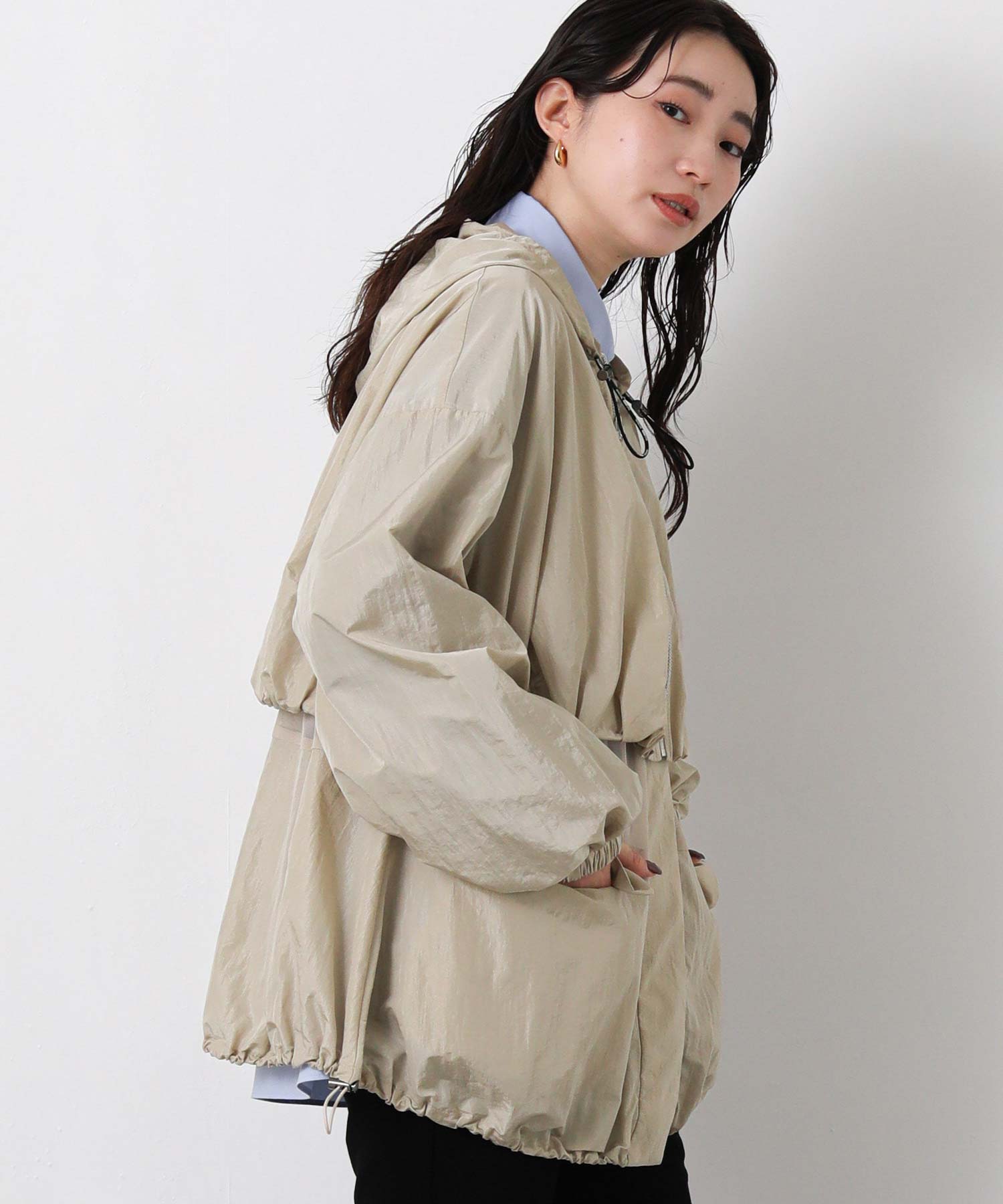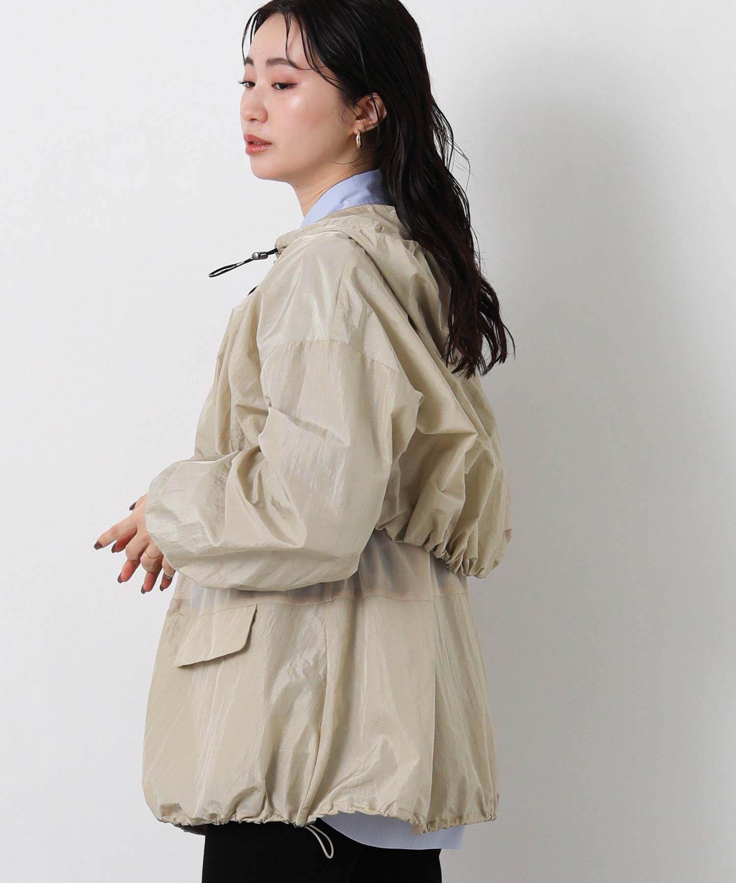 軽量なワッシャー加工入りでシワになりにくく、バックインして持ち運びにも便利なアイテムは、春・秋のライトアウターとして最適です。