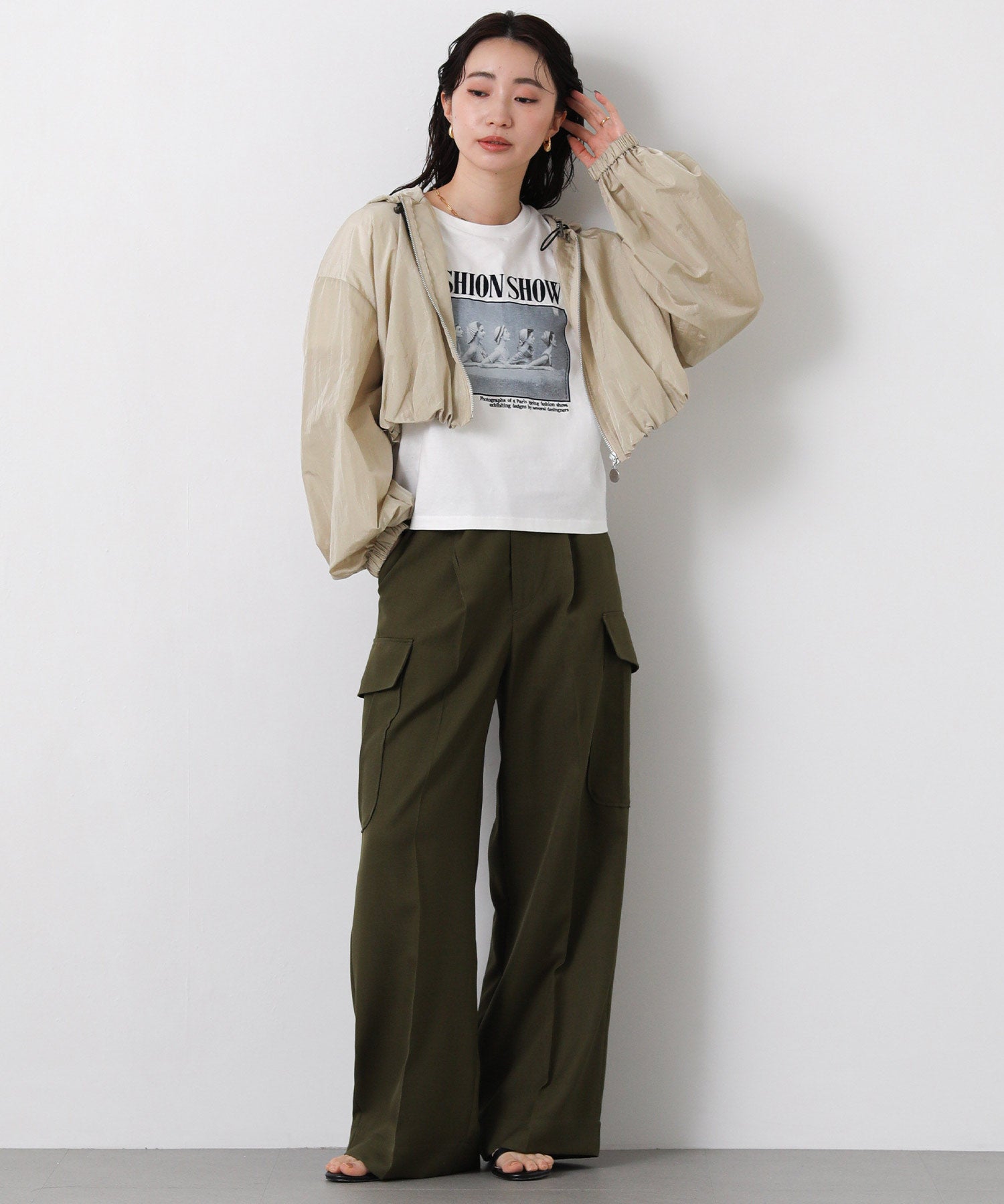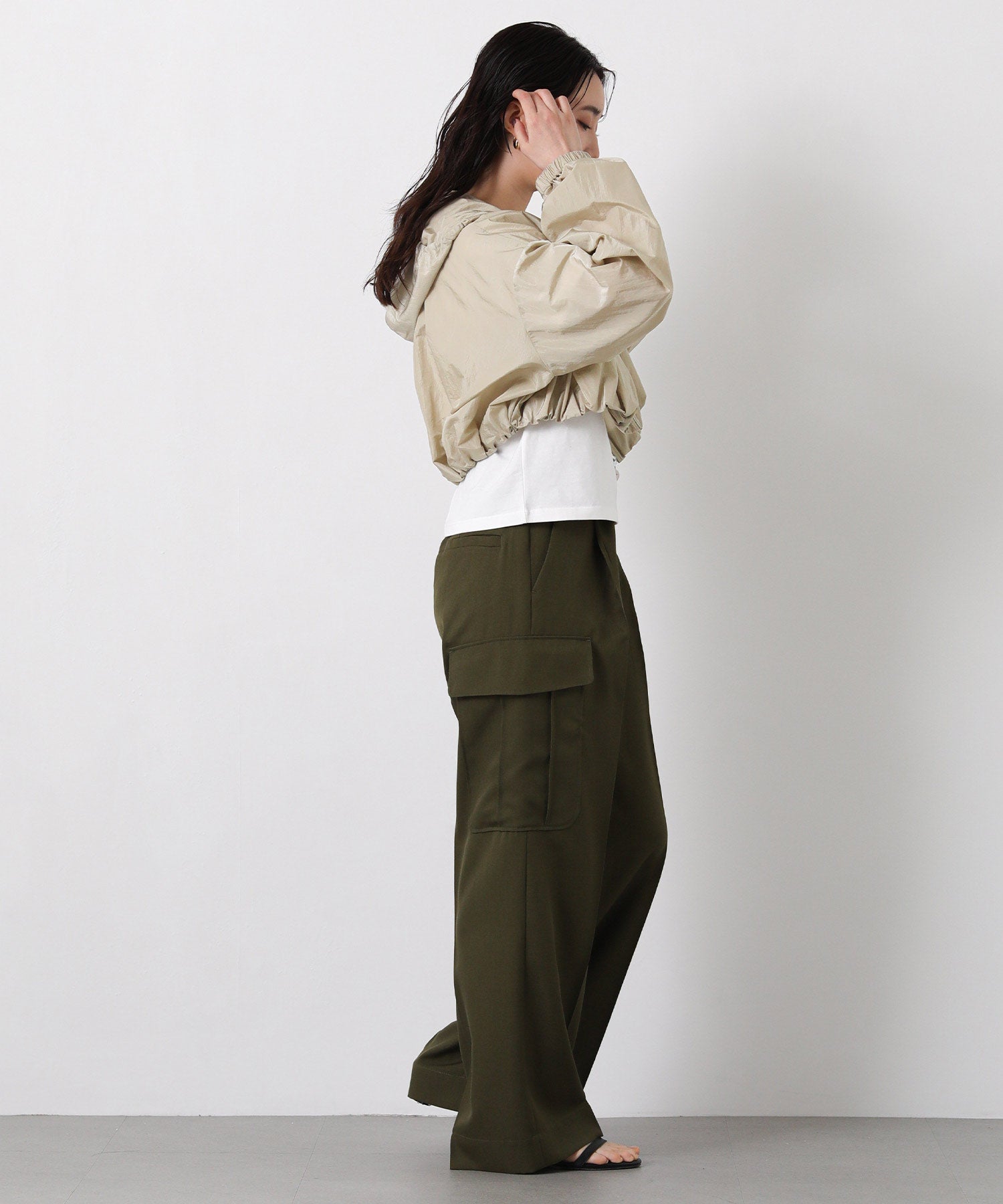 ※着用画像は撮影状況、光の当たり具合で色みが違って見える場合がございます。実際の色みについては、画像一覧の最後に掲載している詳細画像をご参照ください。