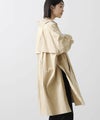 トレンチコートから着想を得たこなれ感のあるコートで、閉じても開いてもサマになるスタンダードなステンカラーデザイン。ピーチ感のある表面と程よい厚み、ハリのある素材でシルエットを美しく保ちます。