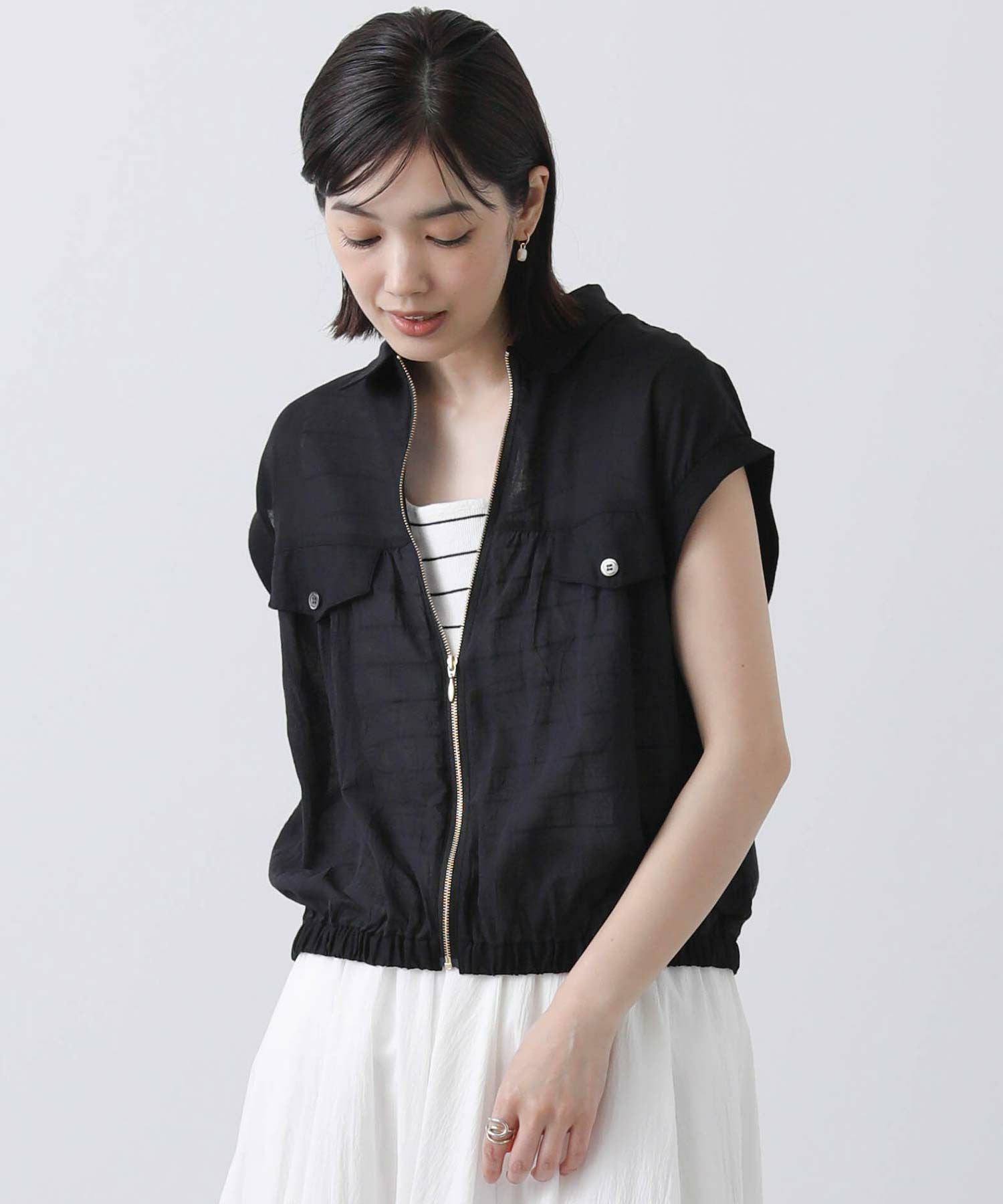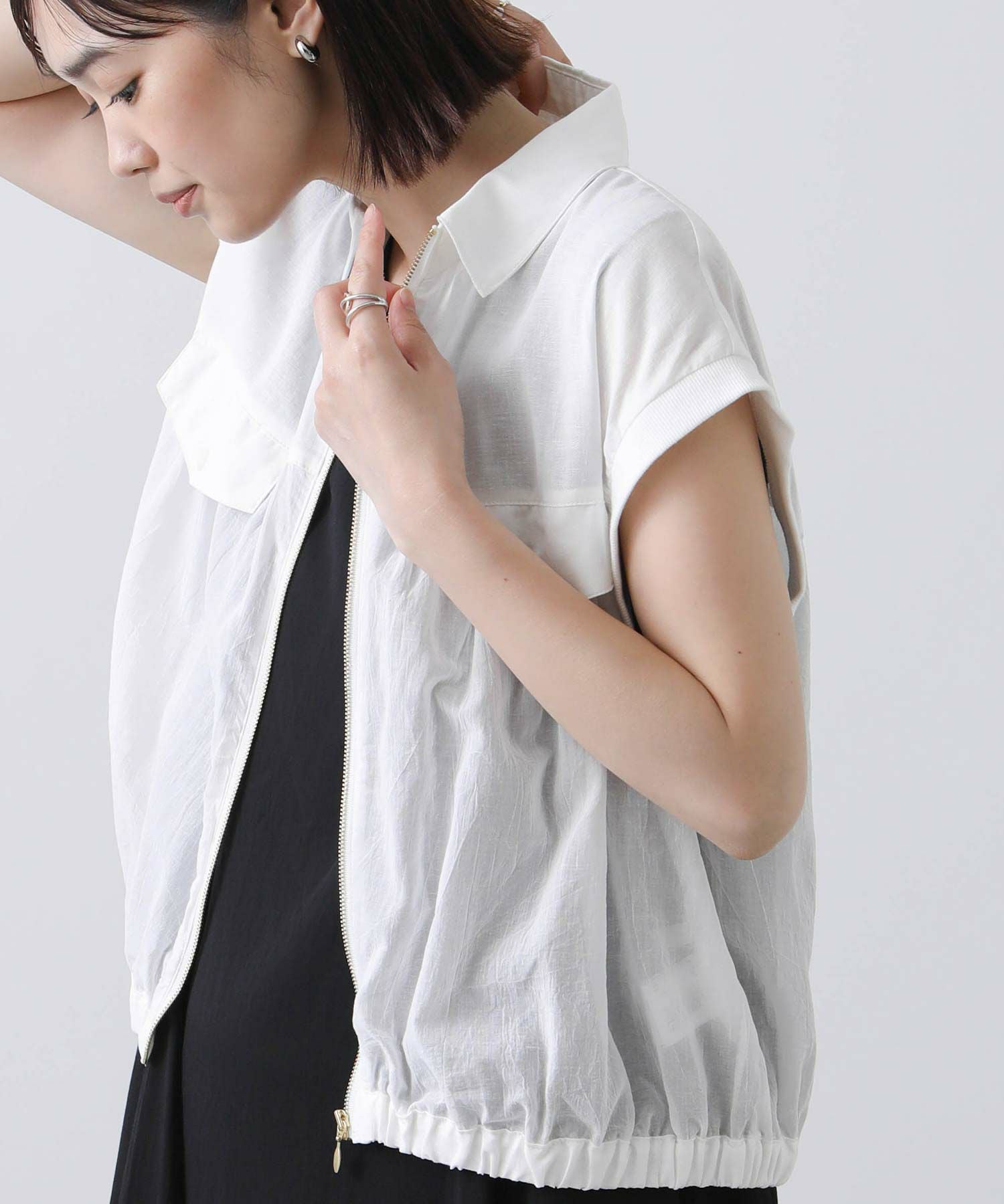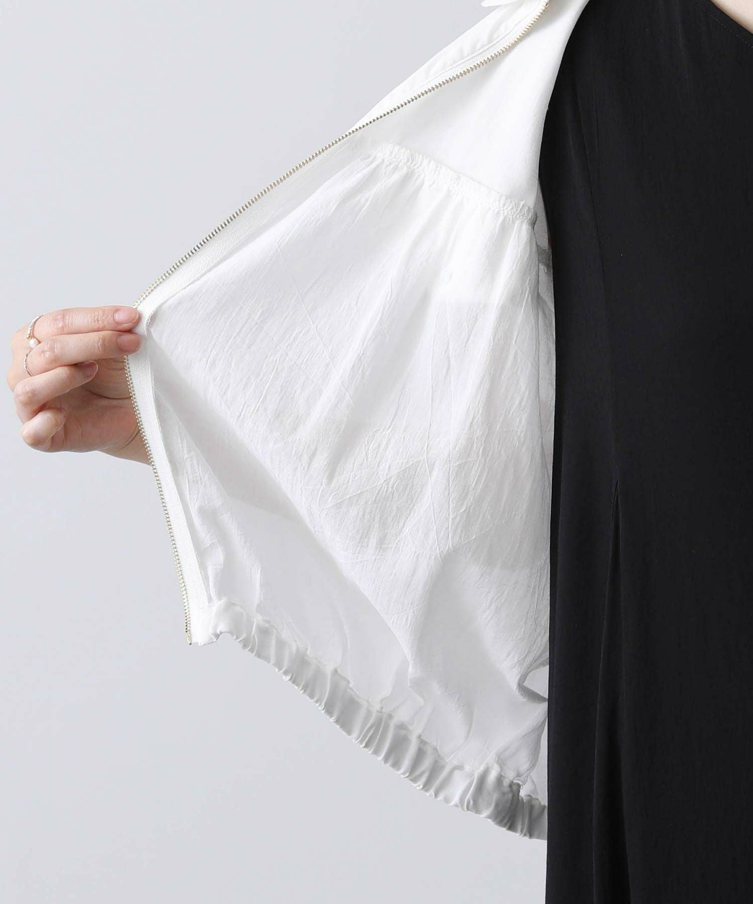 フロントのファスナーを開けて、ラフに着こなすのがおすすめ。