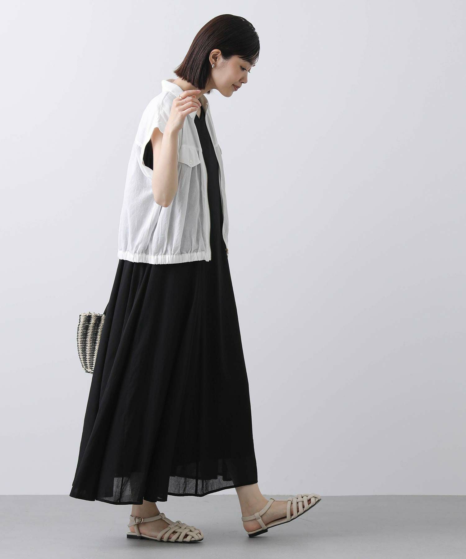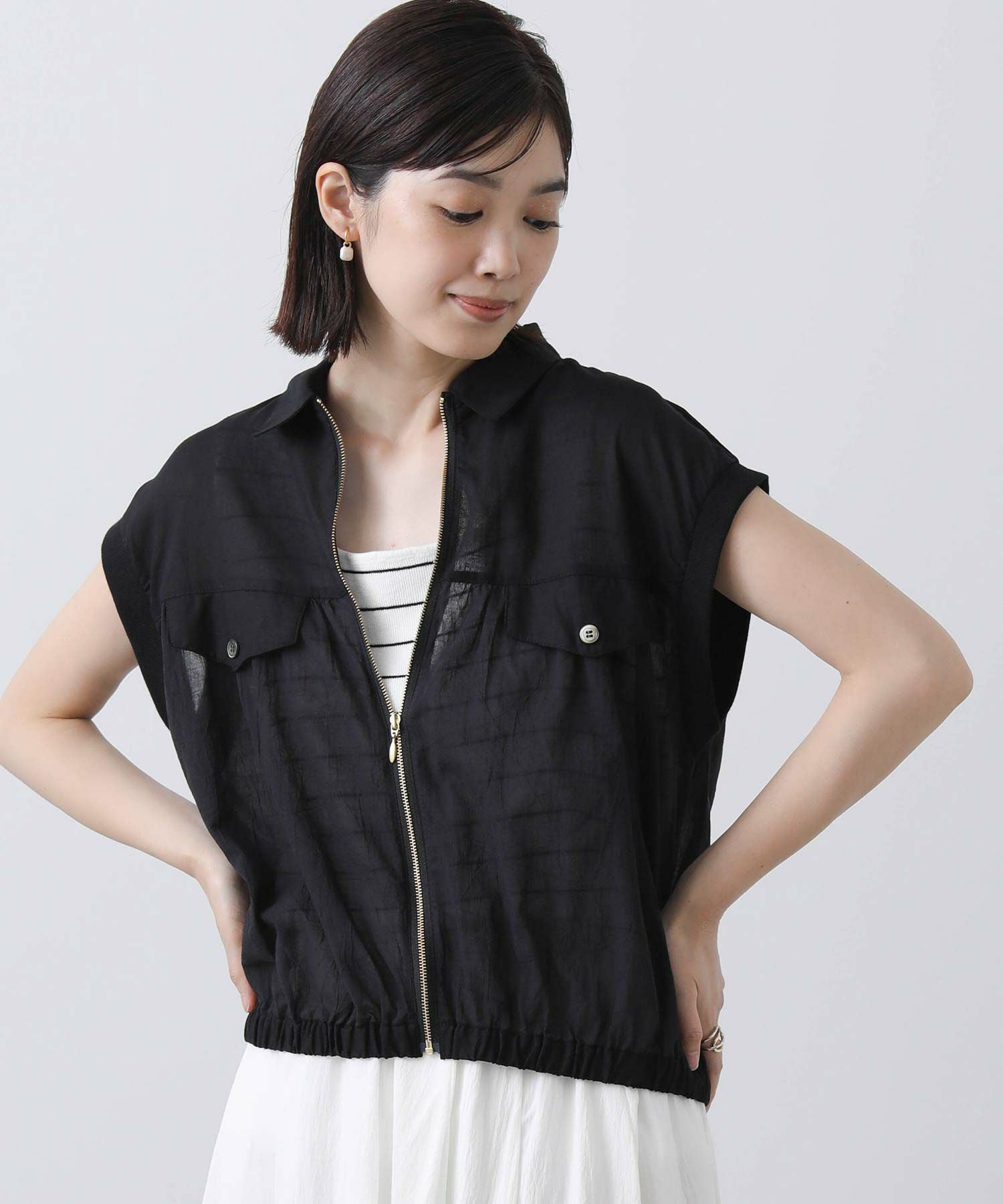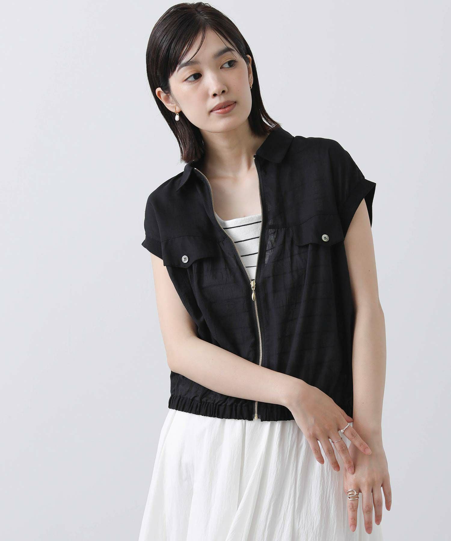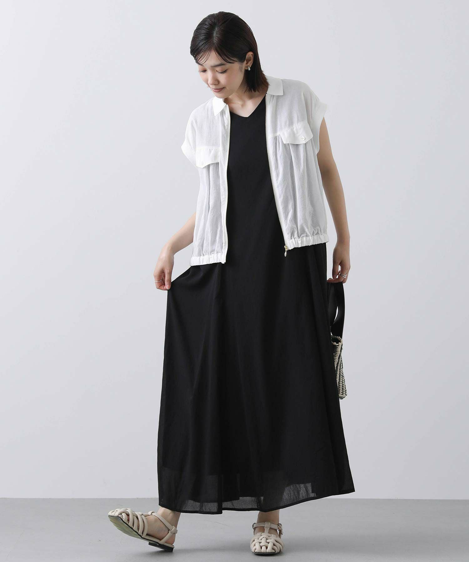フロントのファスナーを開けて、ラフに着こなすのがおすすめ。