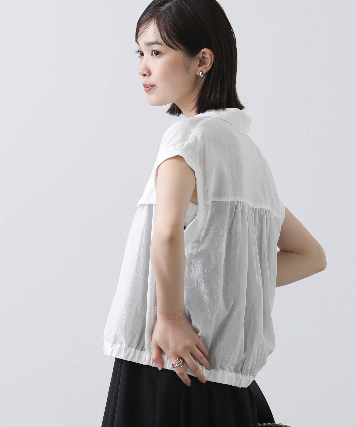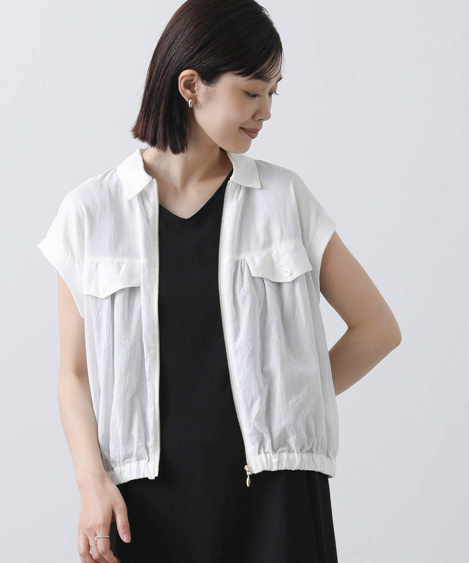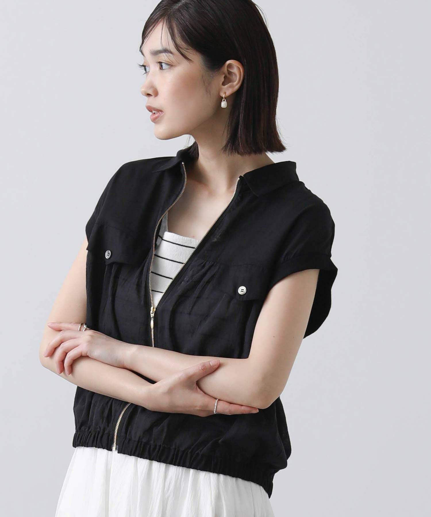 少し短めの着丈は、スカートでもパンツでも相性良く合わせていただけます。