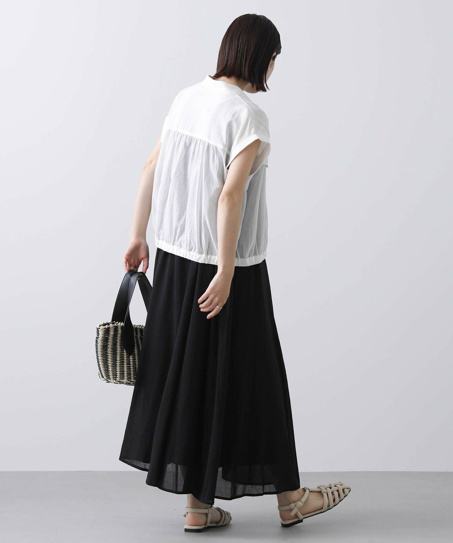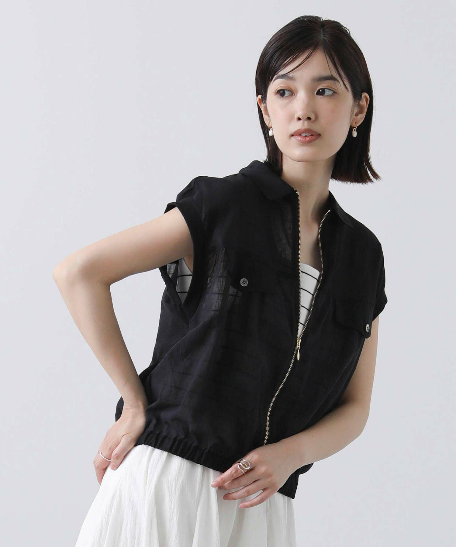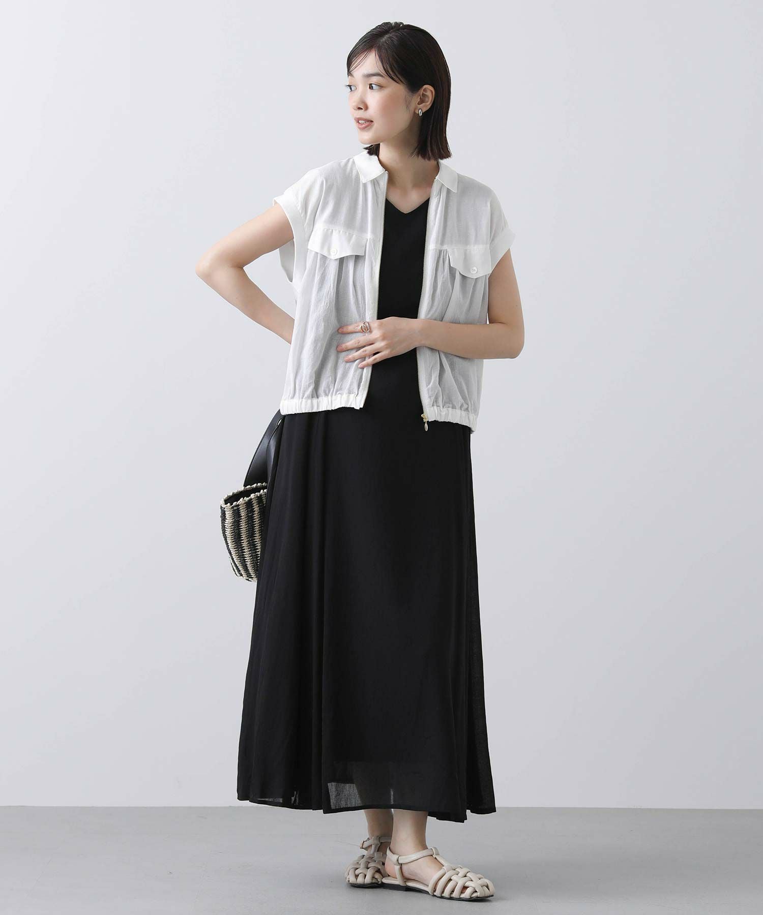 少し短めの着丈は、スカートでもパンツでも相性良く合わせていただけます。