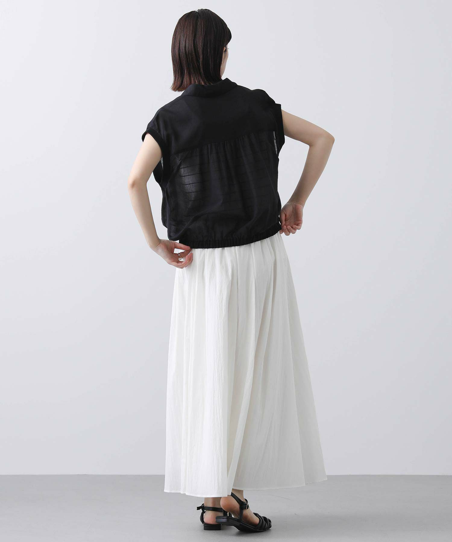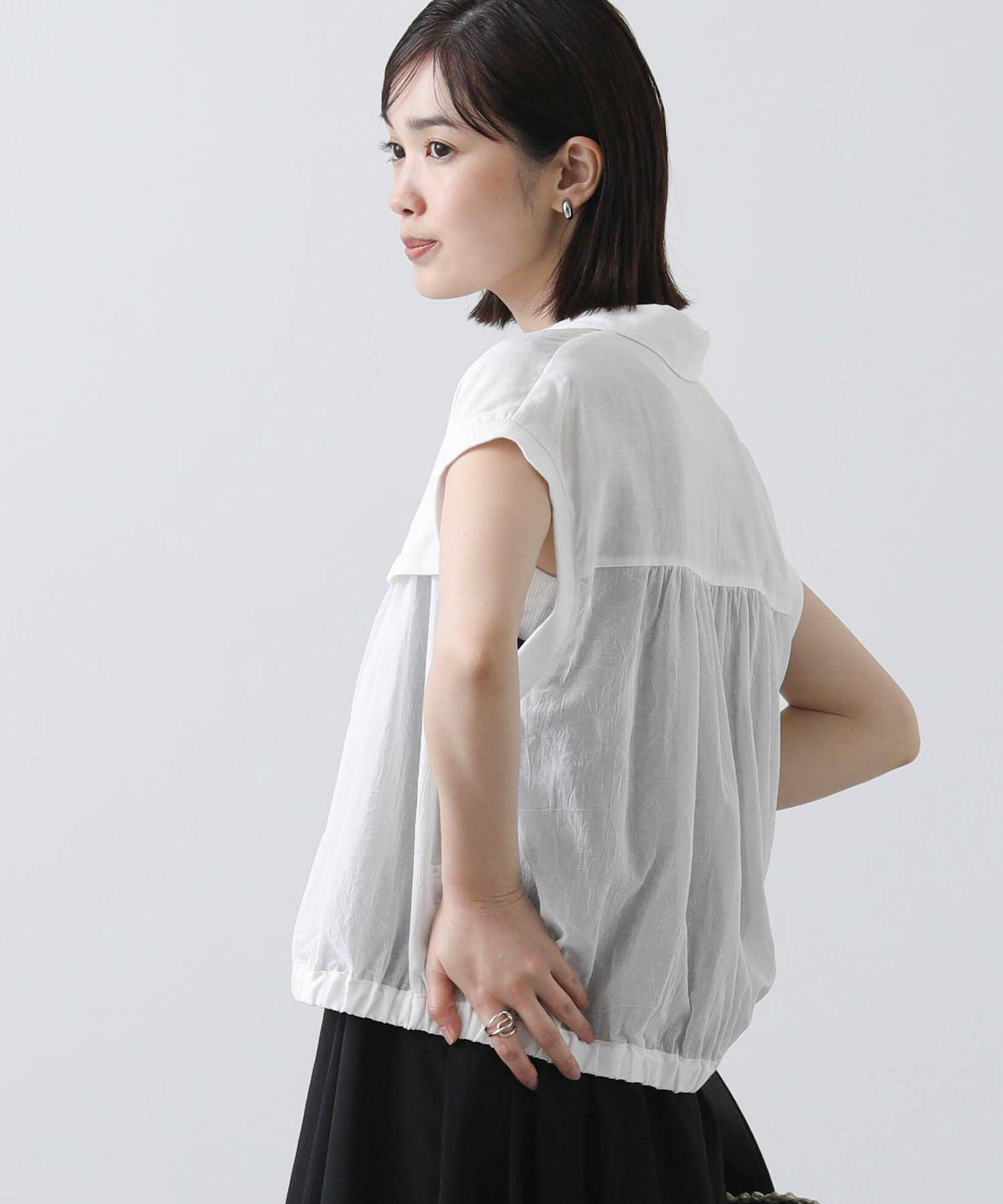 少し短めの着丈は、スカートでもパンツでも相性良く合わせていただけます。