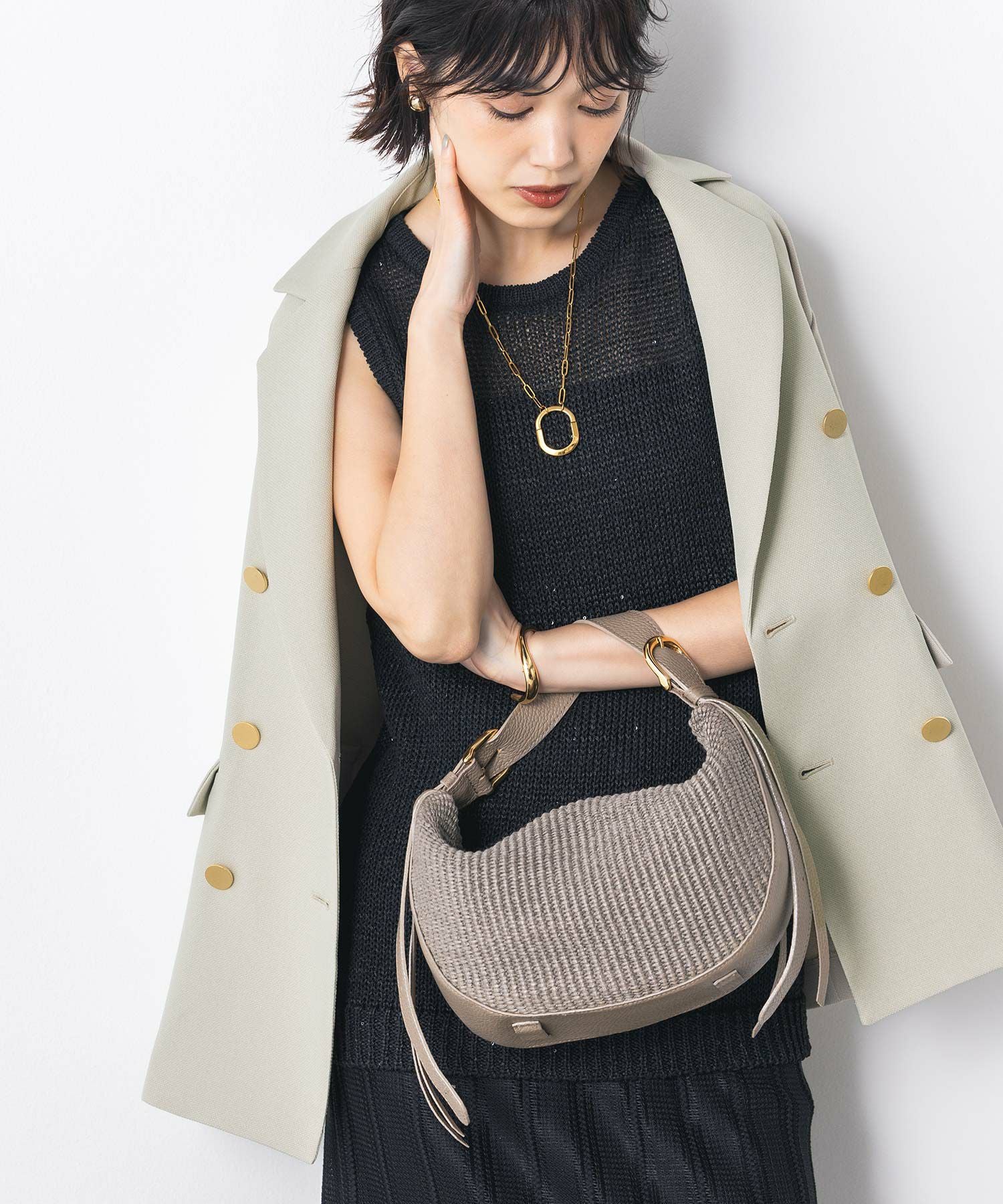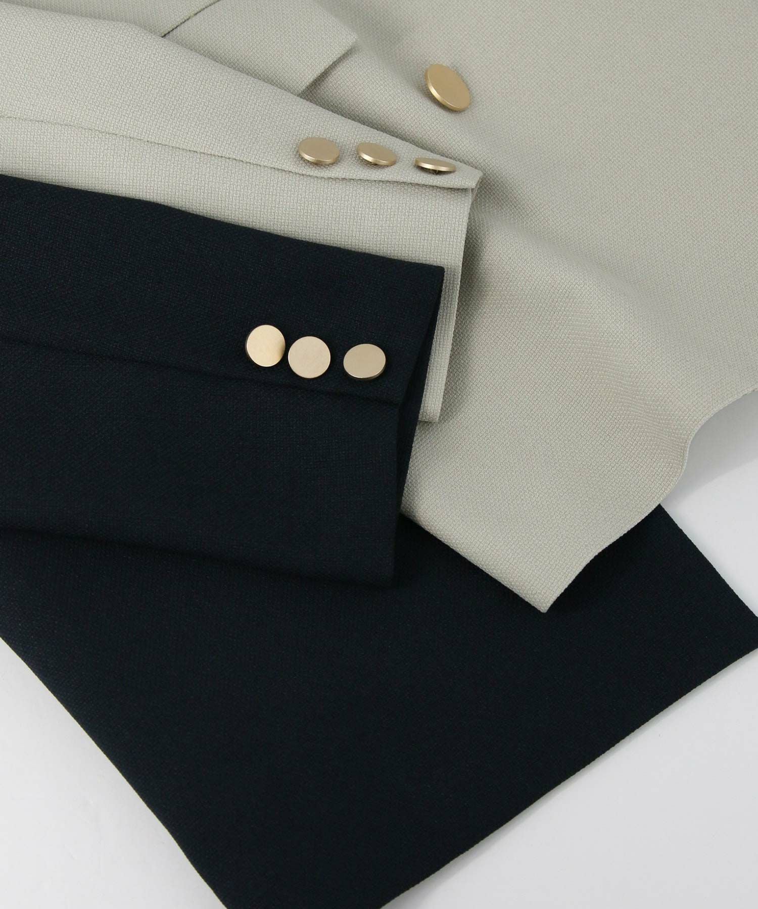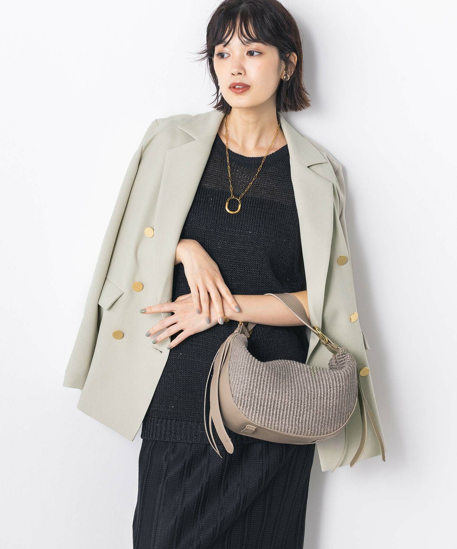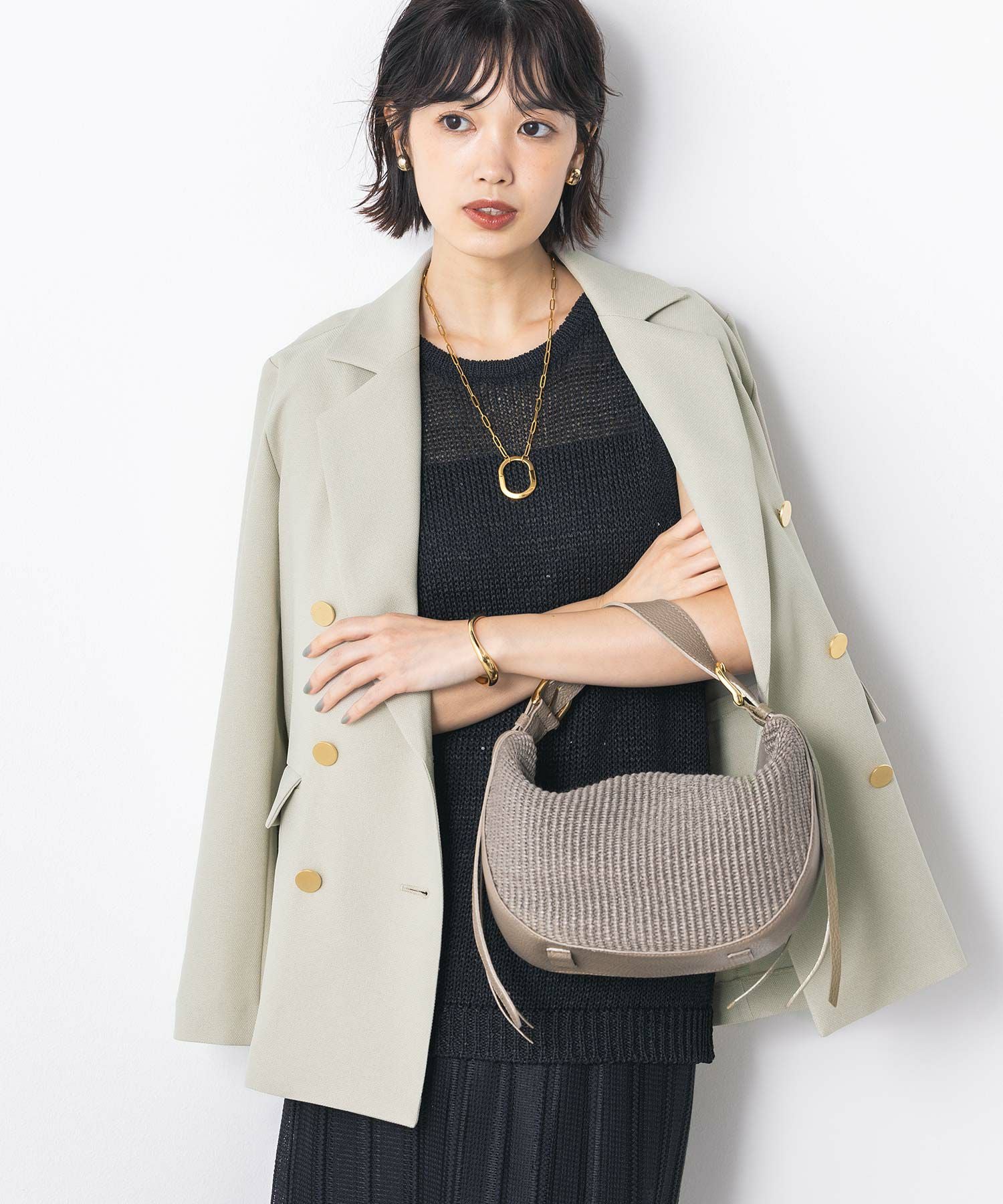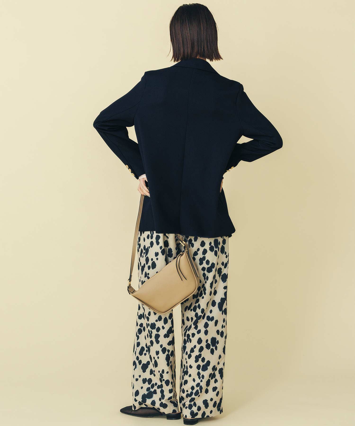 マルチに活躍するWフロントの金ボタンジャケット。ボクシーなシルエットでかっちりしすぎず気負わず羽織れます。