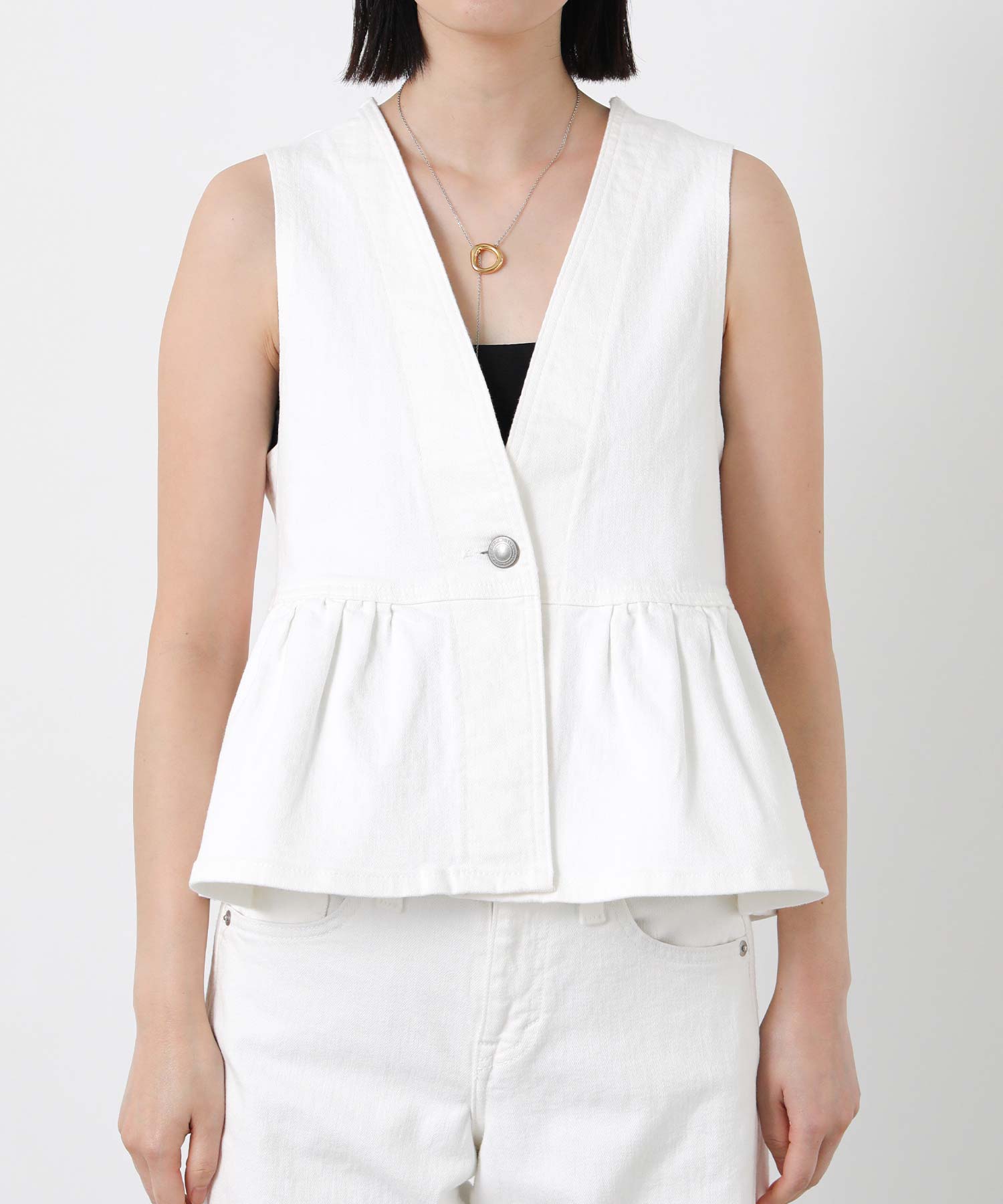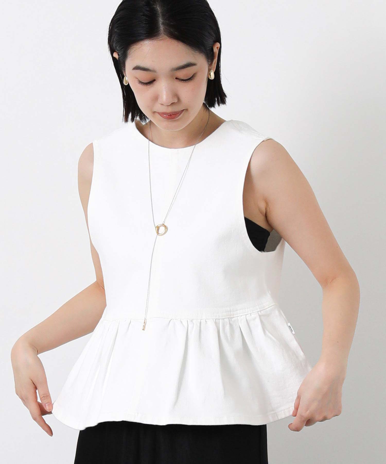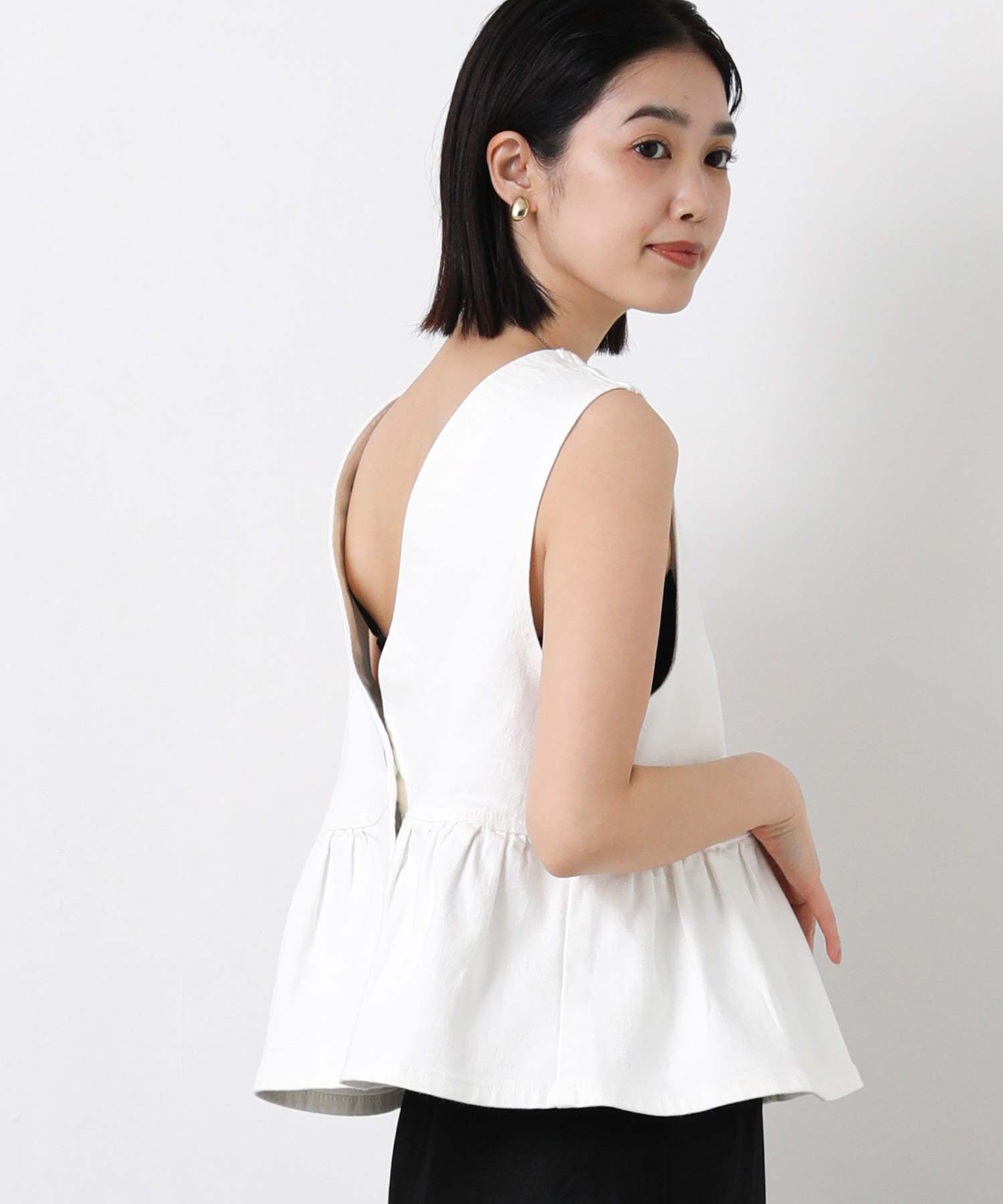 【SOMETHING(サムシング)】から、着るだけでスタイルアップが叶う、2WAYペプラムビスチェをセレクト。