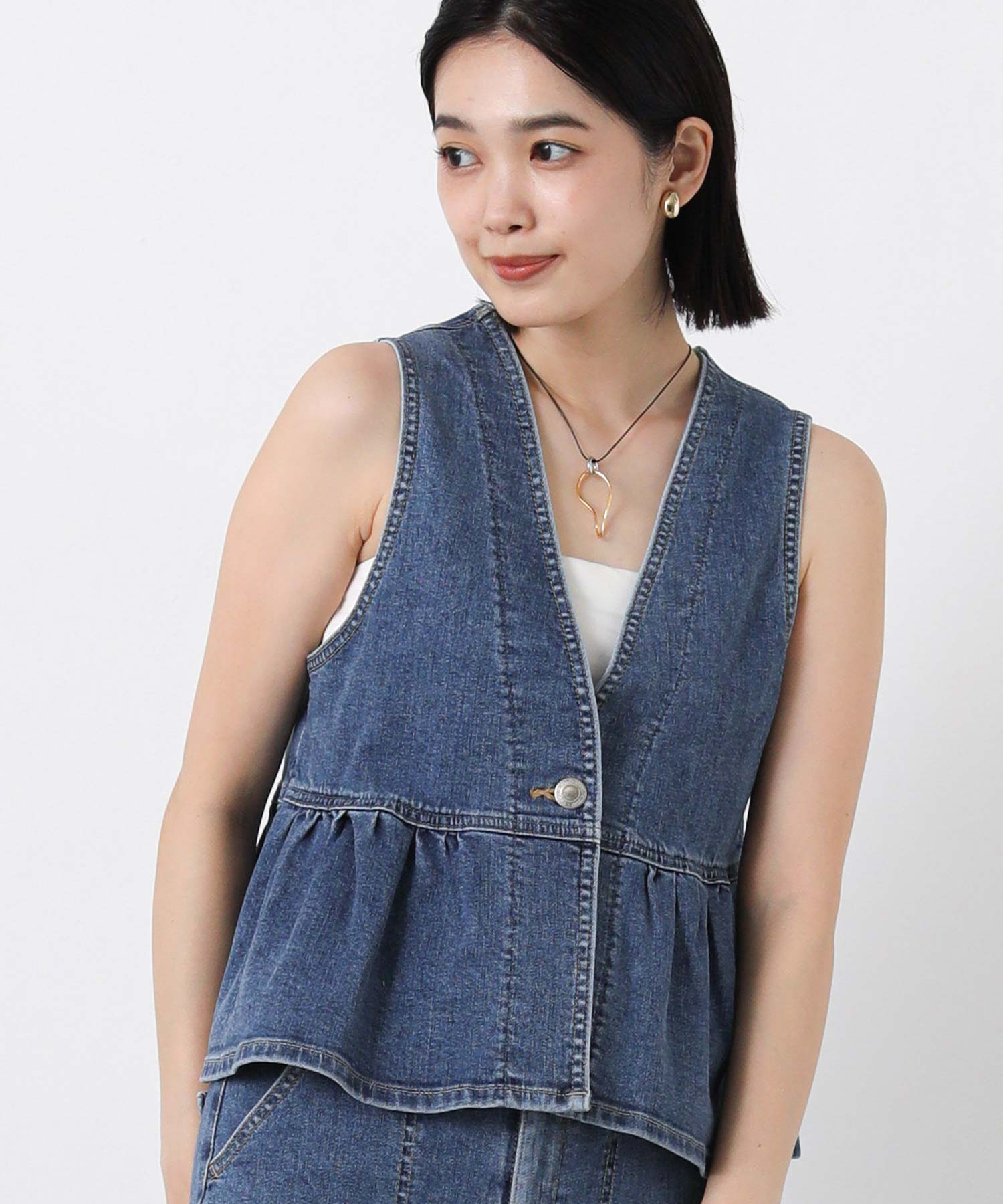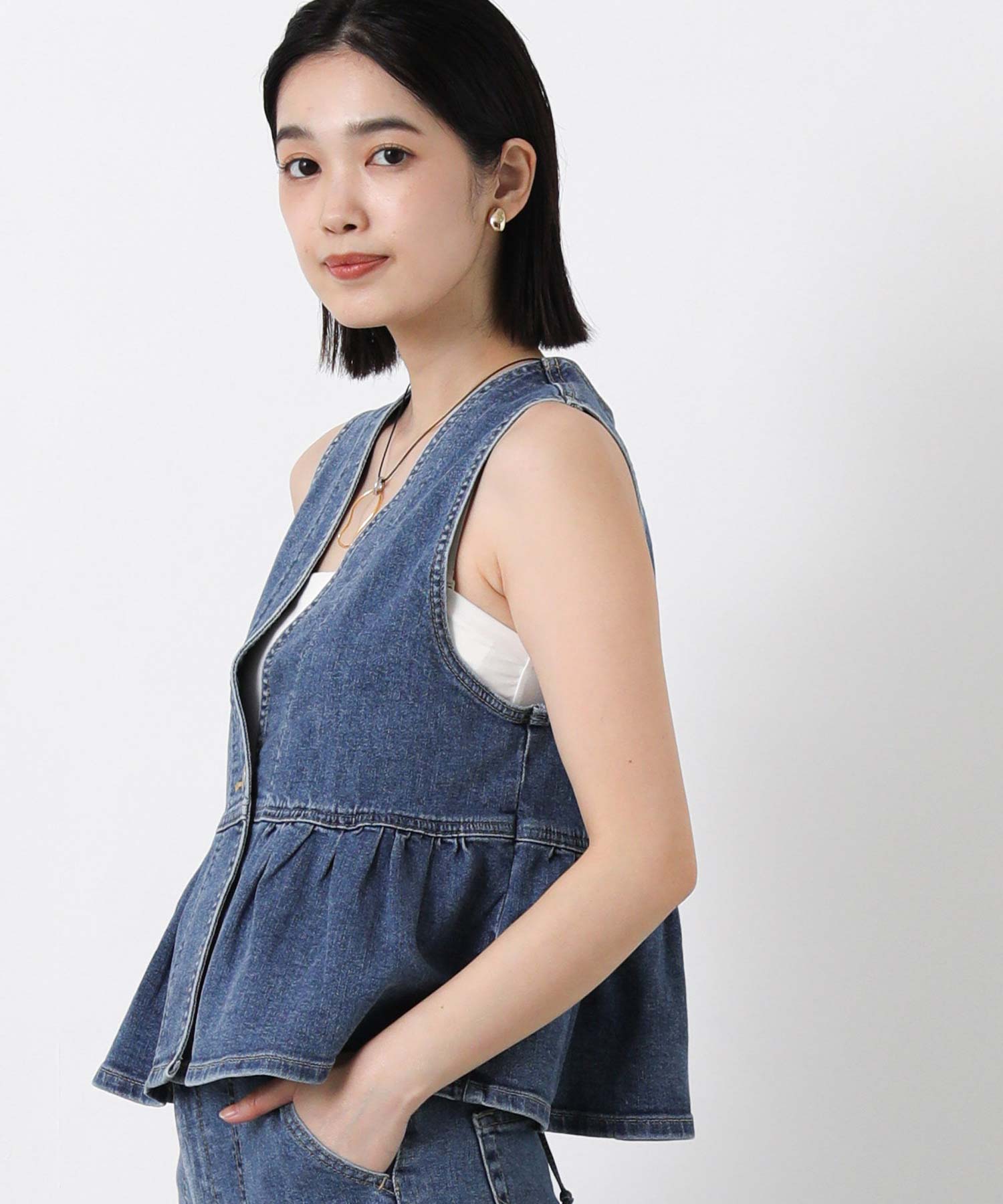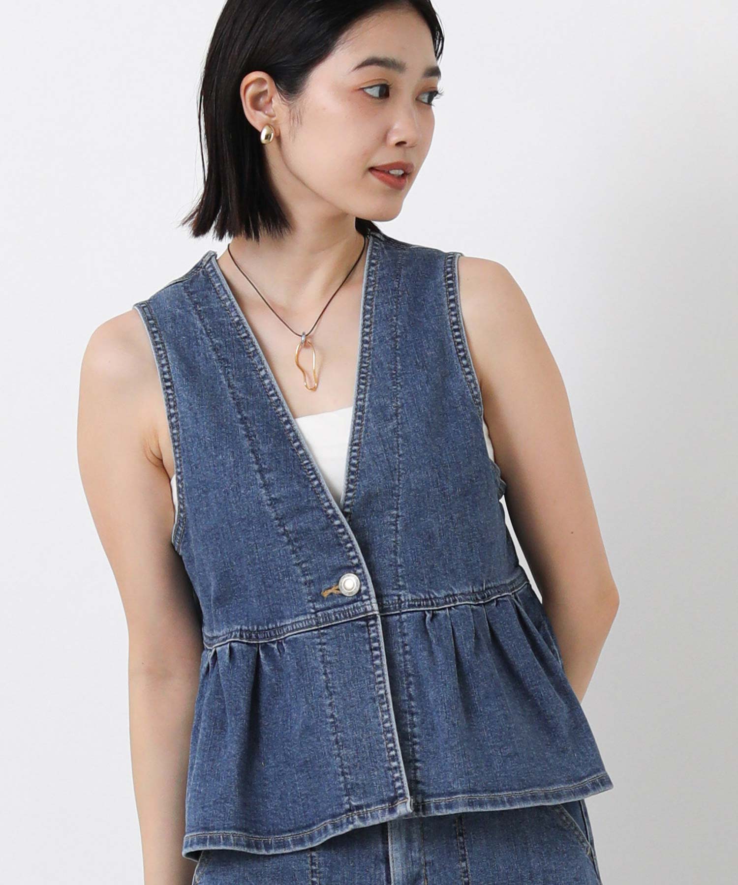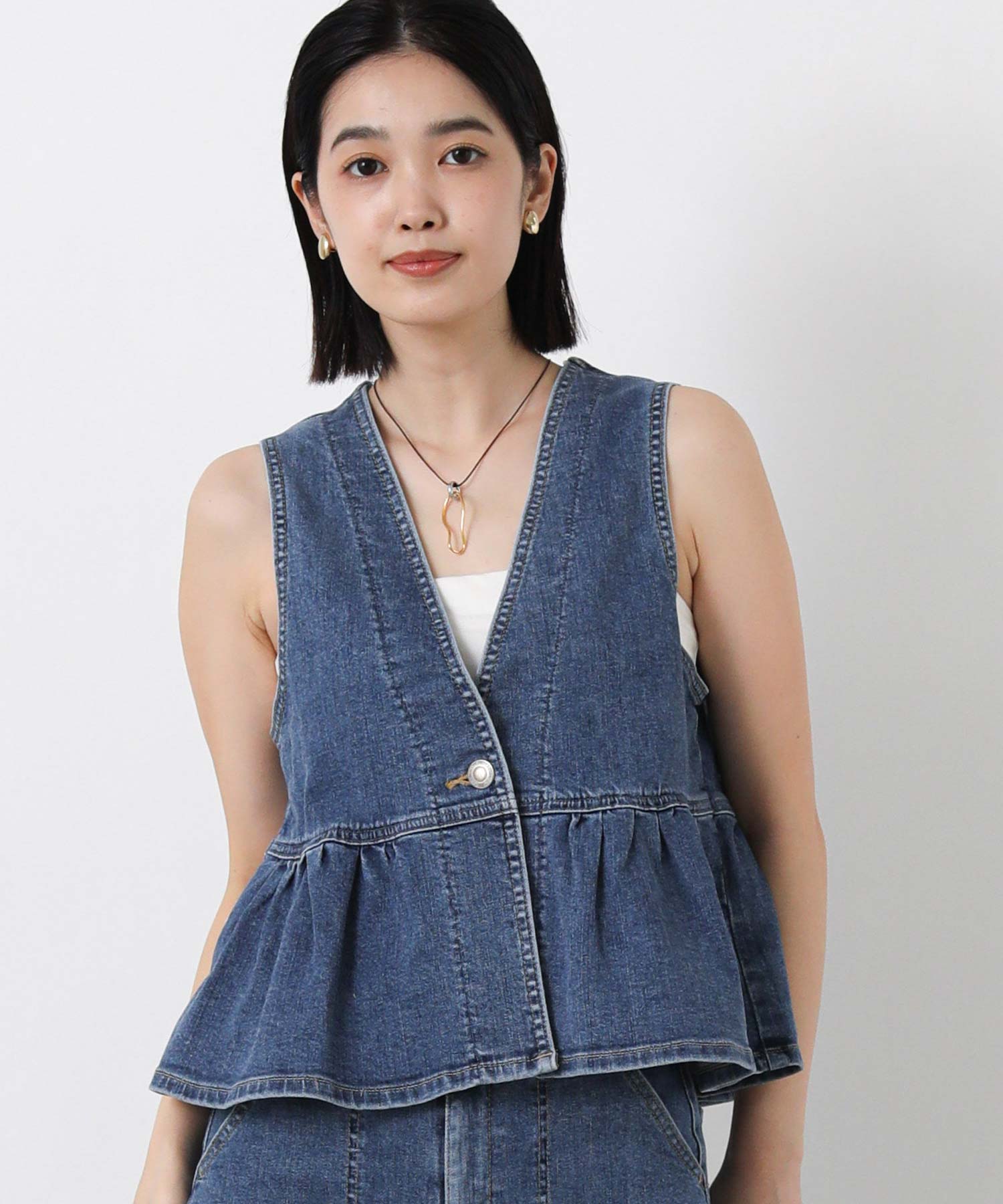 【SOMETHING(サムシング)】から、着るだけでスタイルアップが叶う、2WAYペプラムビスチェをセレクト。