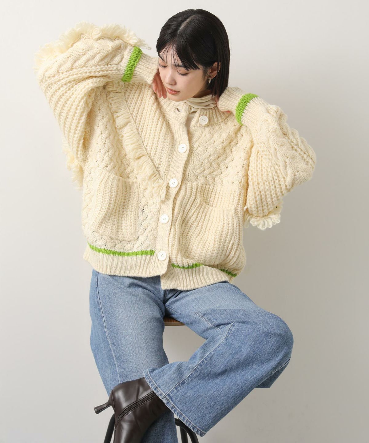 他の画像を見る 2点10%3点20%クーポン対象 Gready Brilliant変形ケーブルクルーネックカーディガン 定価 ¥ 24,200 のところ ¥ 12,100 税込 在庫切れ カートに入れる お気に入りに登録する MORE