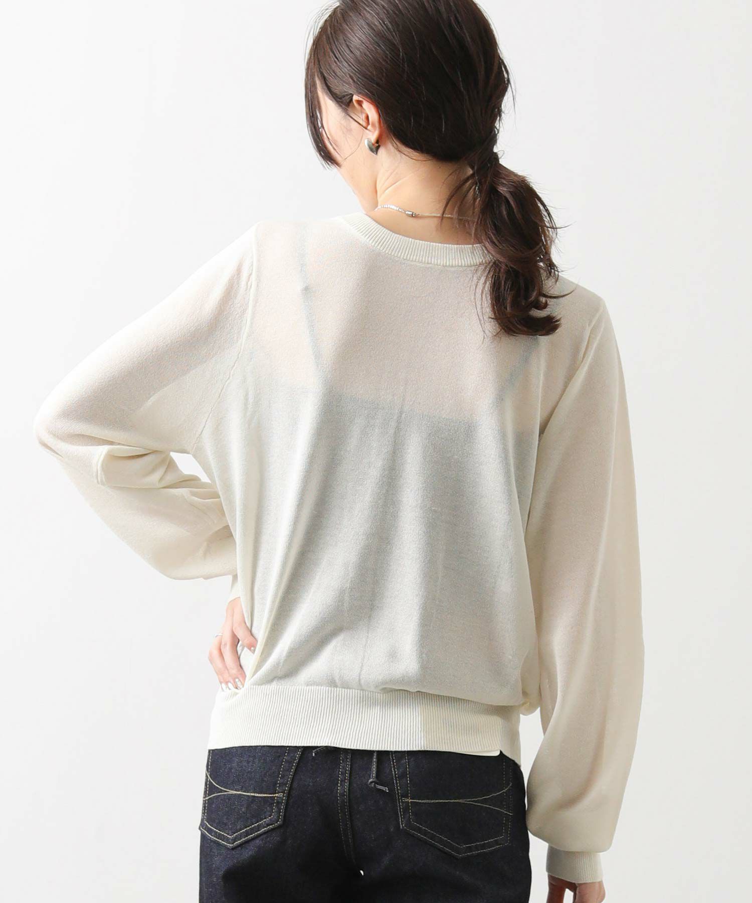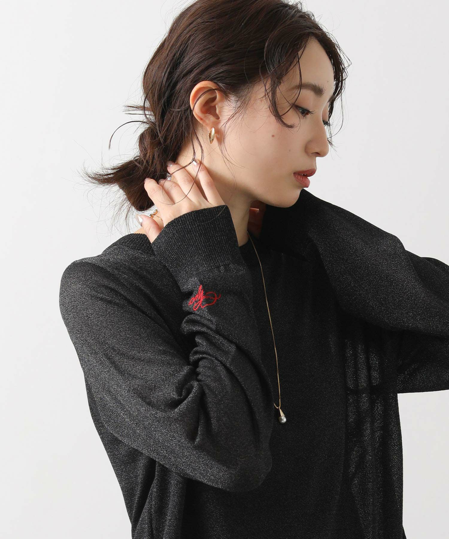 袖口のさりげないロゴ刺繍がポイントのコンパクトシアーニット。