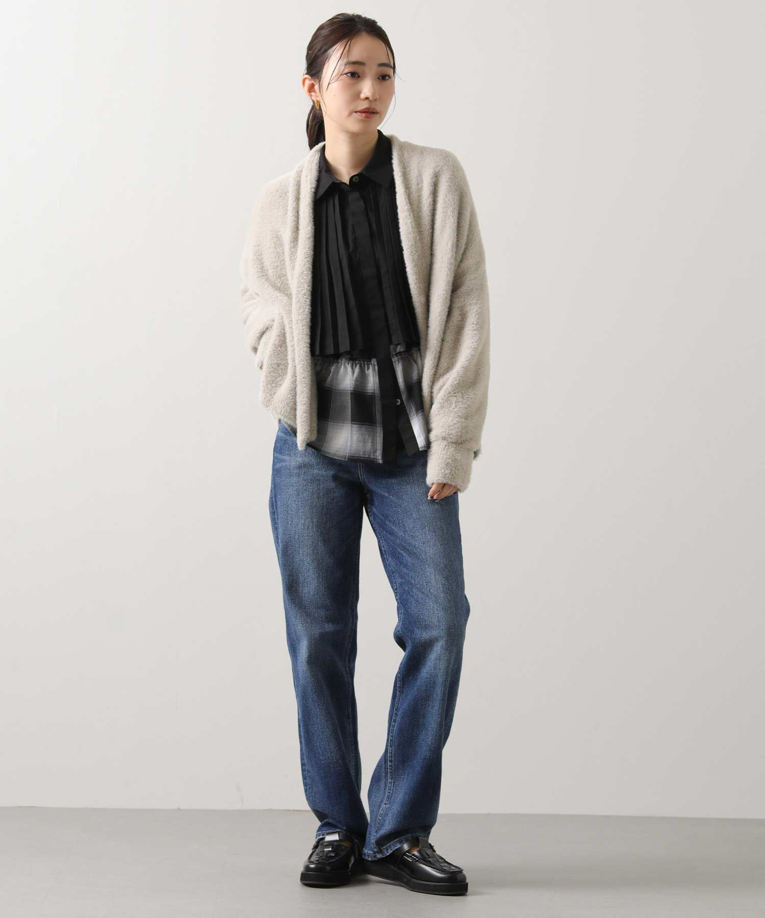 ※着用画像は撮影状況、光の当たり具合で色みが違って見える場合がございます。実際の色みについては、画像一覧の最後に掲載している詳細画像をご参照ください。