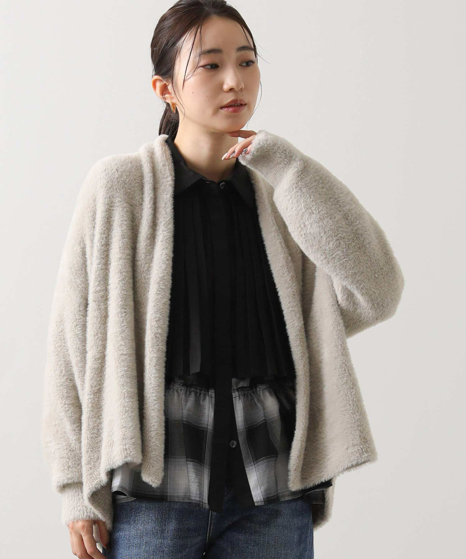 さらっと着るだけでこなれるボタンレスデザインは、1枚で存在感がありおしゃれ度アップ!