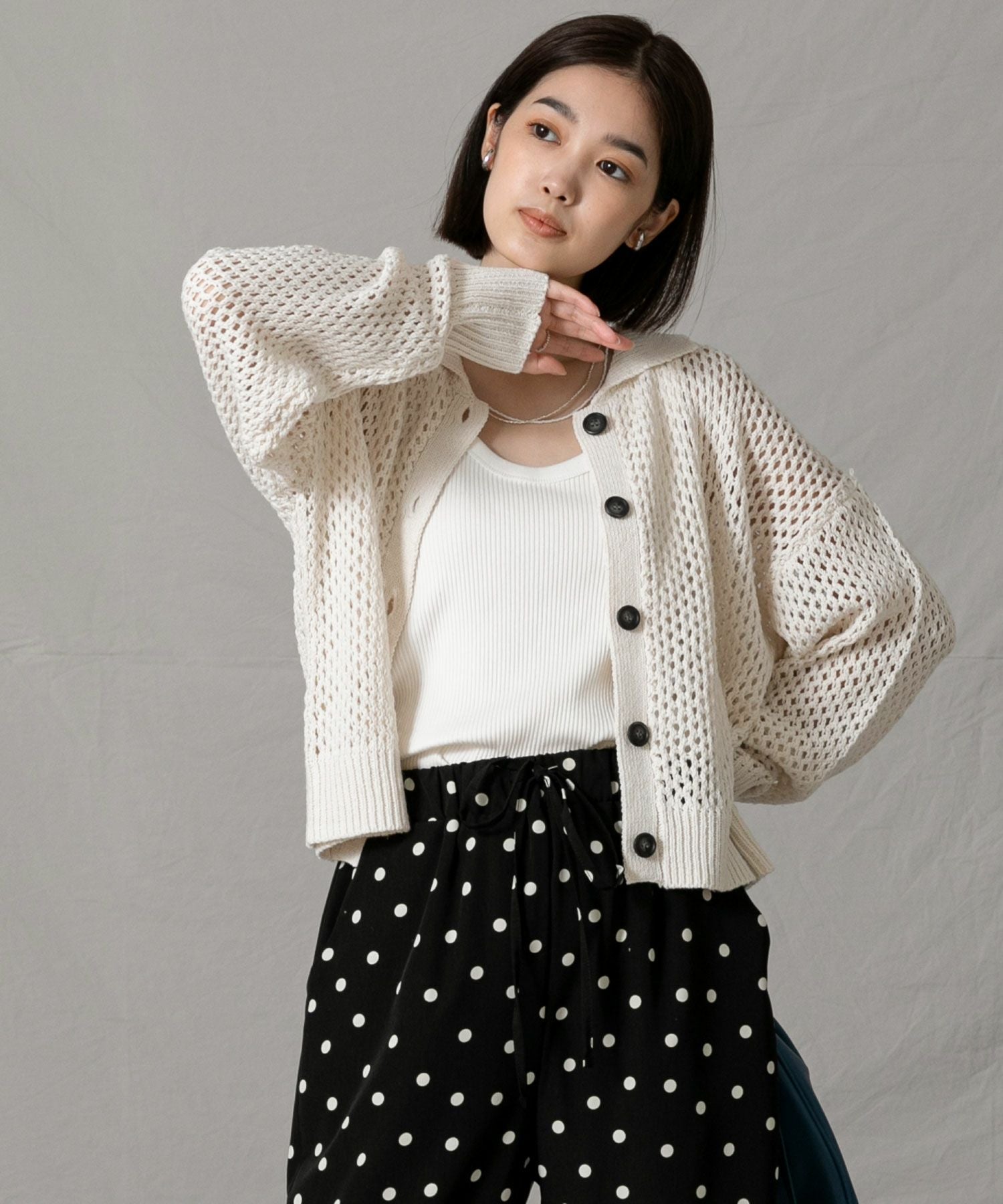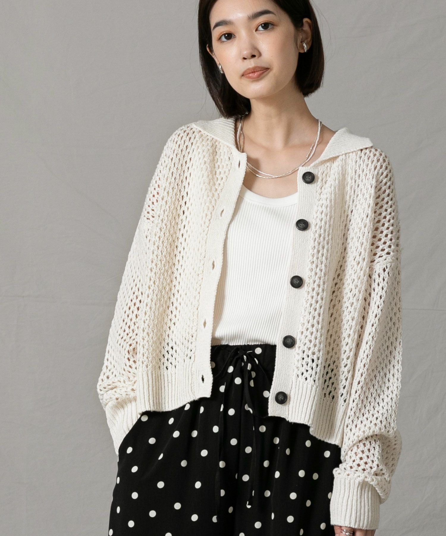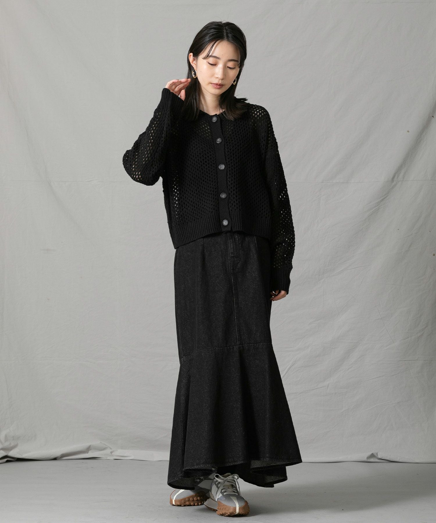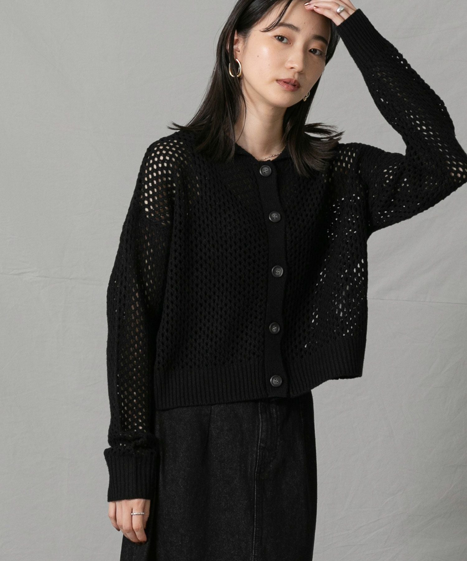 デニムでカジュアルミックスに、タイトスカートでレディライクにも◎メッシュ素材なのでインナーを楽しめるのも魅力のひとつです。