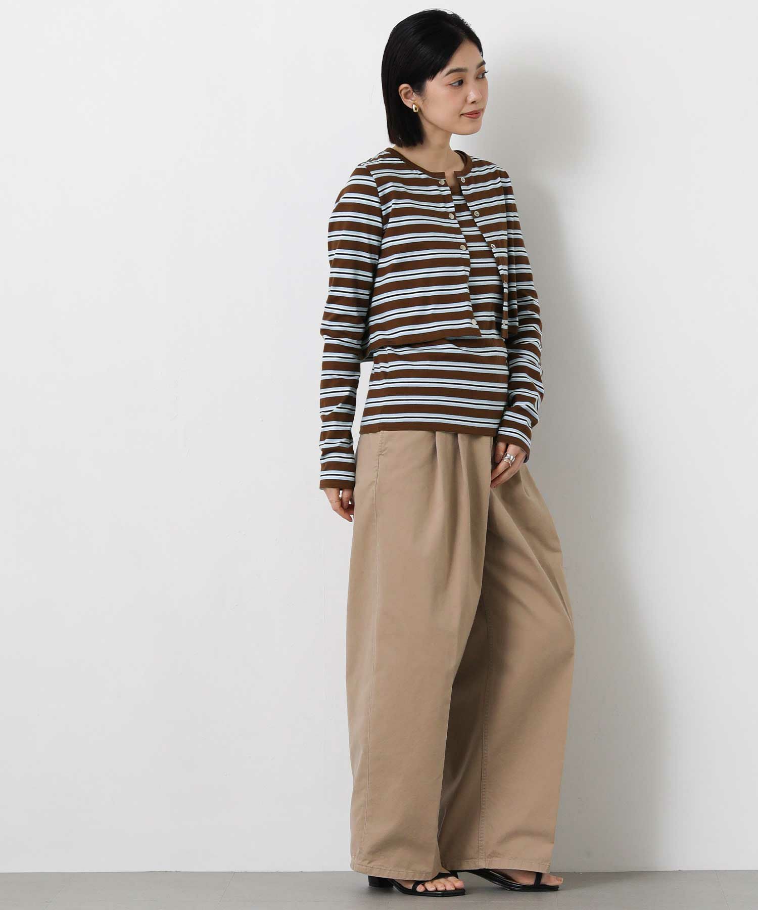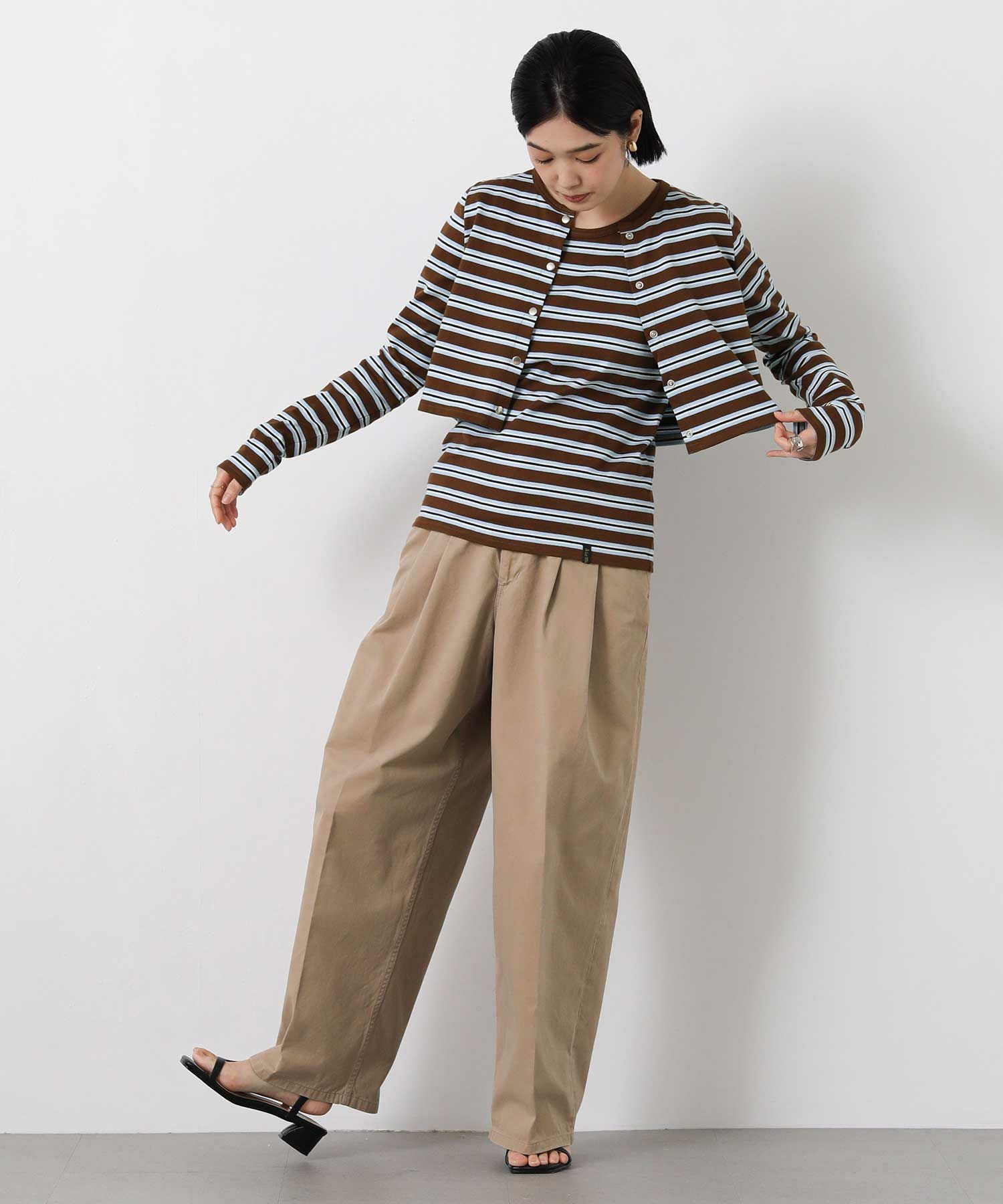 Leminor(ルミノア)から、コンパクトな丈感が今のバランスにちょうどいい、ボーダー柄のショートカーディガンをセレクト。