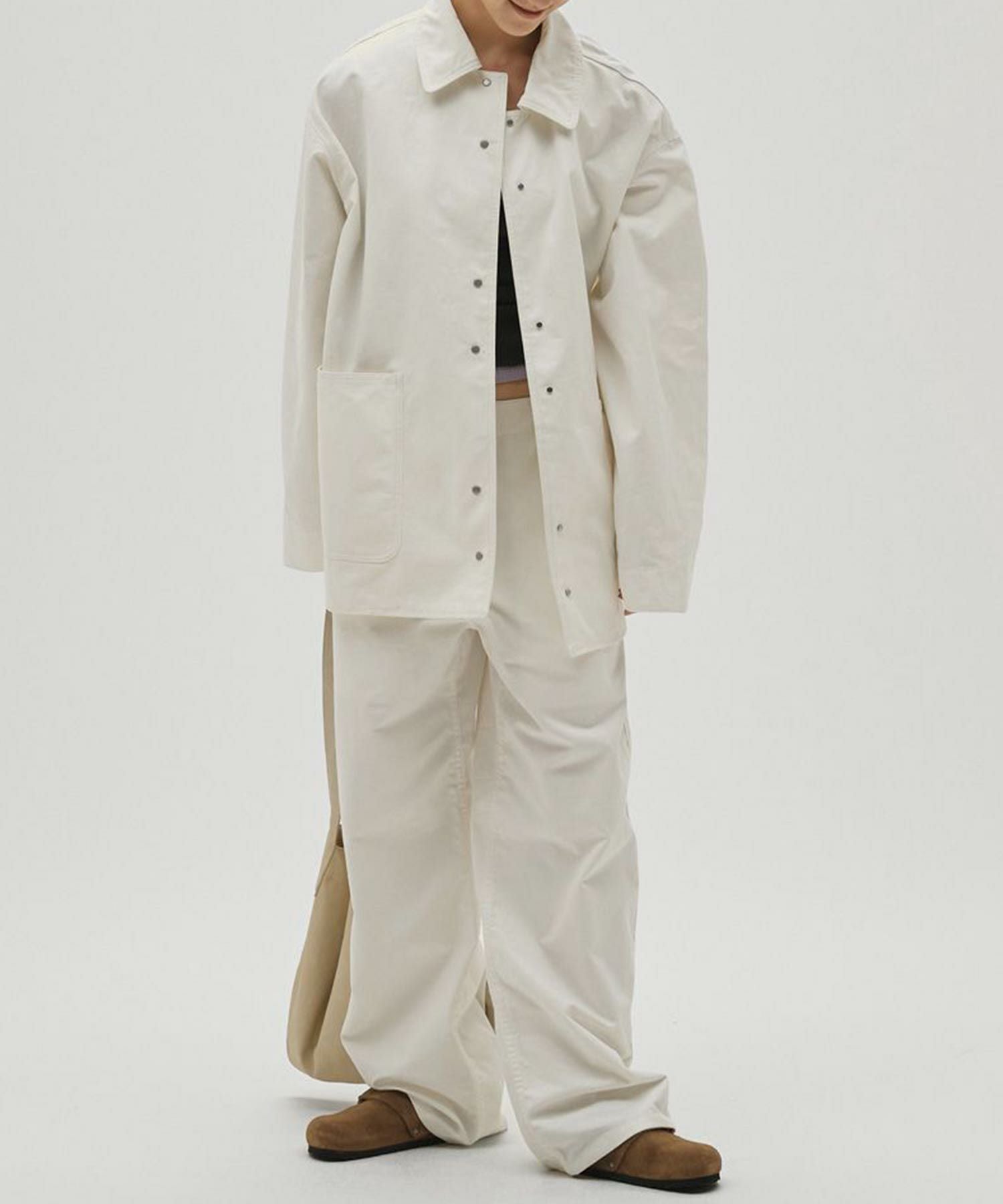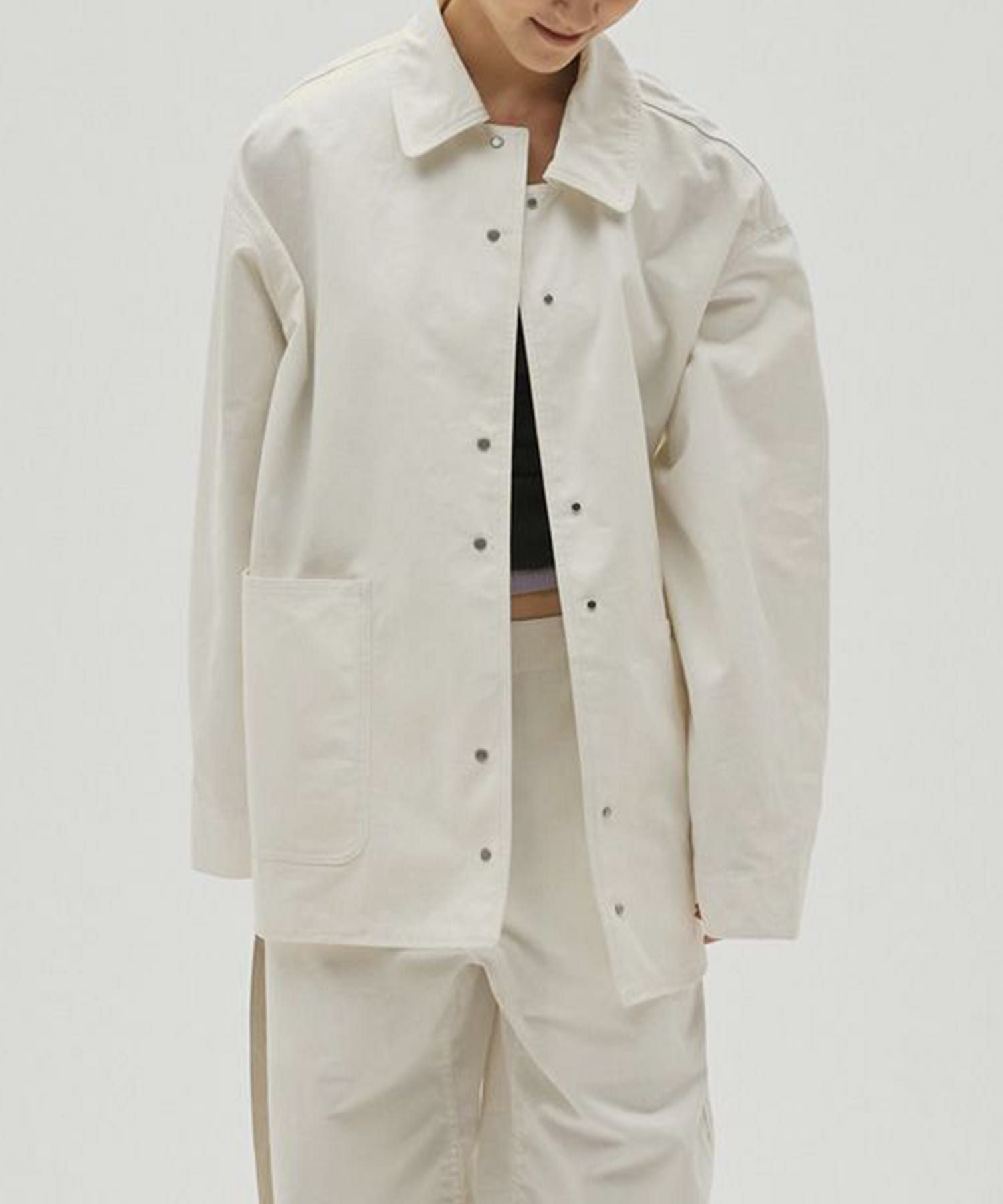 オーバーサイズのリラックスシルエットに、洗いをかけて柔らかく仕上げた生地が着るほどに体になじむ風合いを生み出します。フロントと袖口の小