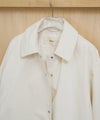 さなドットボタンや、肩・背中のハギ、両サイドの3本ステッチなど、細部のディテールまでこだわりの詰まった一枚。