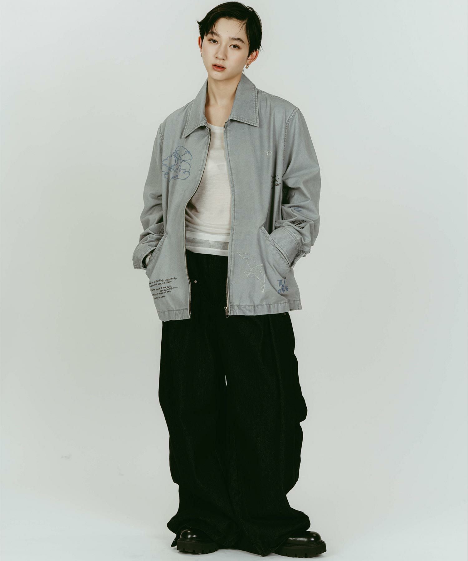 軽やかなライトジャケットに、落書きのように施された丁寧な刺繍が目を惹きます。