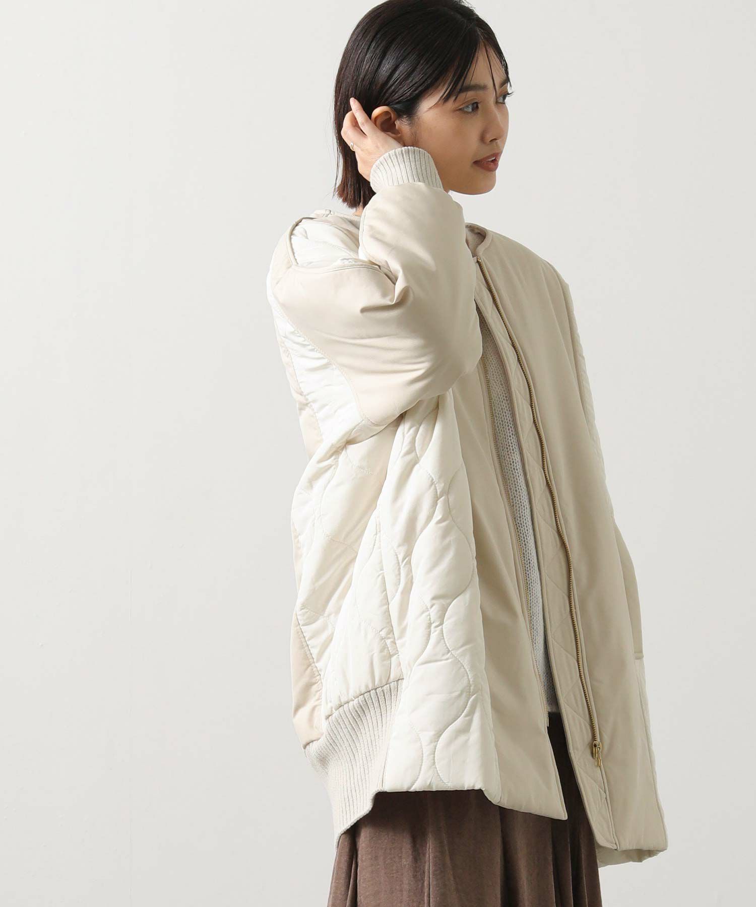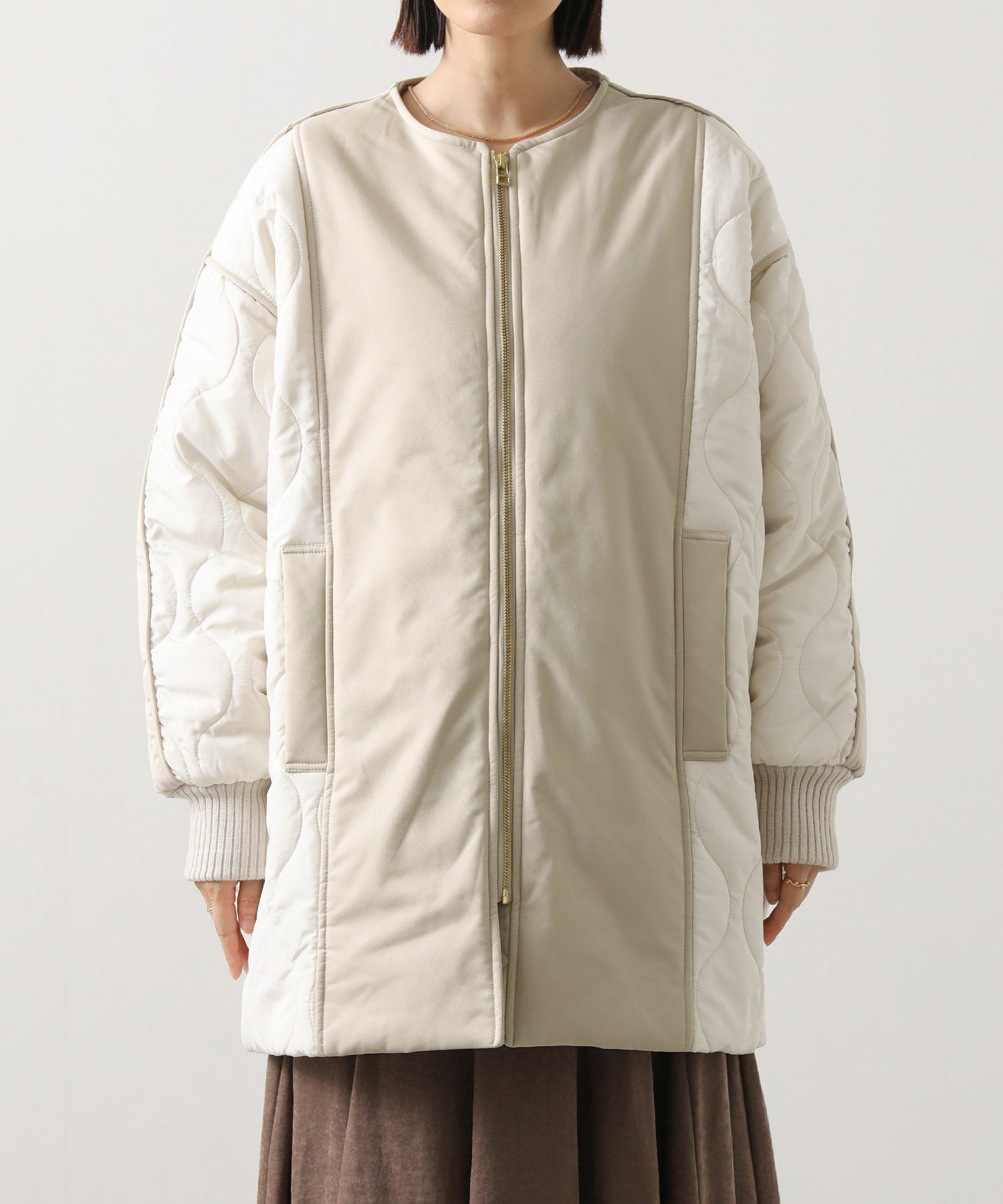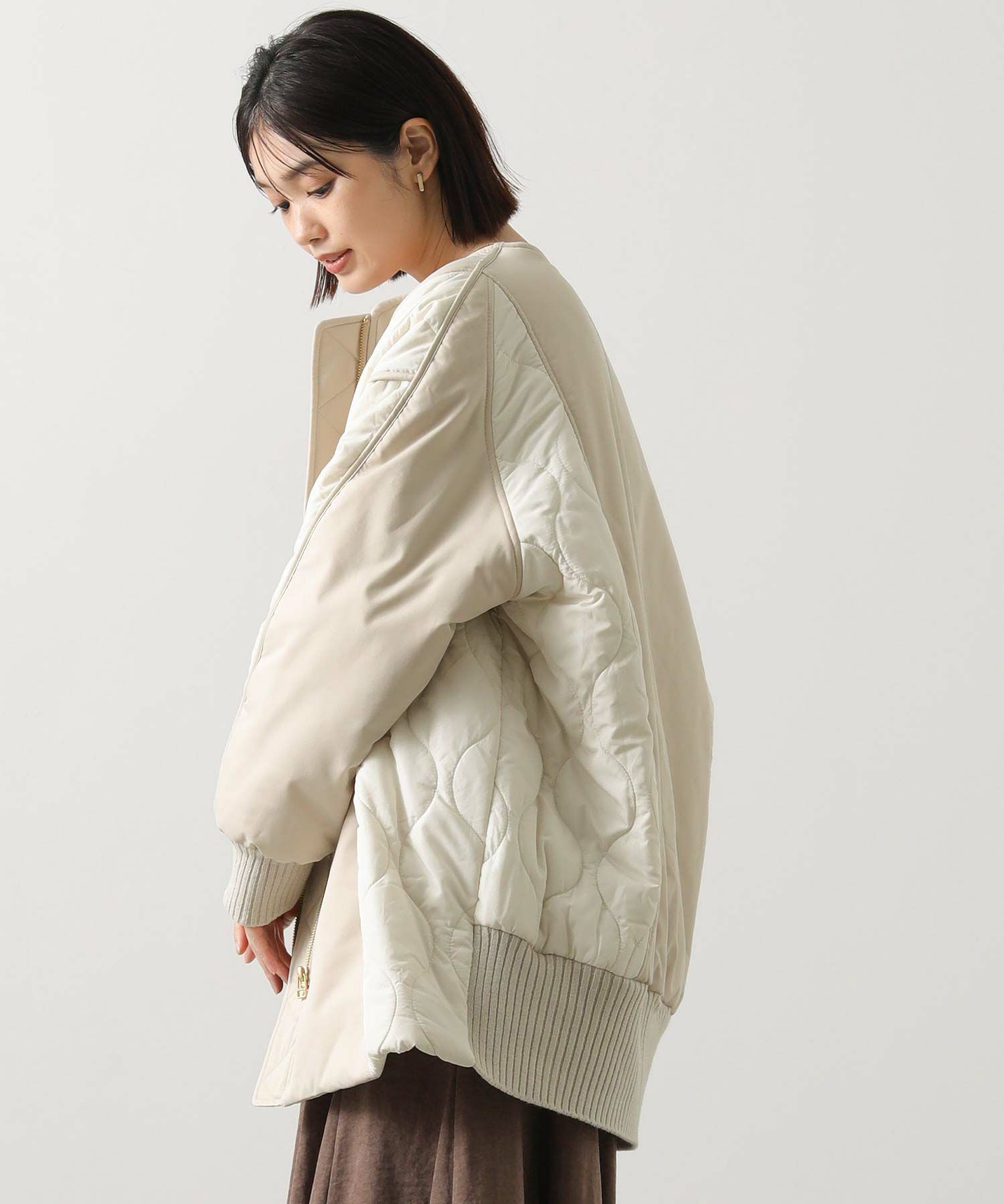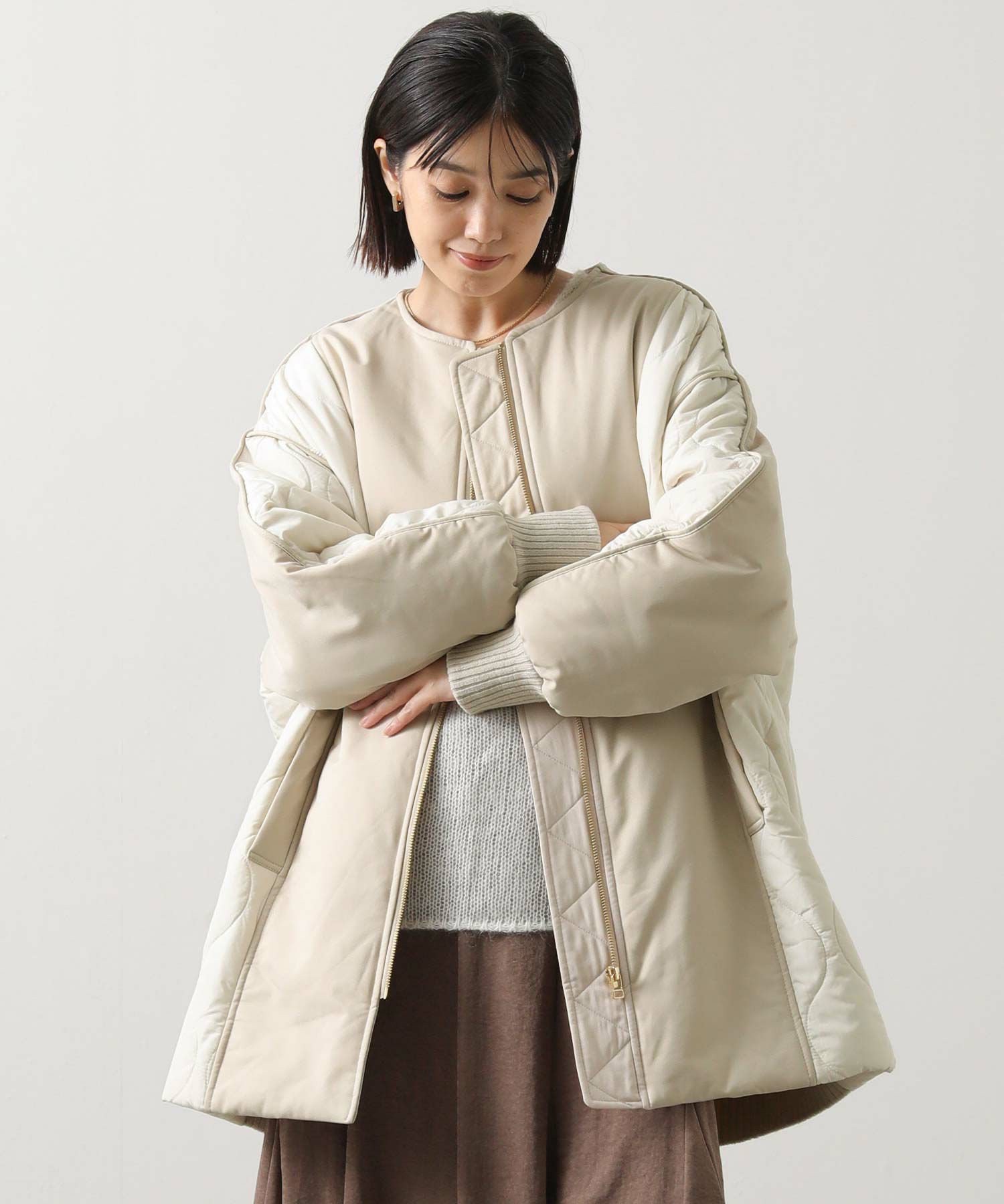 サイドのキルティングの切り替えがポイントの中綿コート。