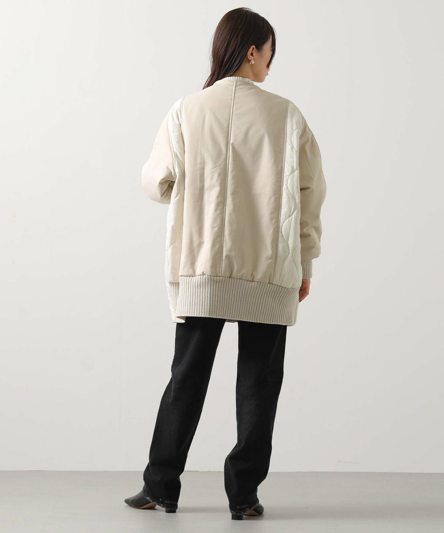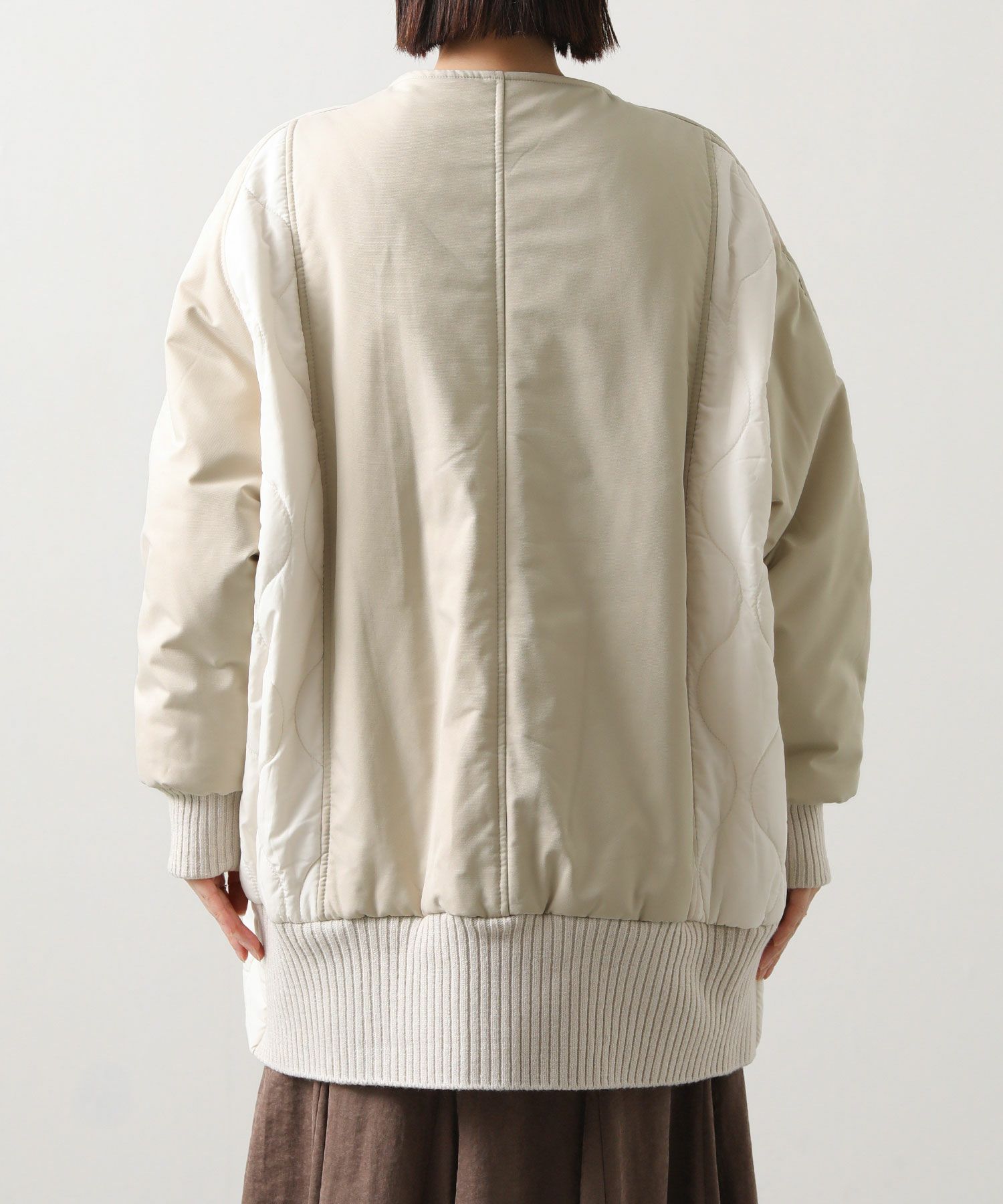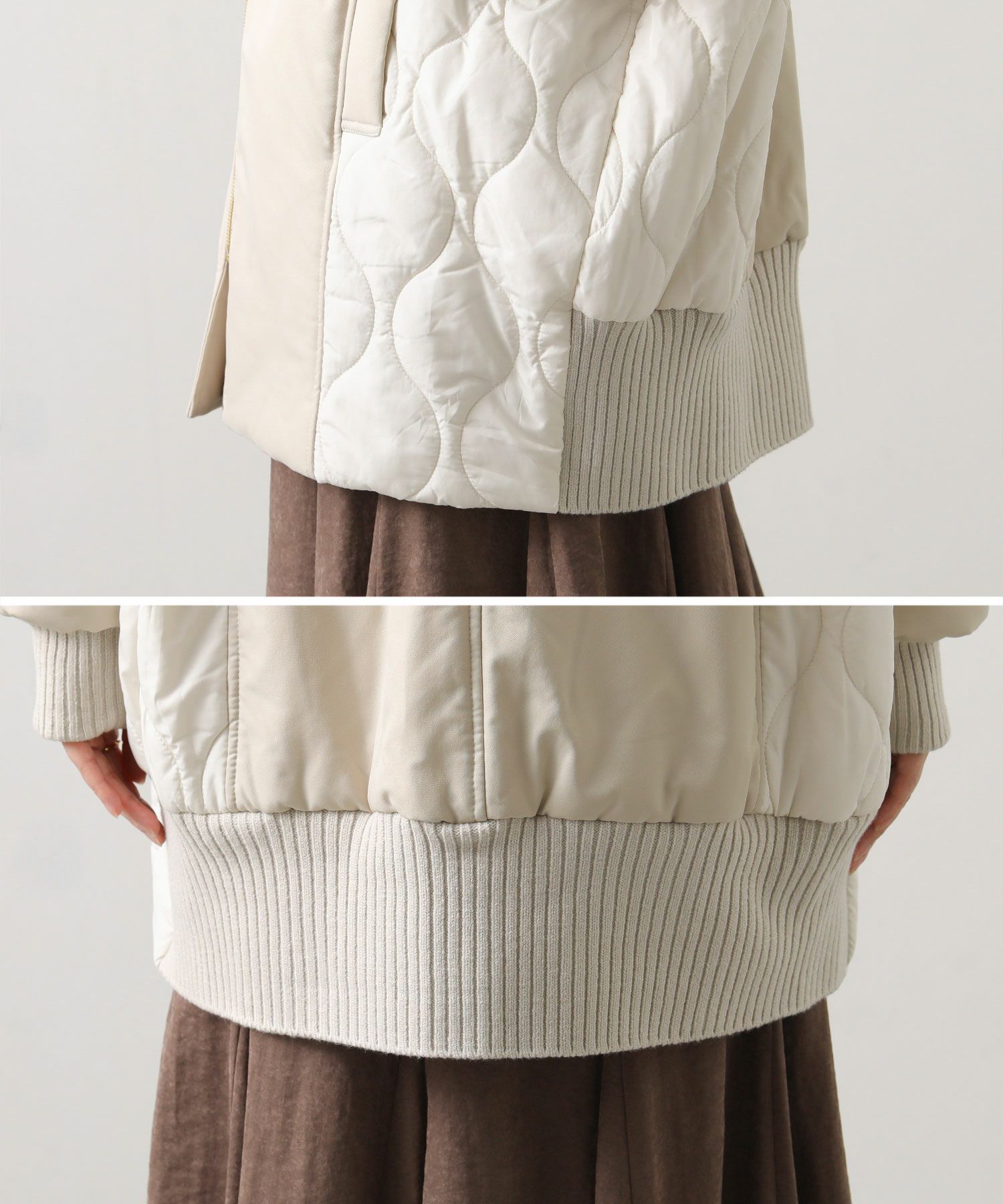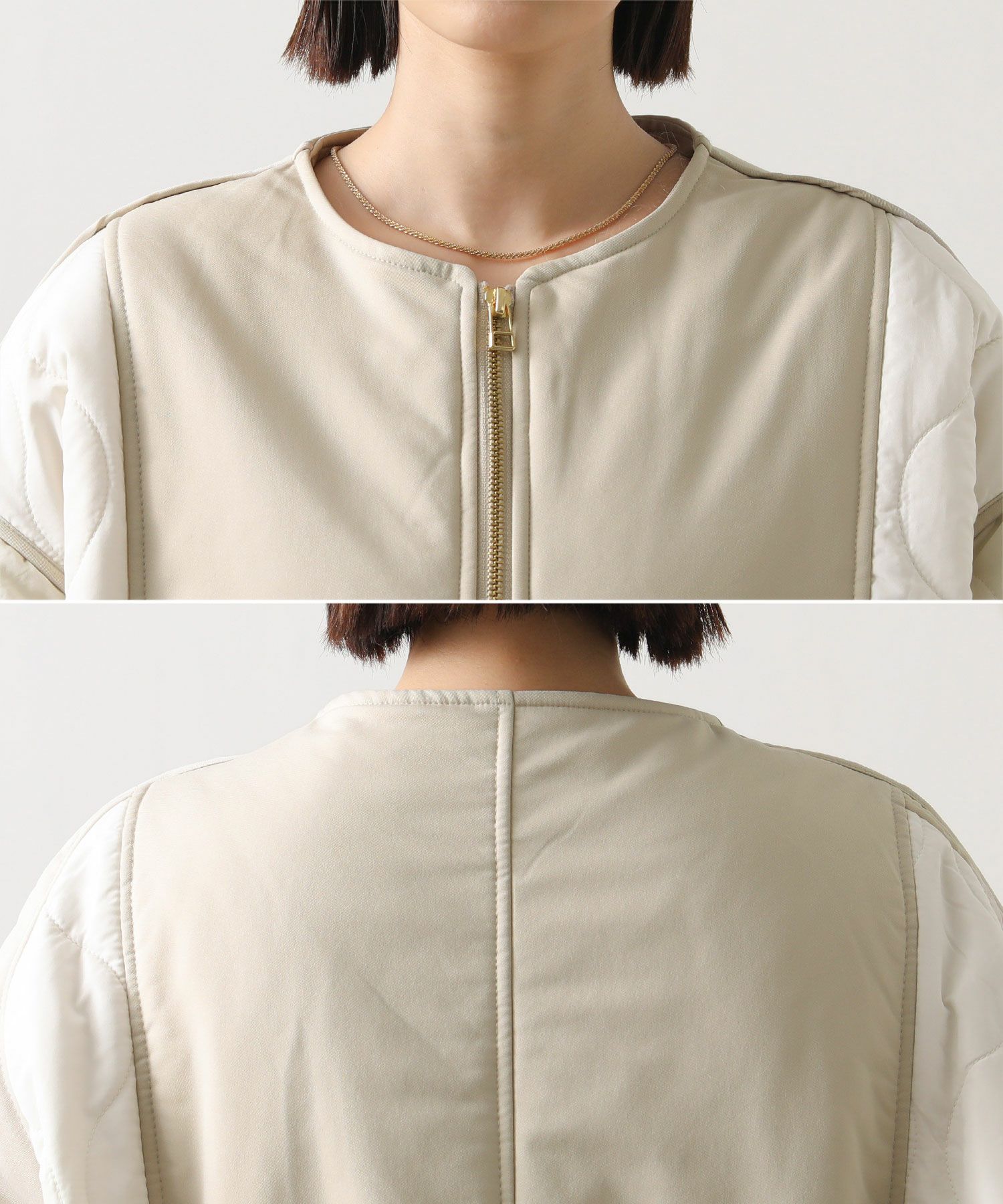 サイドのキルティングの切り替えがポイントの中綿コート。