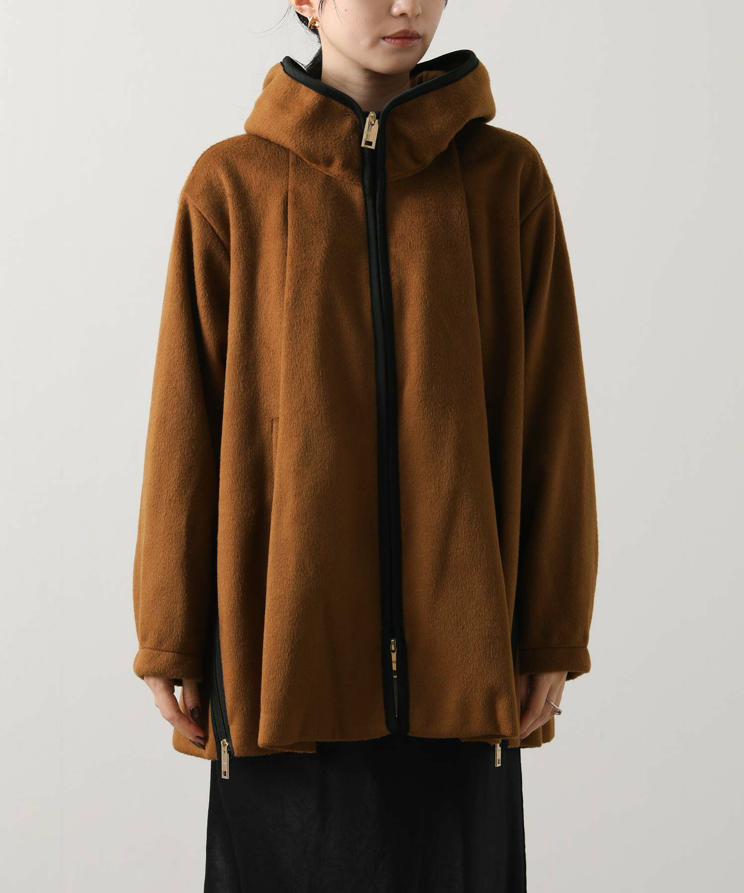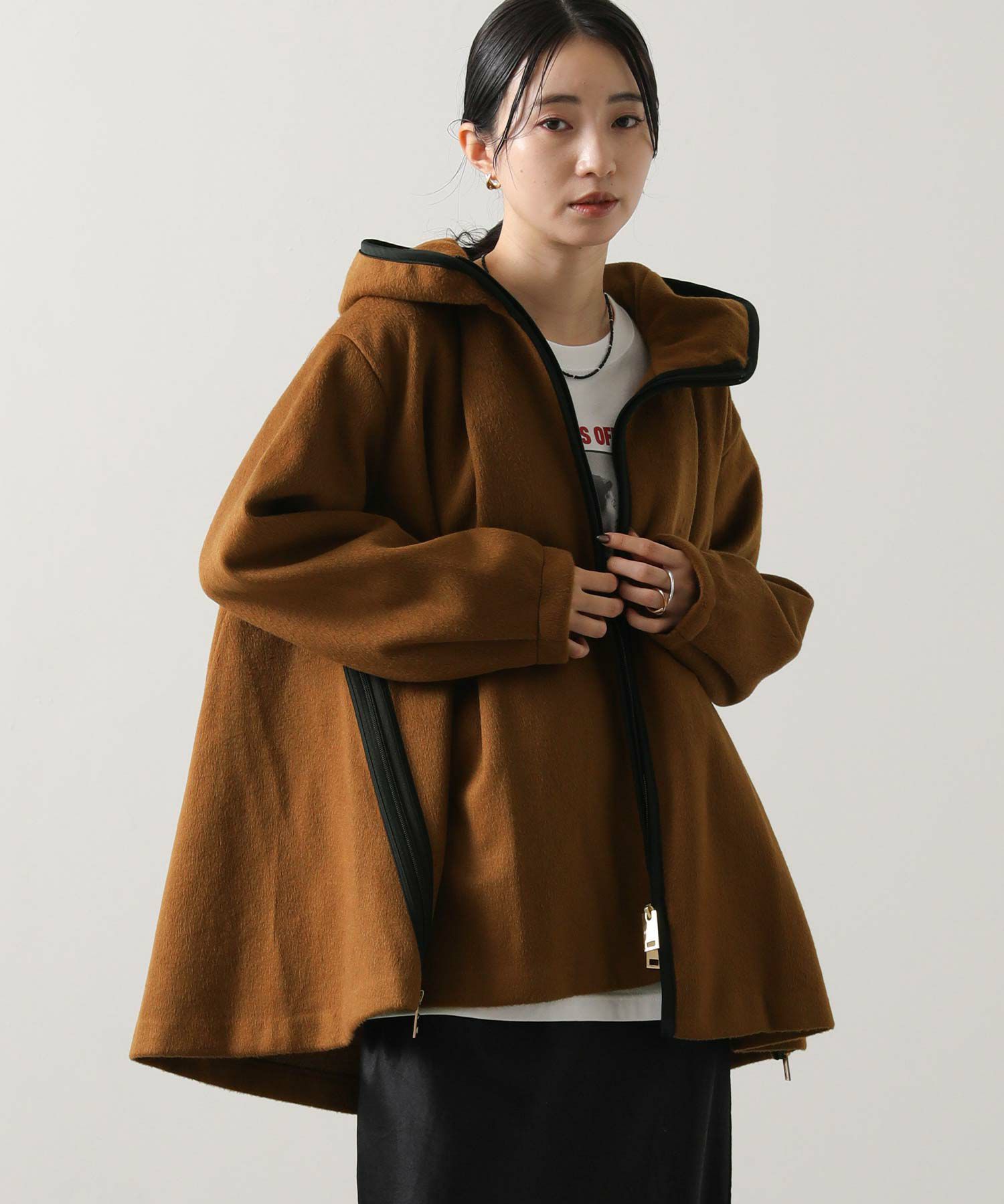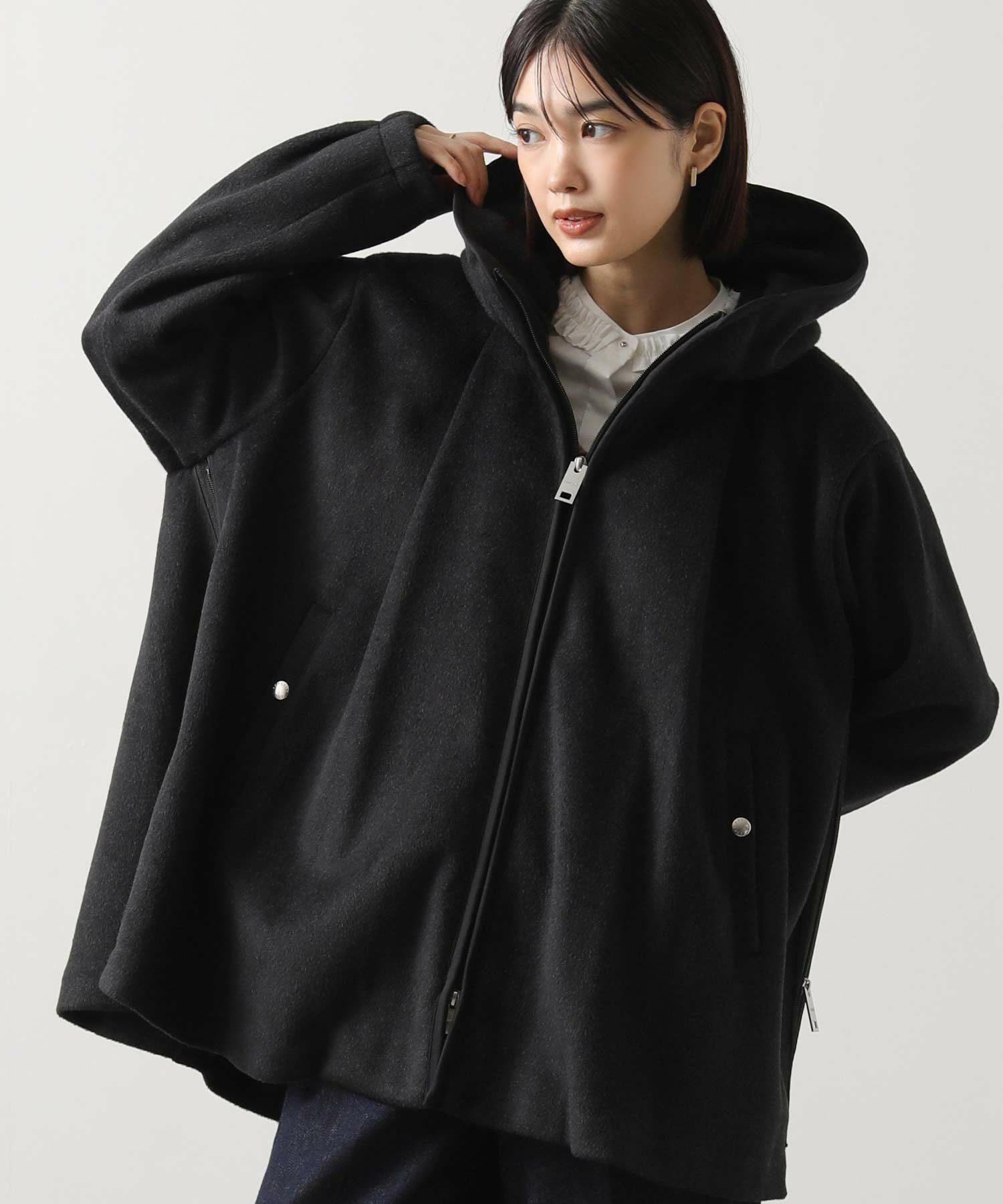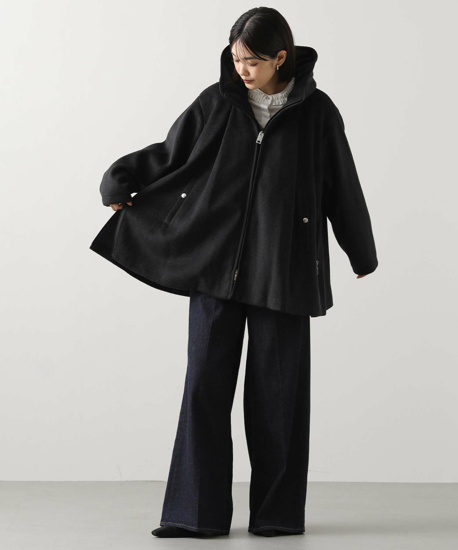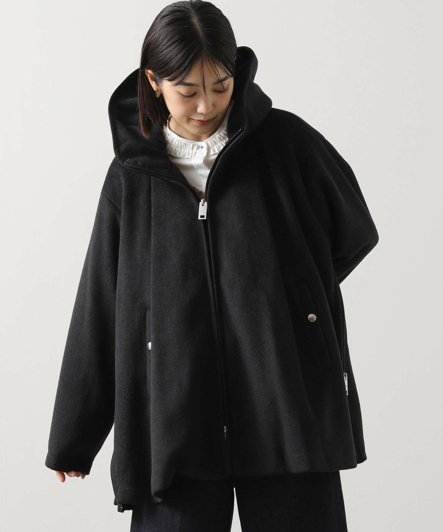 立体的に作られたフードが、小顔効果も◎シンプルながらもこだわりのあるディテールが魅力。