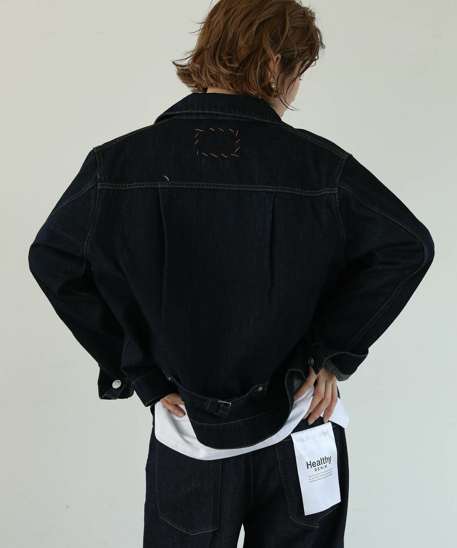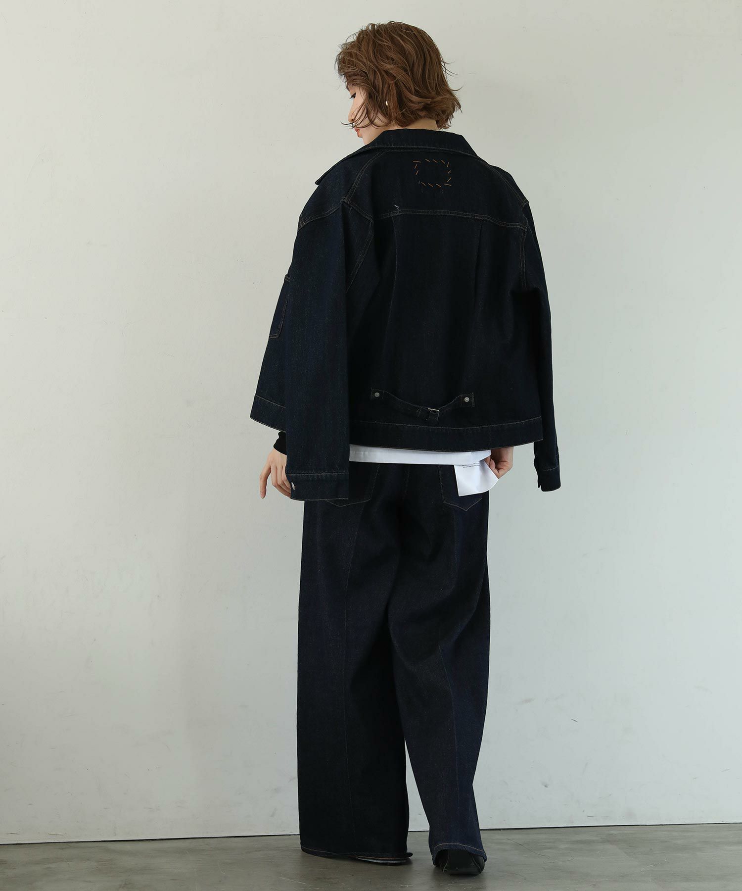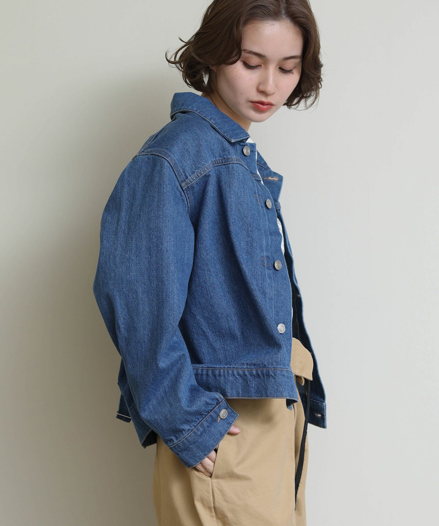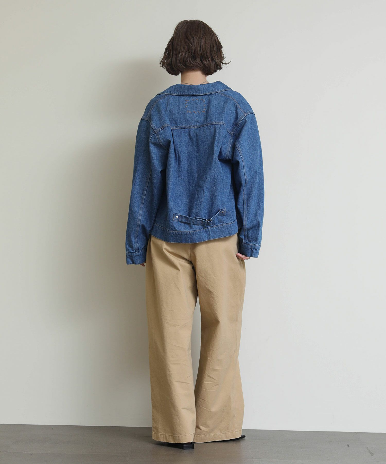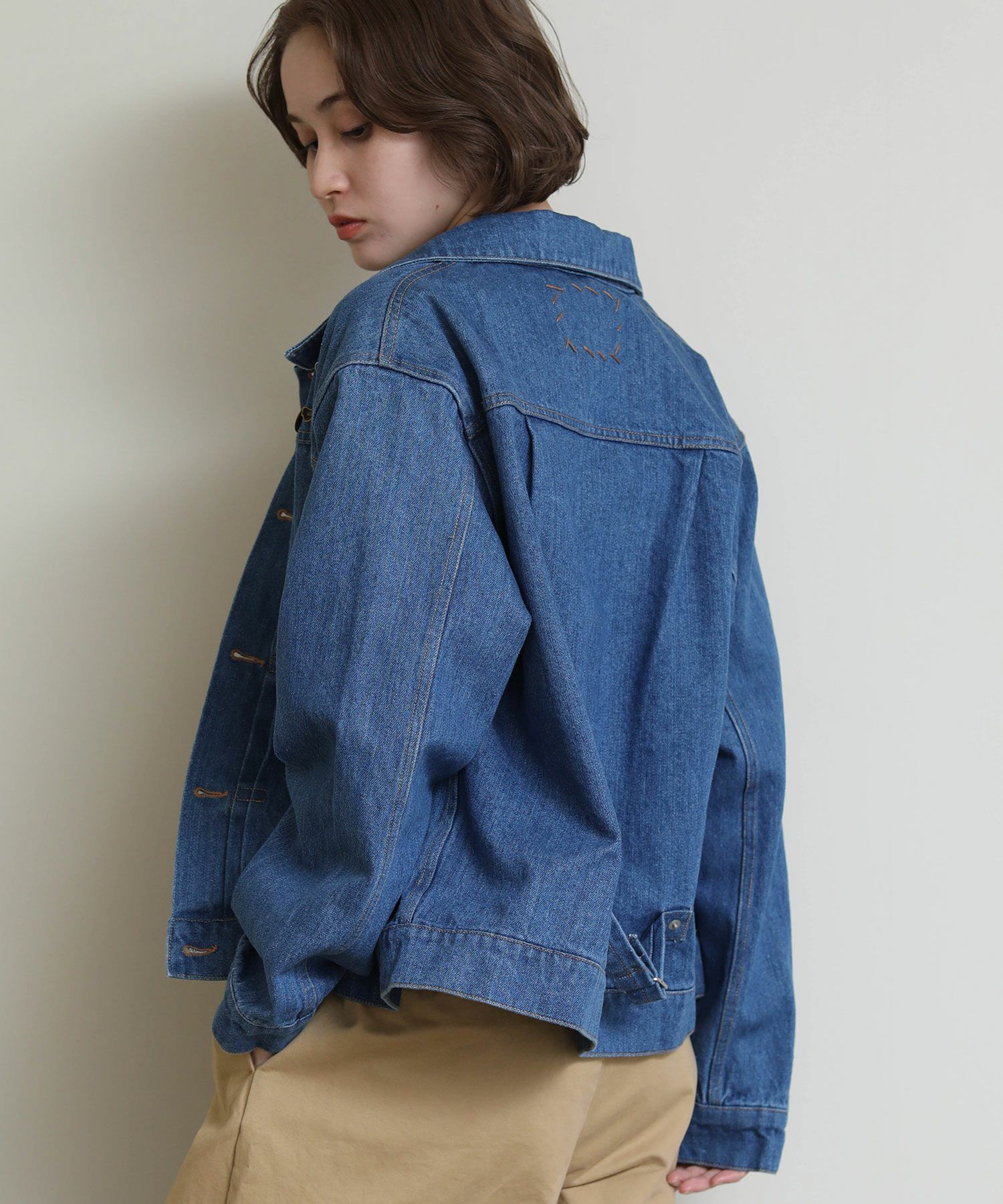 オーバーサイズになりすぎない程よいサイズ感に加え、ロングシーズン使っていただけるよう少し薄いデニム生地で仕上げております。