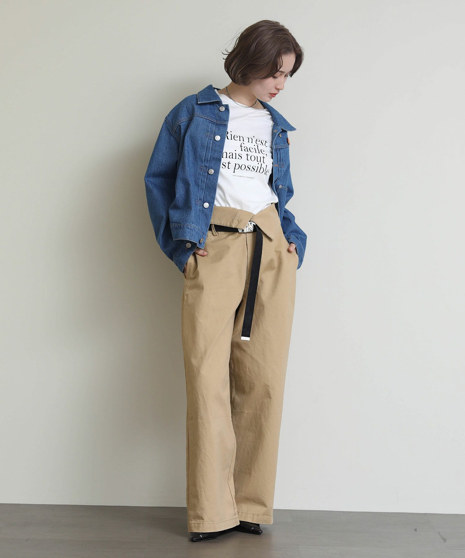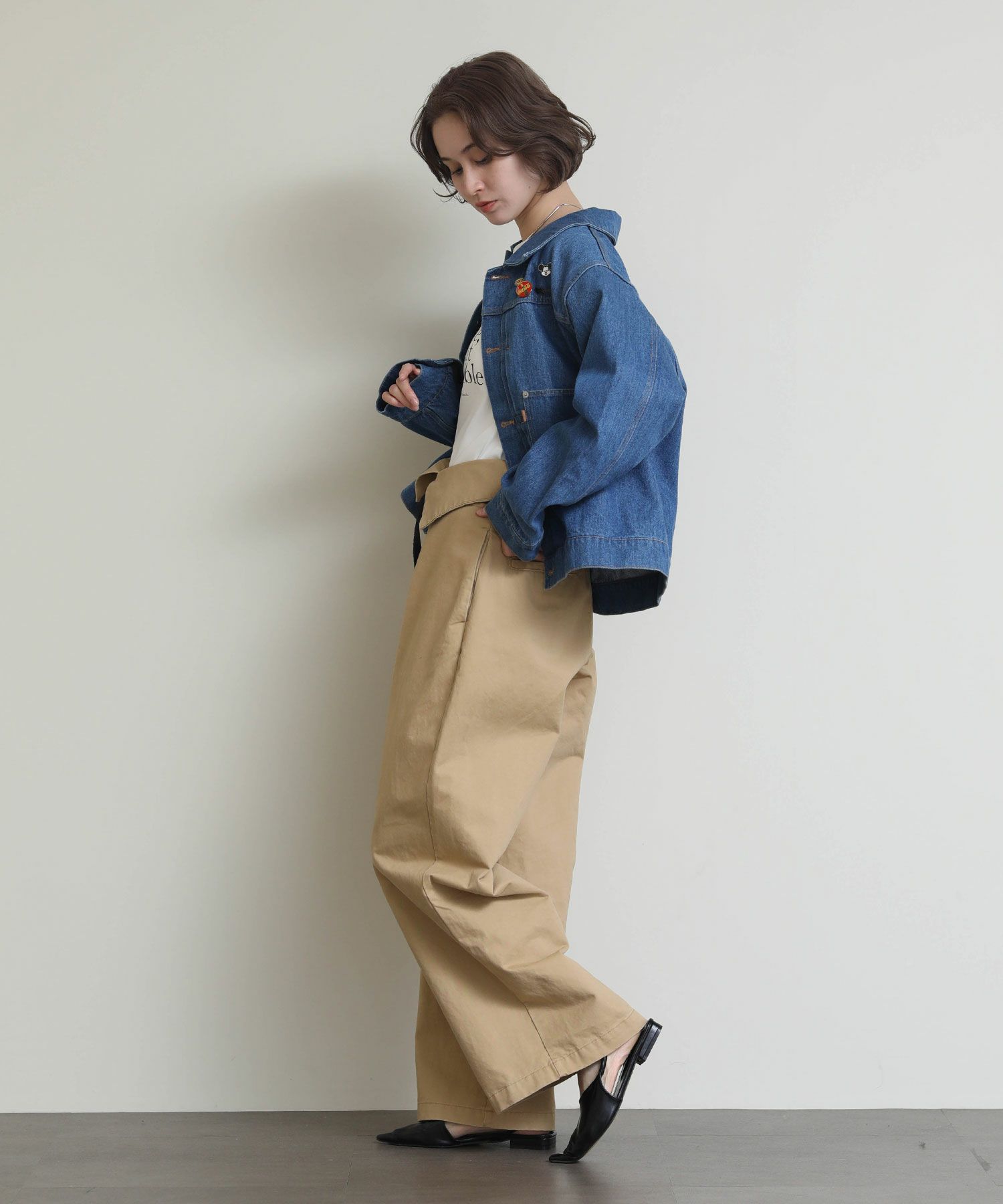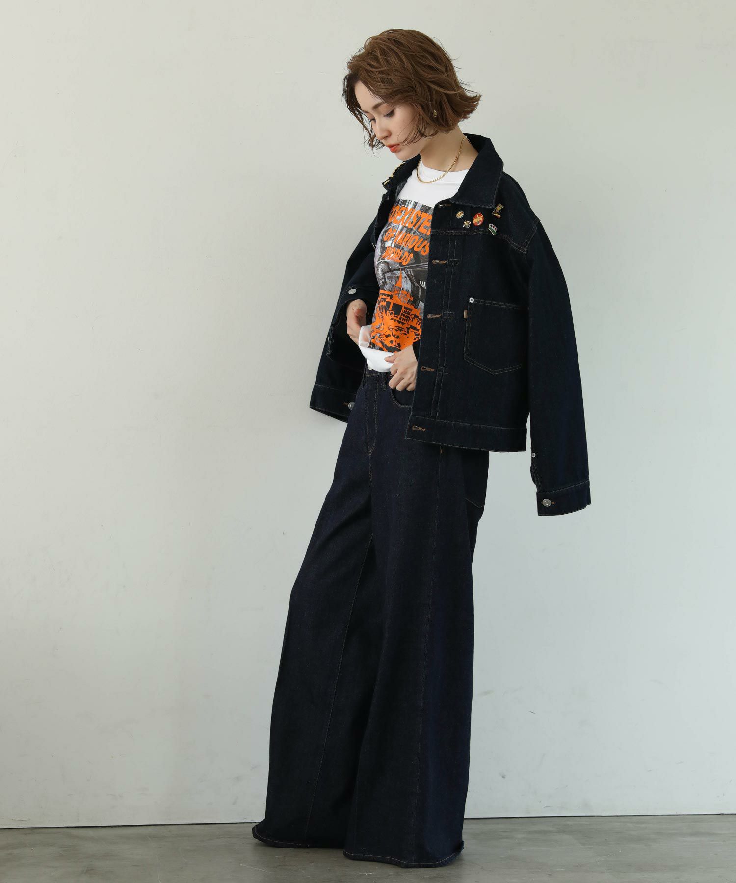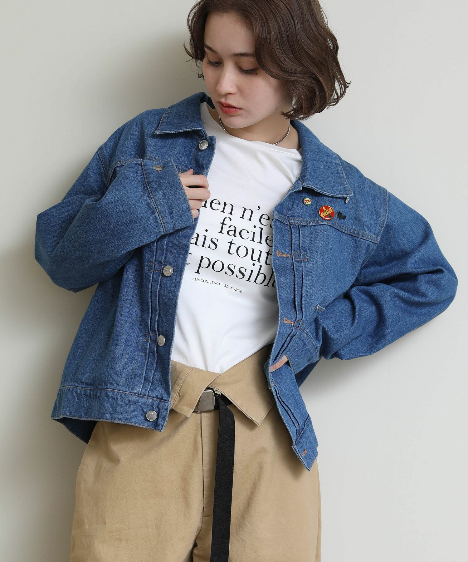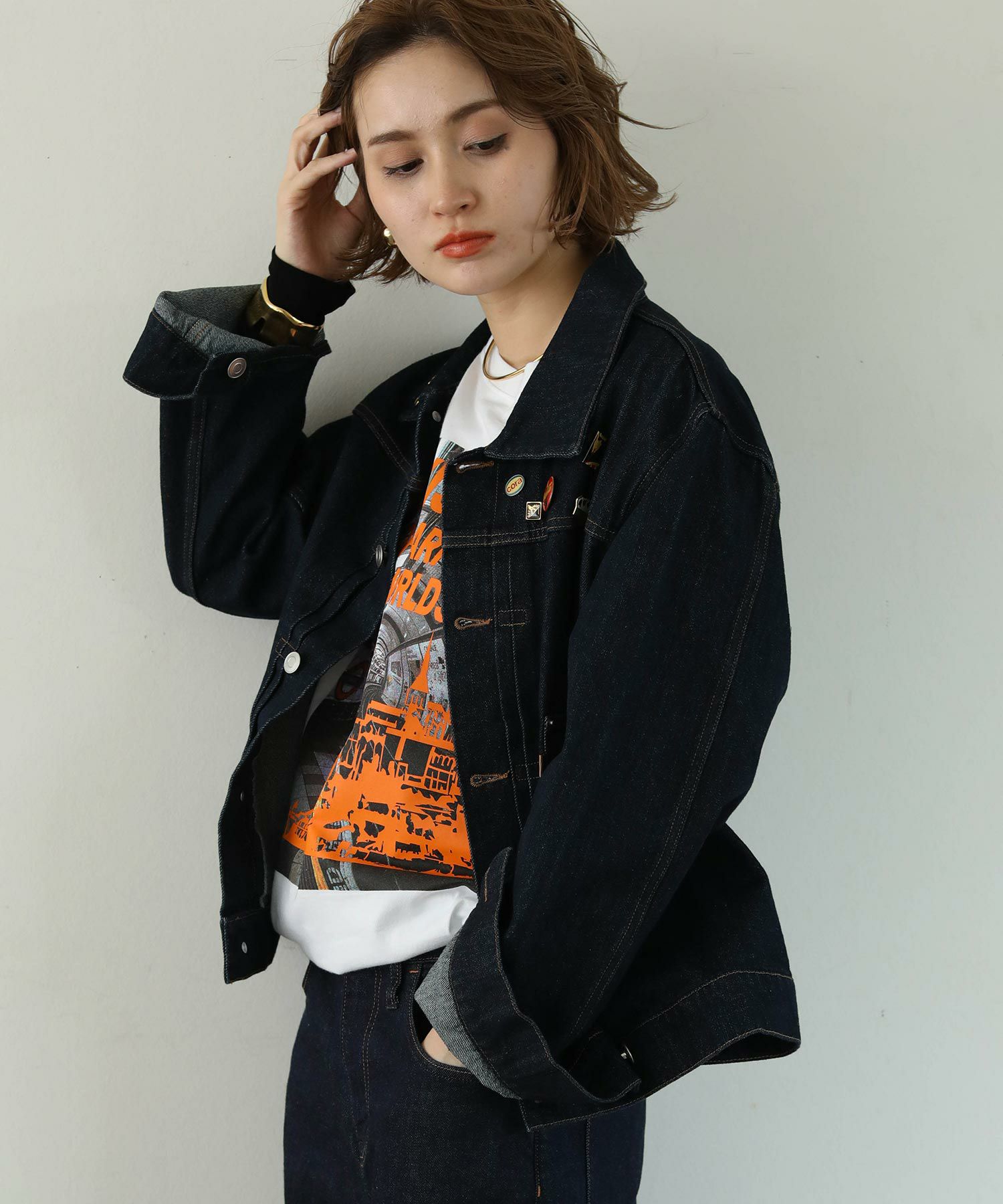 オーバーサイズになりすぎない程よいサイズ感に加え、ロングシーズン使っていただけるよう少し薄いデニム生地で仕上げております。