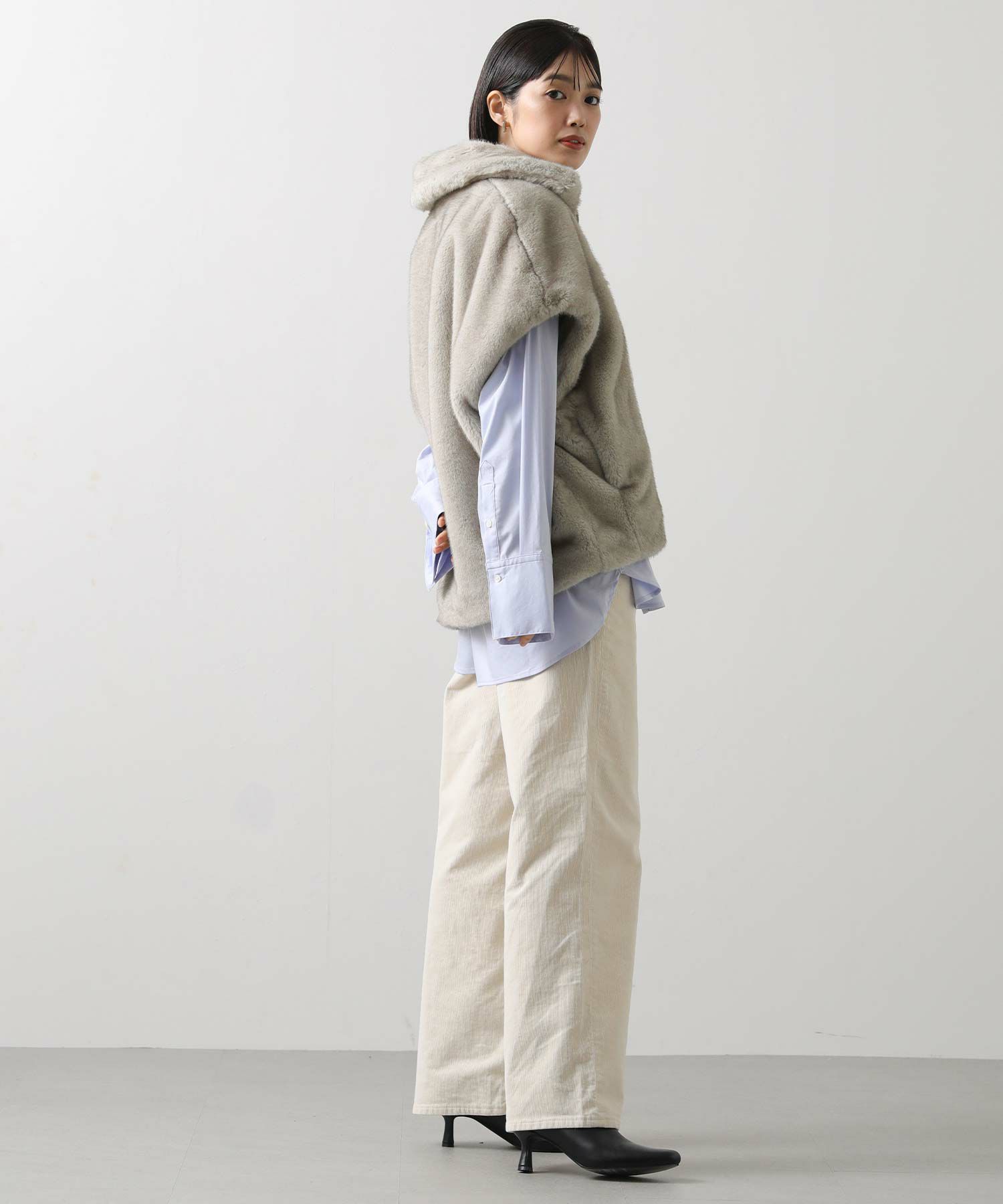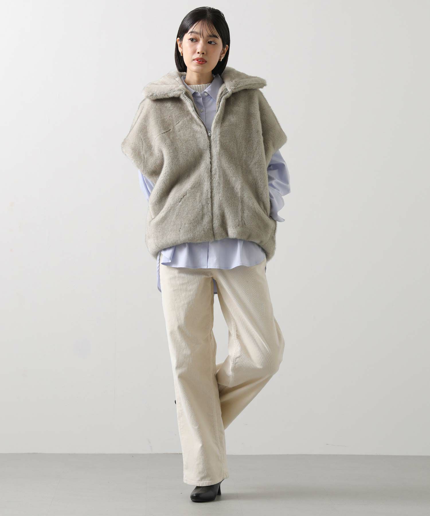 羽織るだけでこなれた印象になる、目を惹くファーベスト。