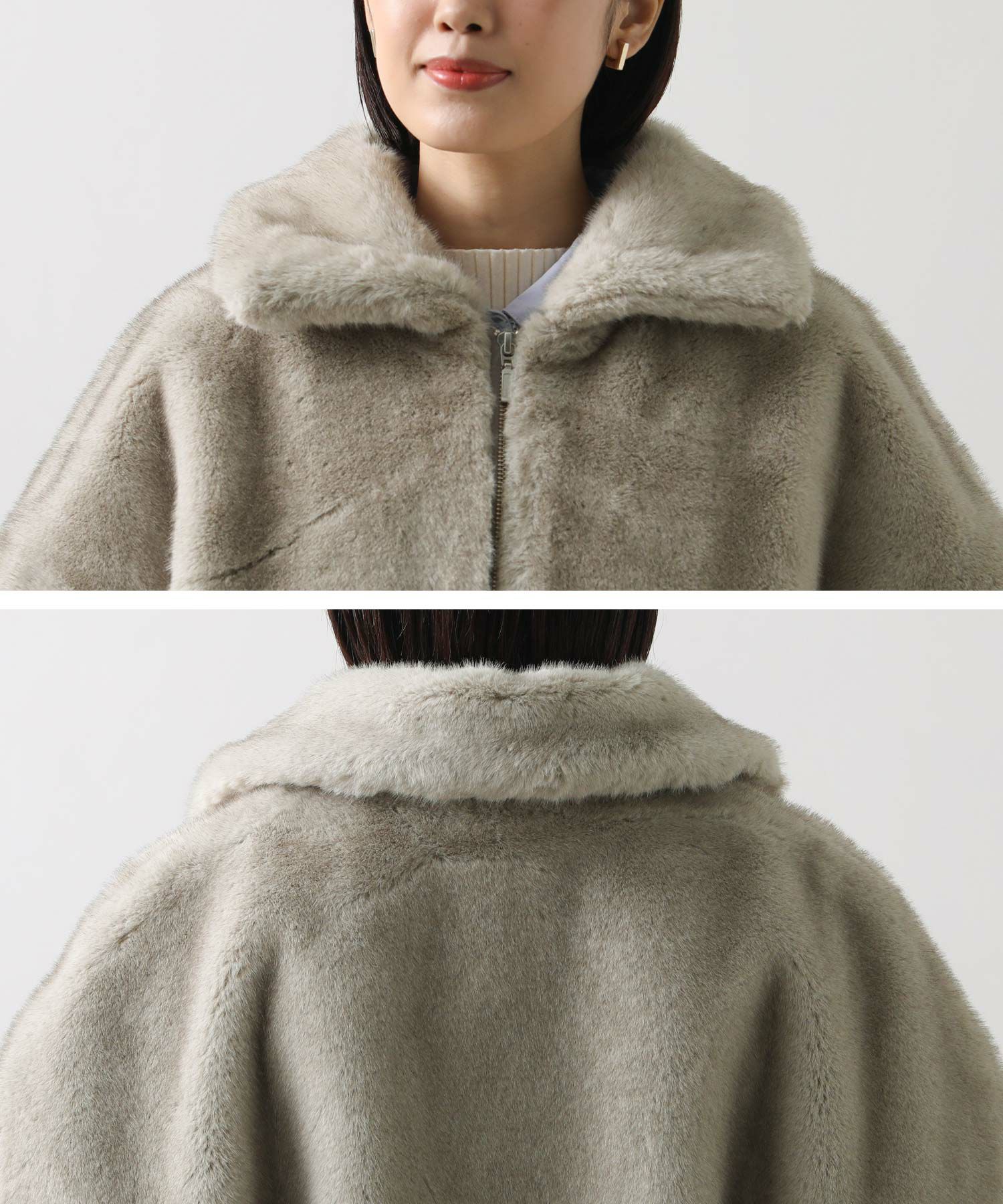 リアルファーのような艶があり、上品で高級感のあるフェイクファーを使用。