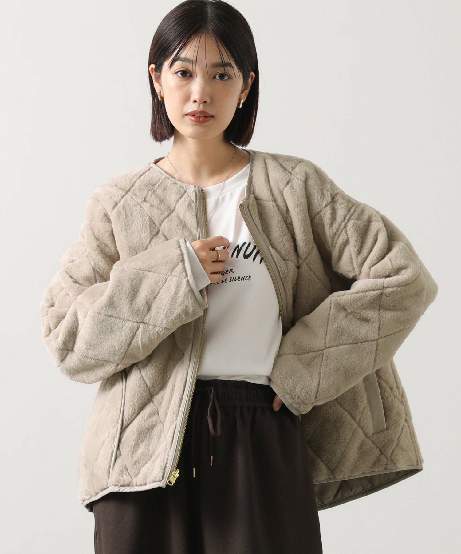 なめらかなファー素材とキルティング素材がリバーシブルになった2WAYブルゾン。