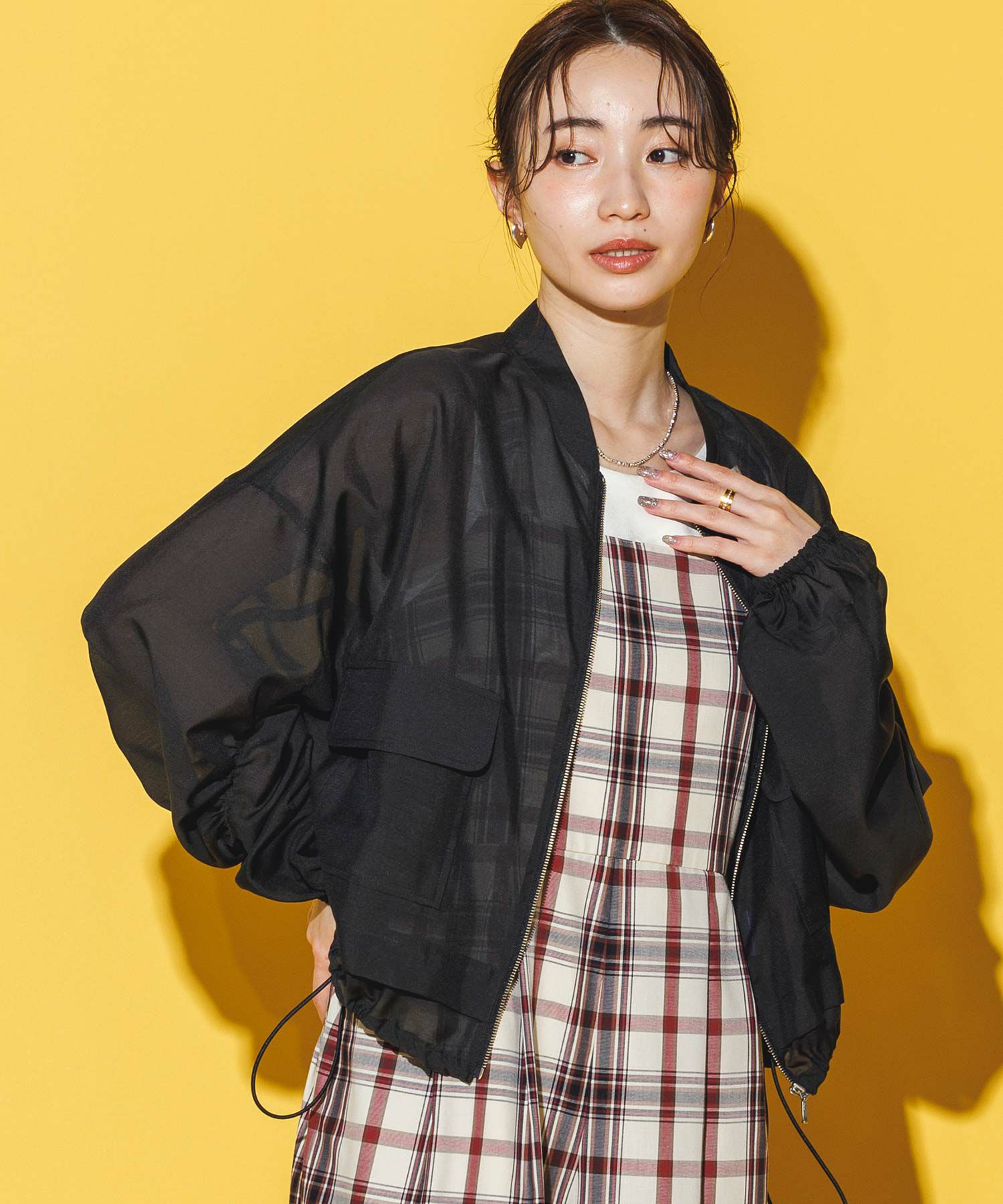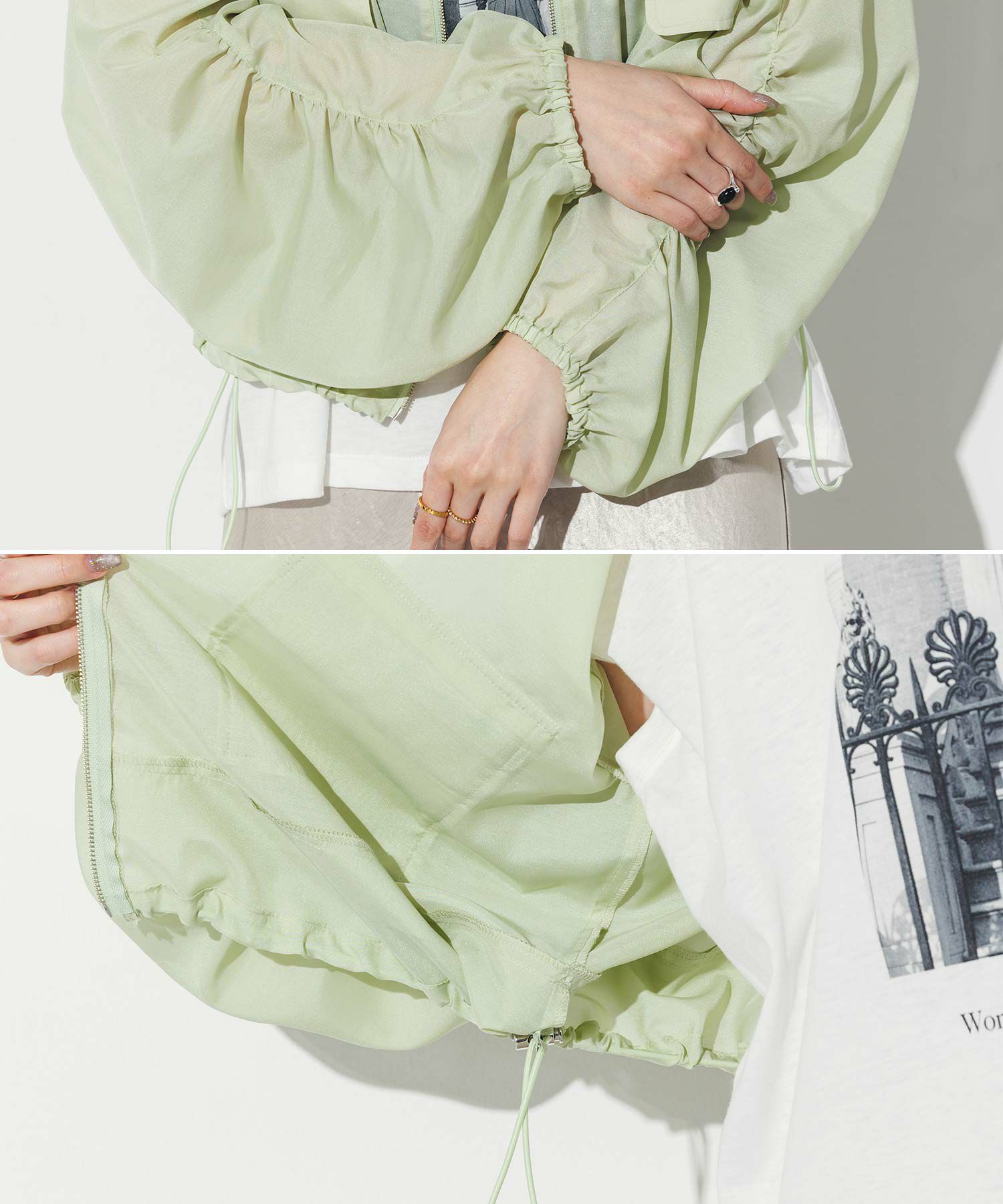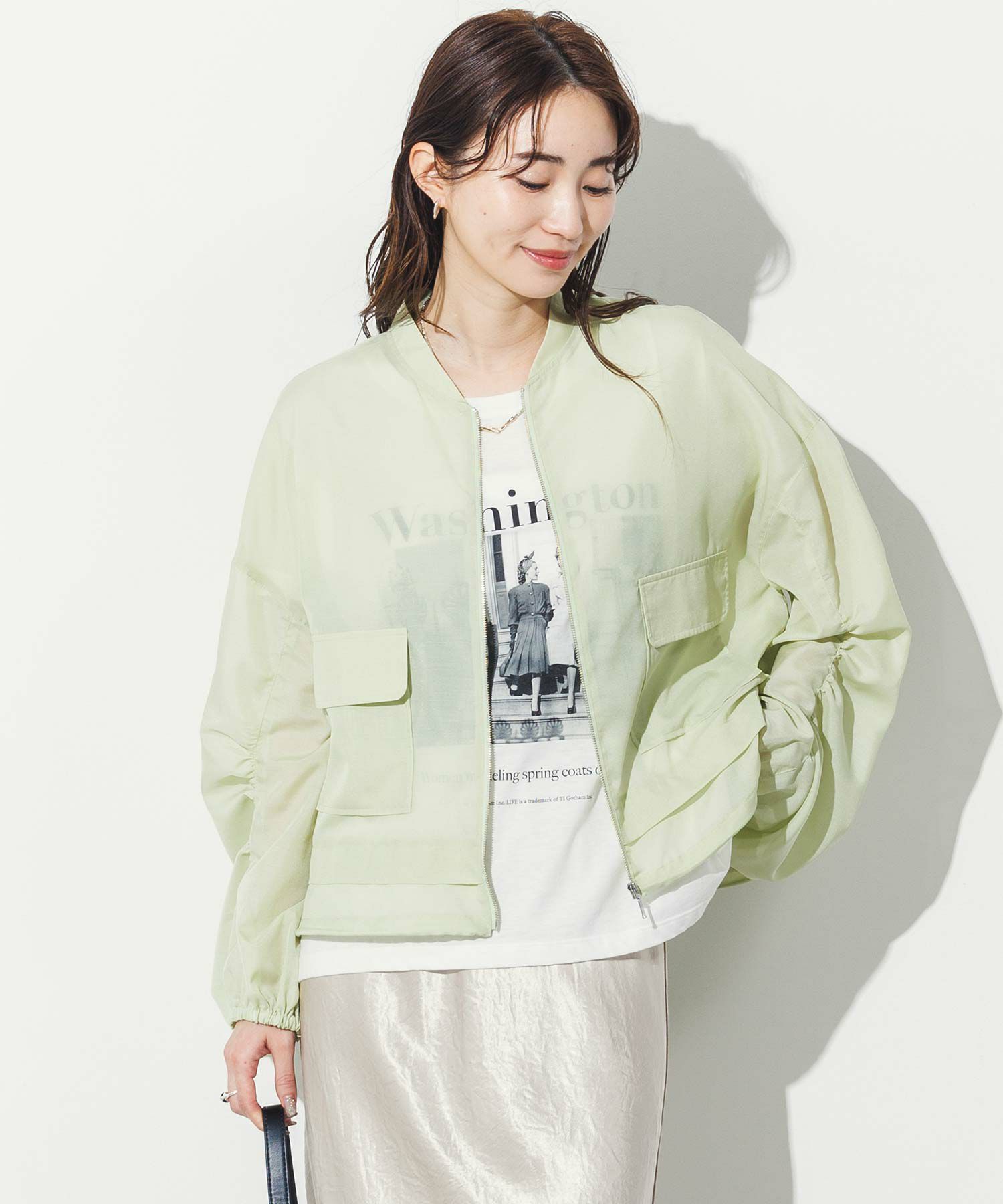 軽やかなシアー素材を使用したMA-1ブルゾン。