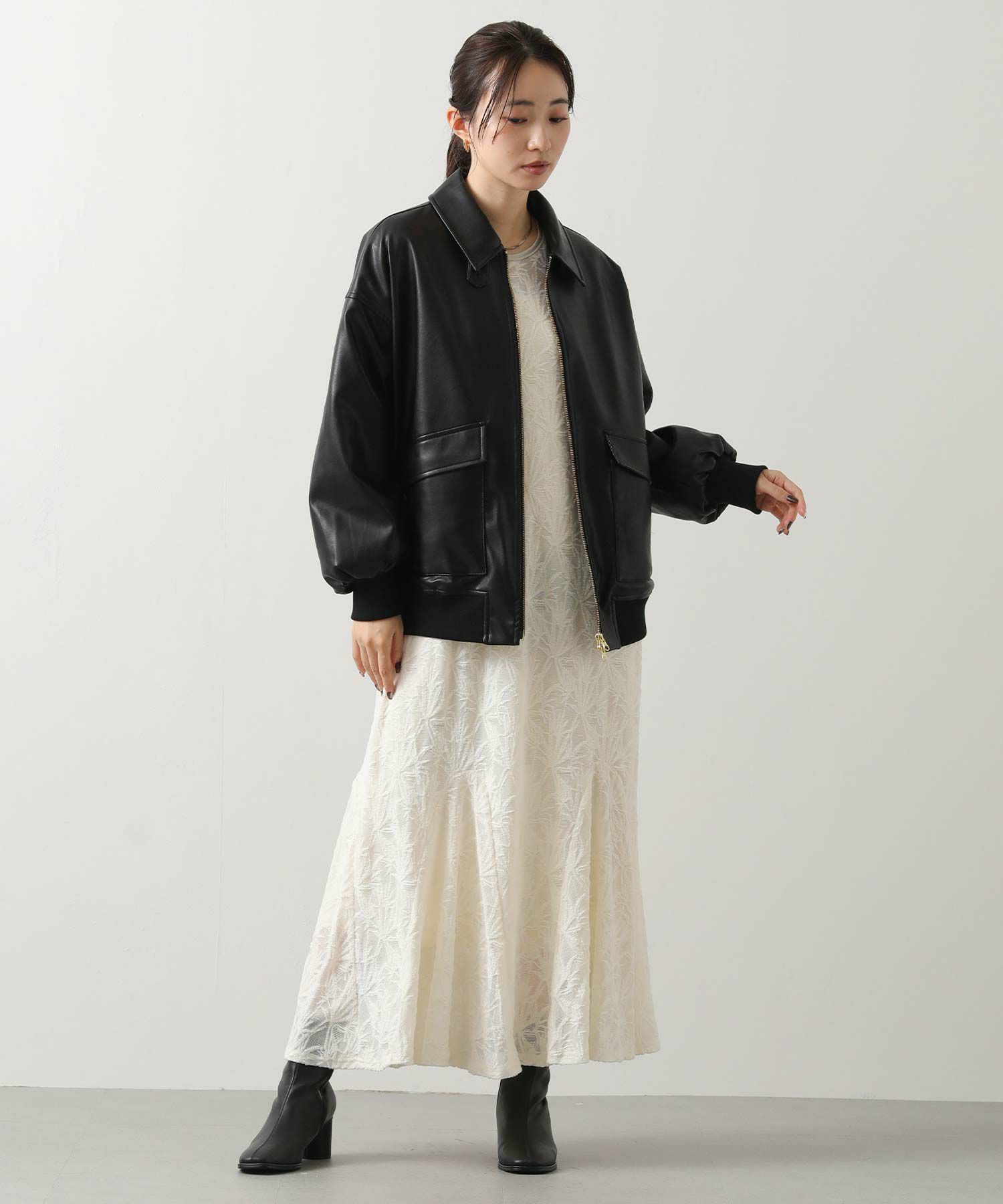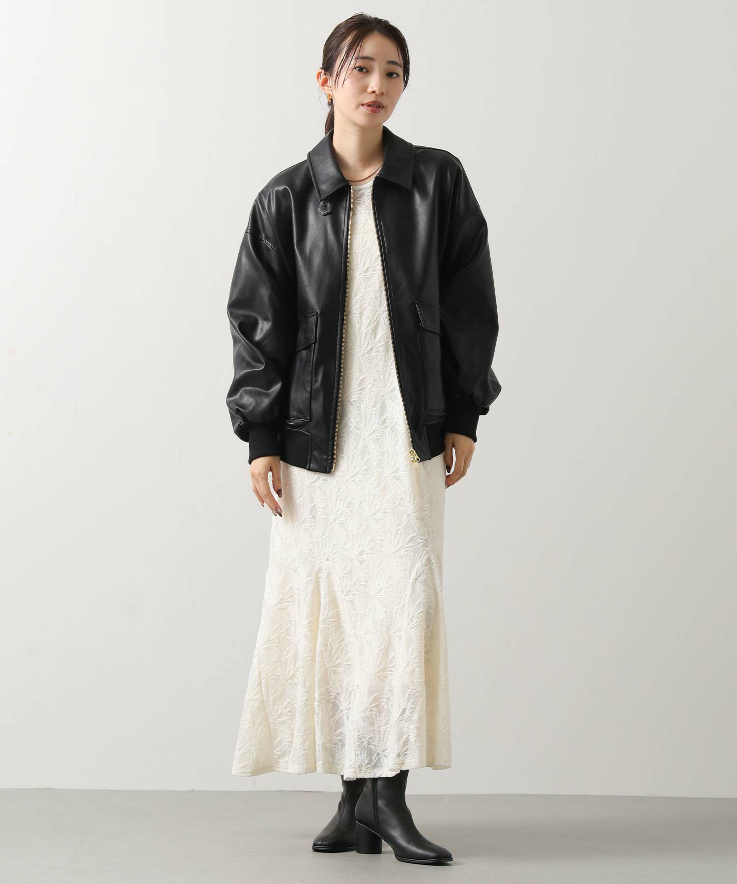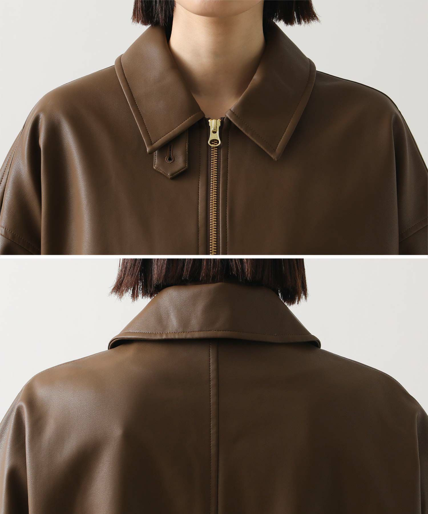 オーバーサイズですが、リアルレザーと違い軽くて羽織りやすいのでデイリー使いにオススメ。