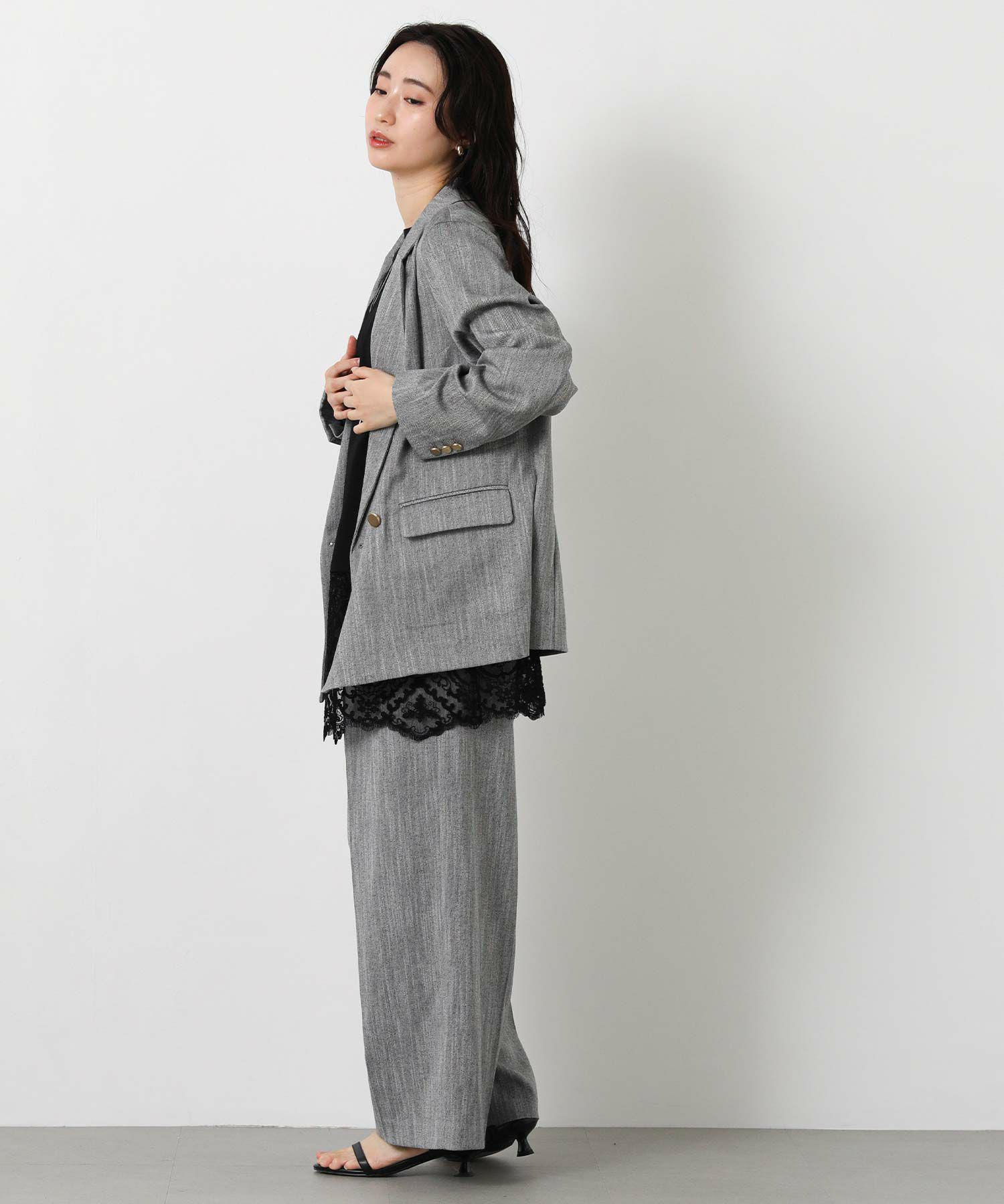 同素材のパンツLUスラブハイウエストワイド(OEO1034426004)とセットアップでの着こなしもオススメ。