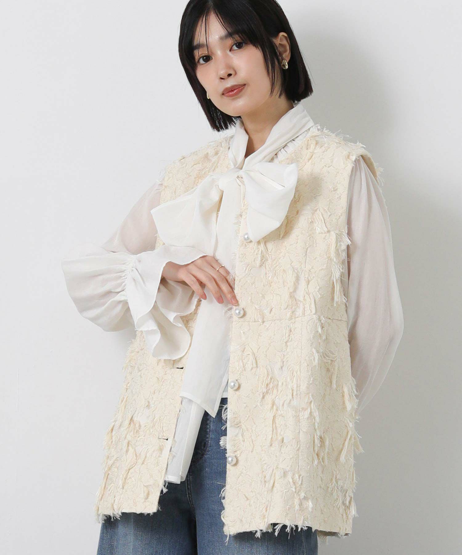 ※ジャガードのフリンジ部分はハンドカットのため、個体差があります。
