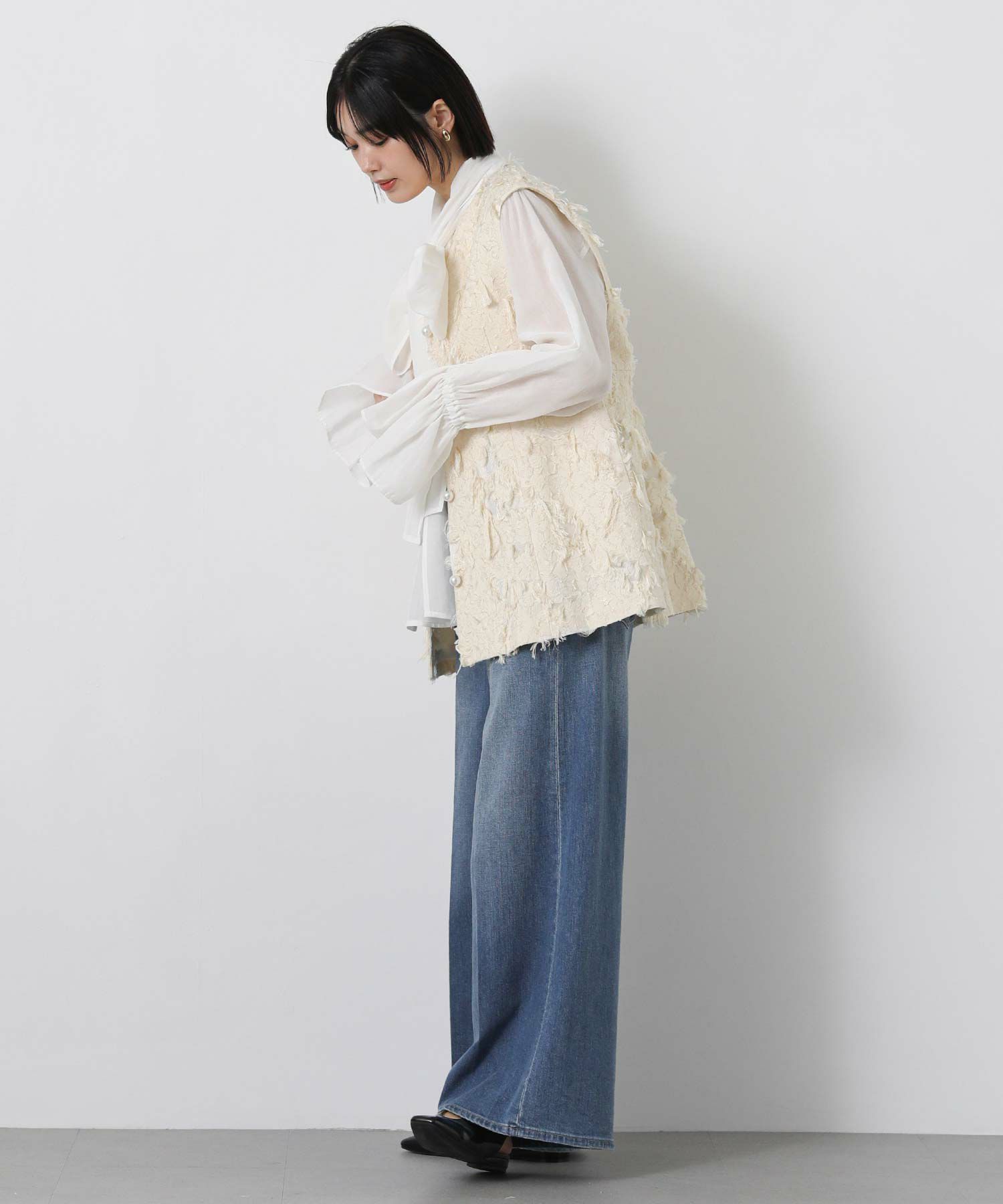 ※着用画像は撮影状況、光の当たり具合で色みが違って見える場合がございます。実際の色みについては、画像一覧の最後に掲載している詳細画像をご参照ください。
