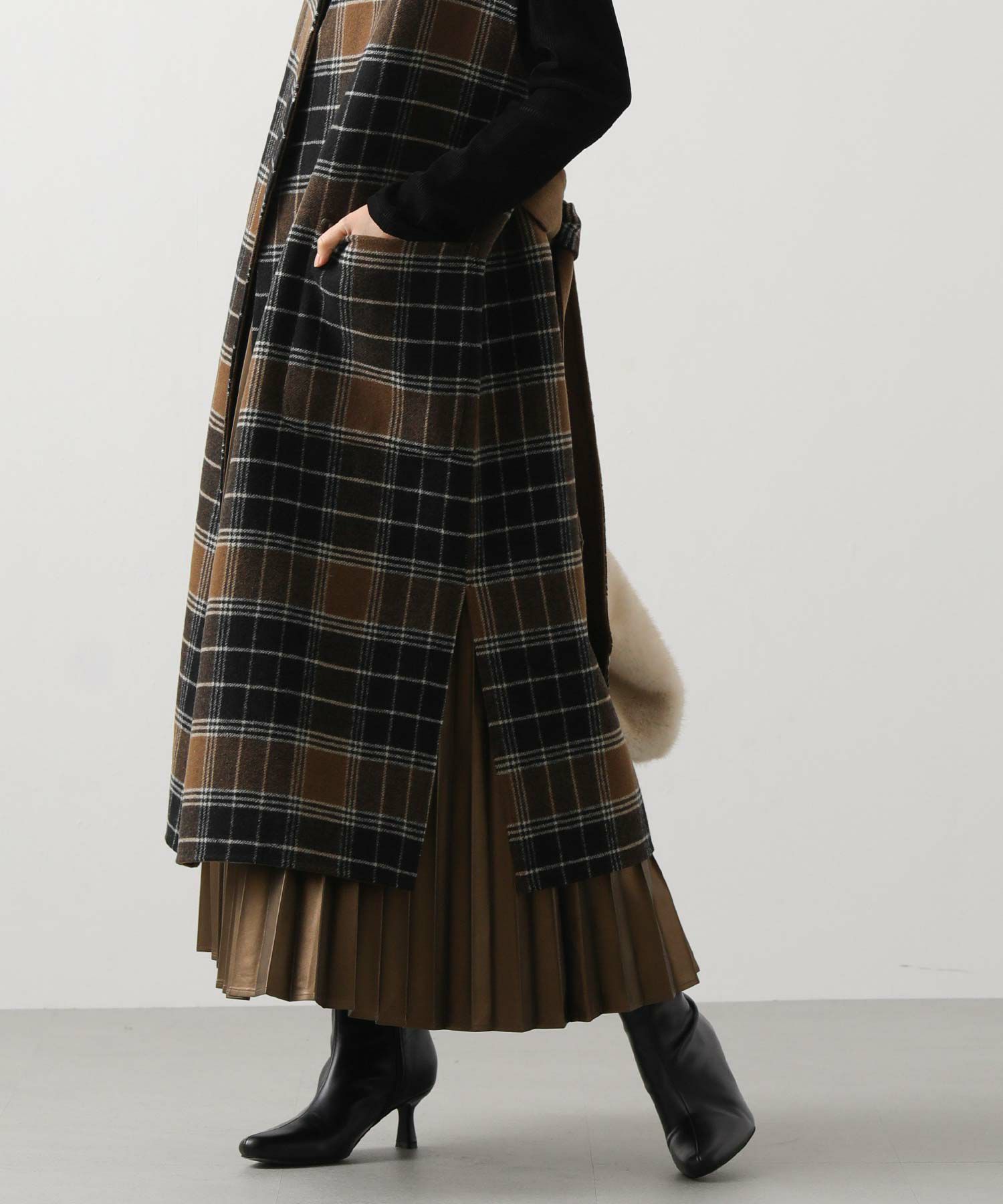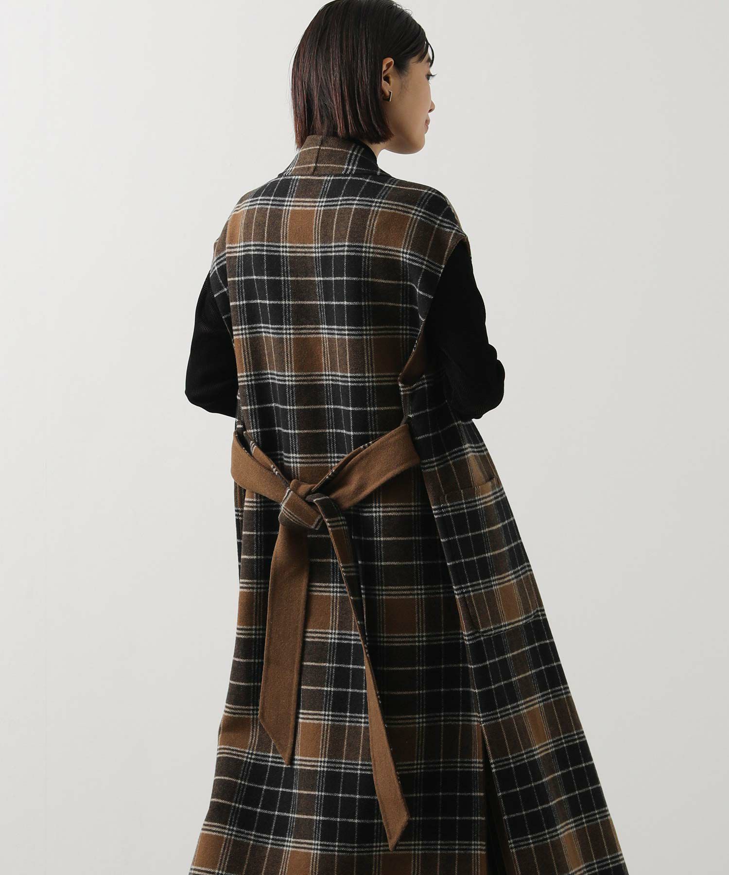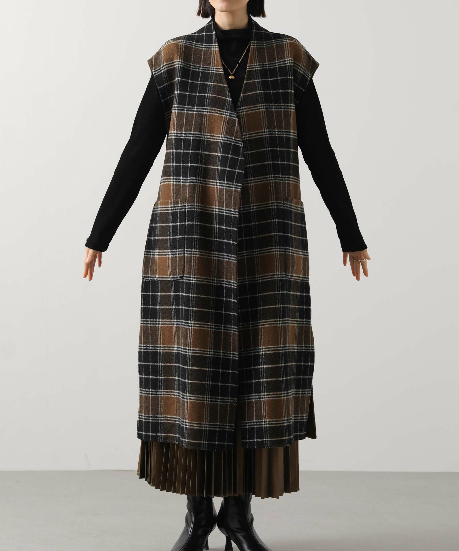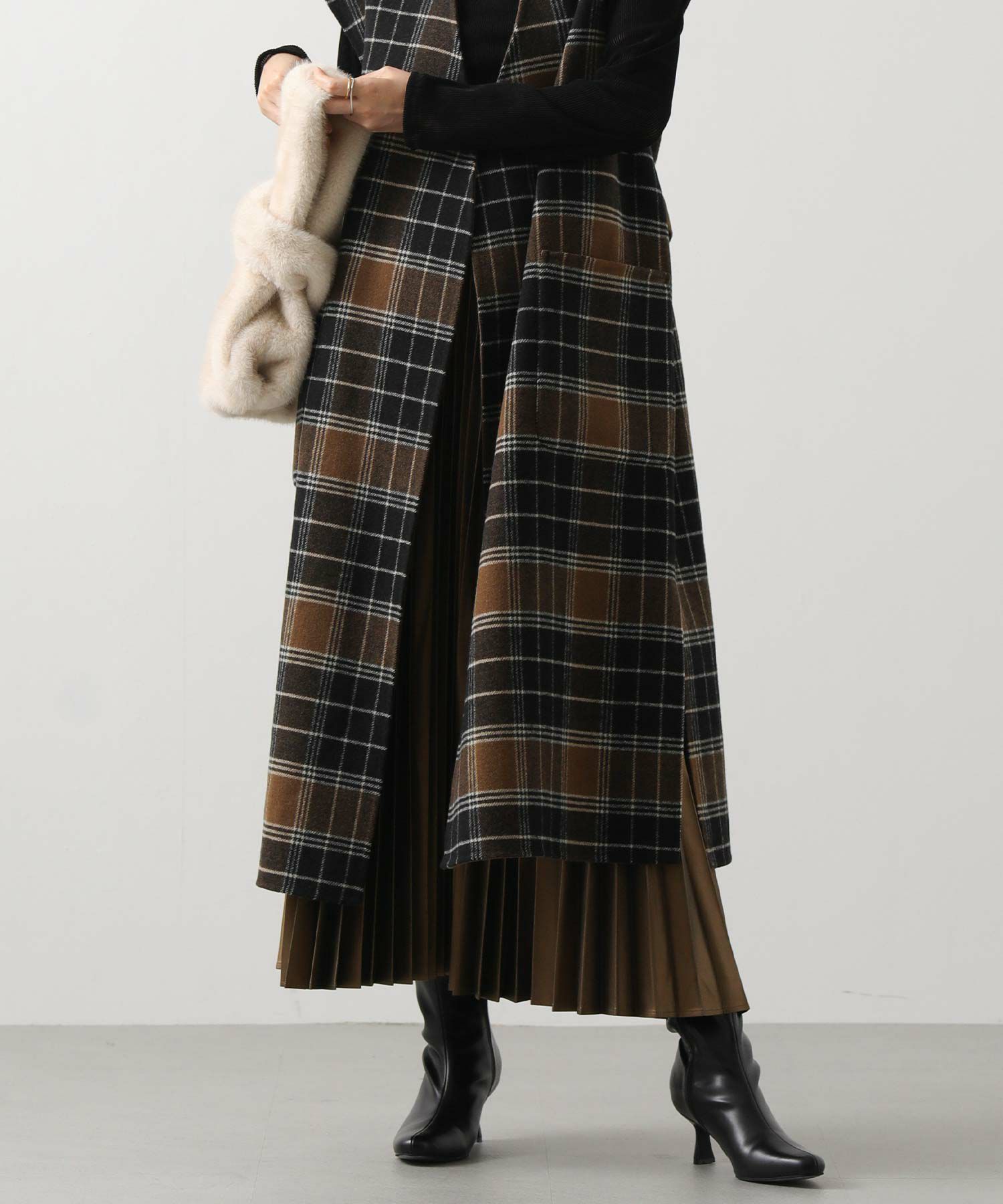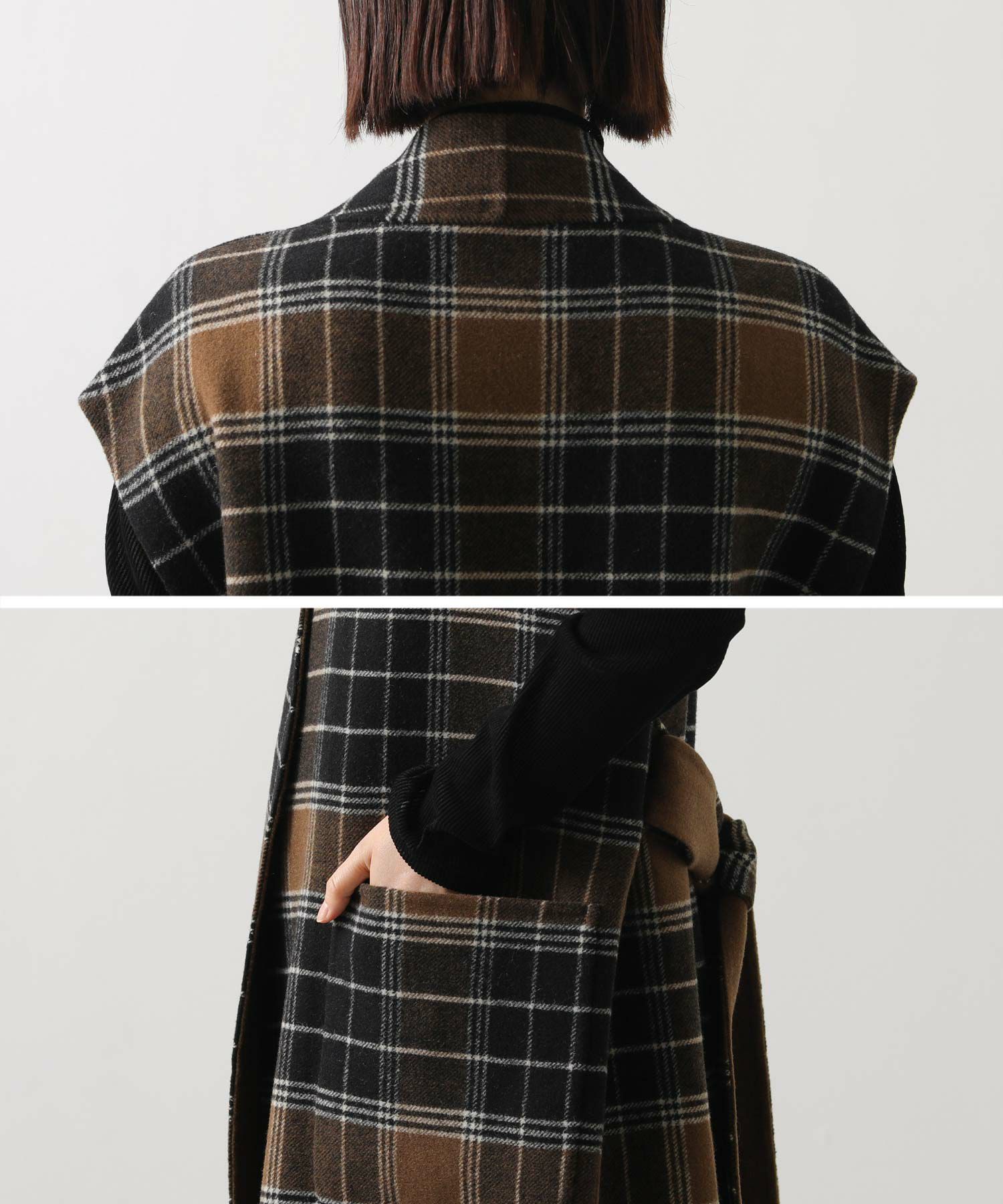 リバーシブルで着用でき、スタイリングに合わせて無地のジレで上品に、チェックのジレで華やかに着用できます。