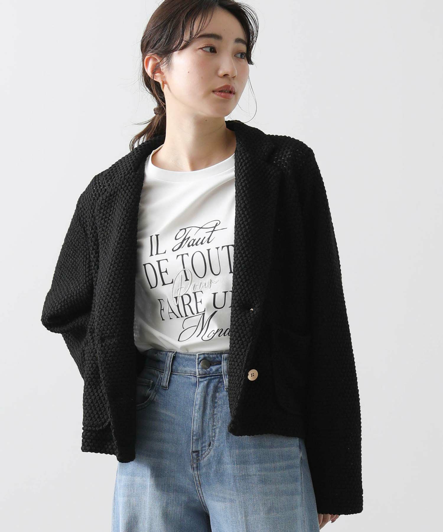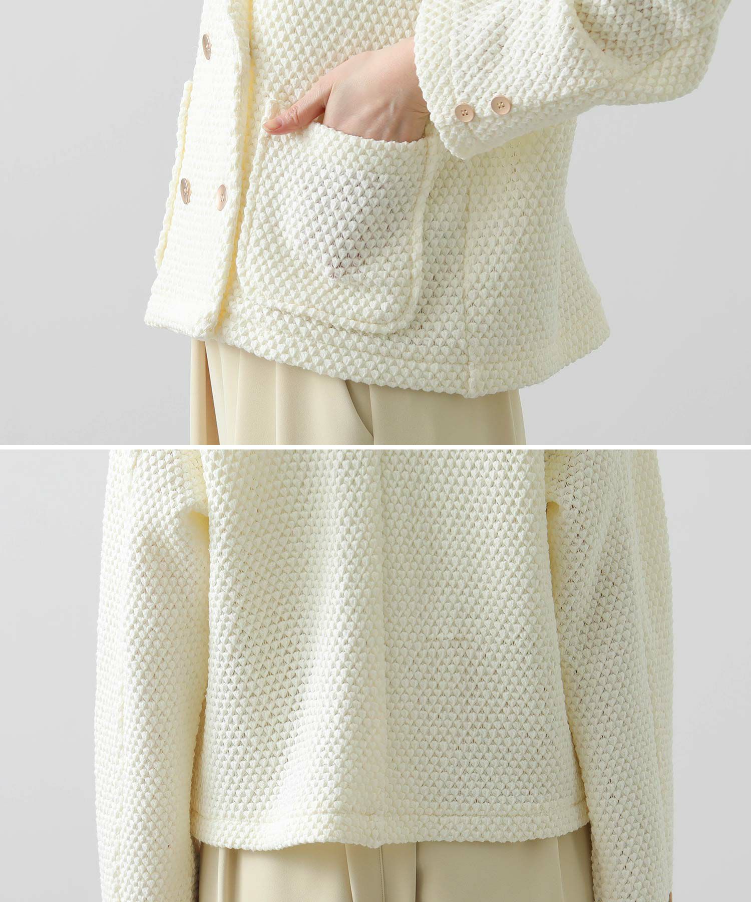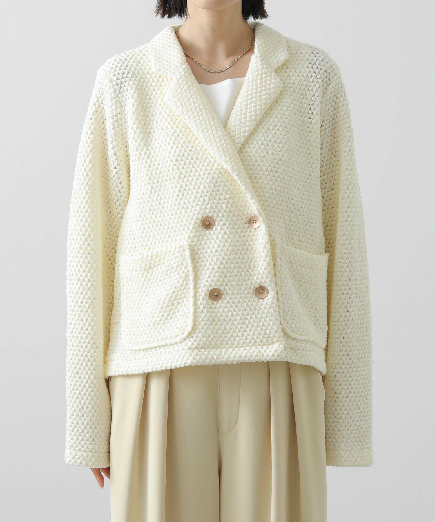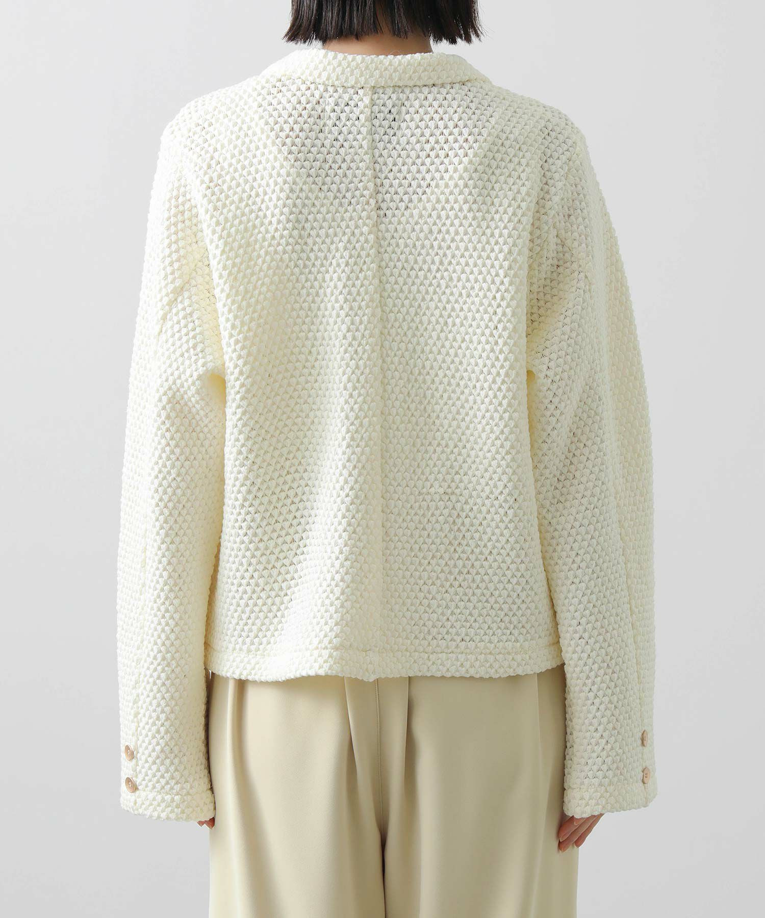 【CYAN tokyo(シアントーキョー)】から、ワッフル編みされたクロッシェレースのテーラードジャケットをセレクト。