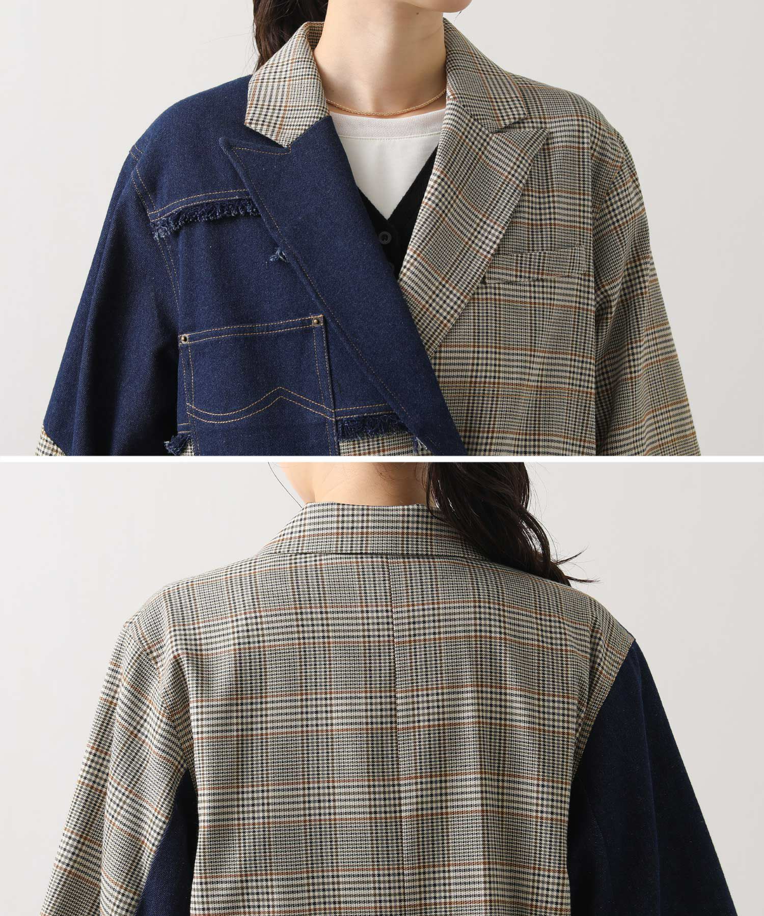 今年は秋らしいマニッシュなチェックを取り入れ、ストライプとデニムとの異素材をコンビネーション。