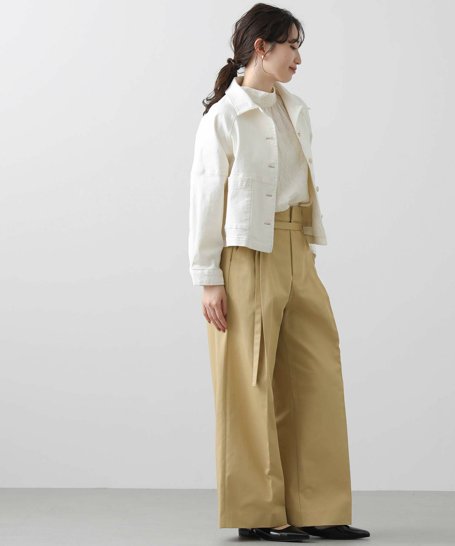 着丈短めのコンパクトなフォルムは、スカートやワイドパンツとも好相性。