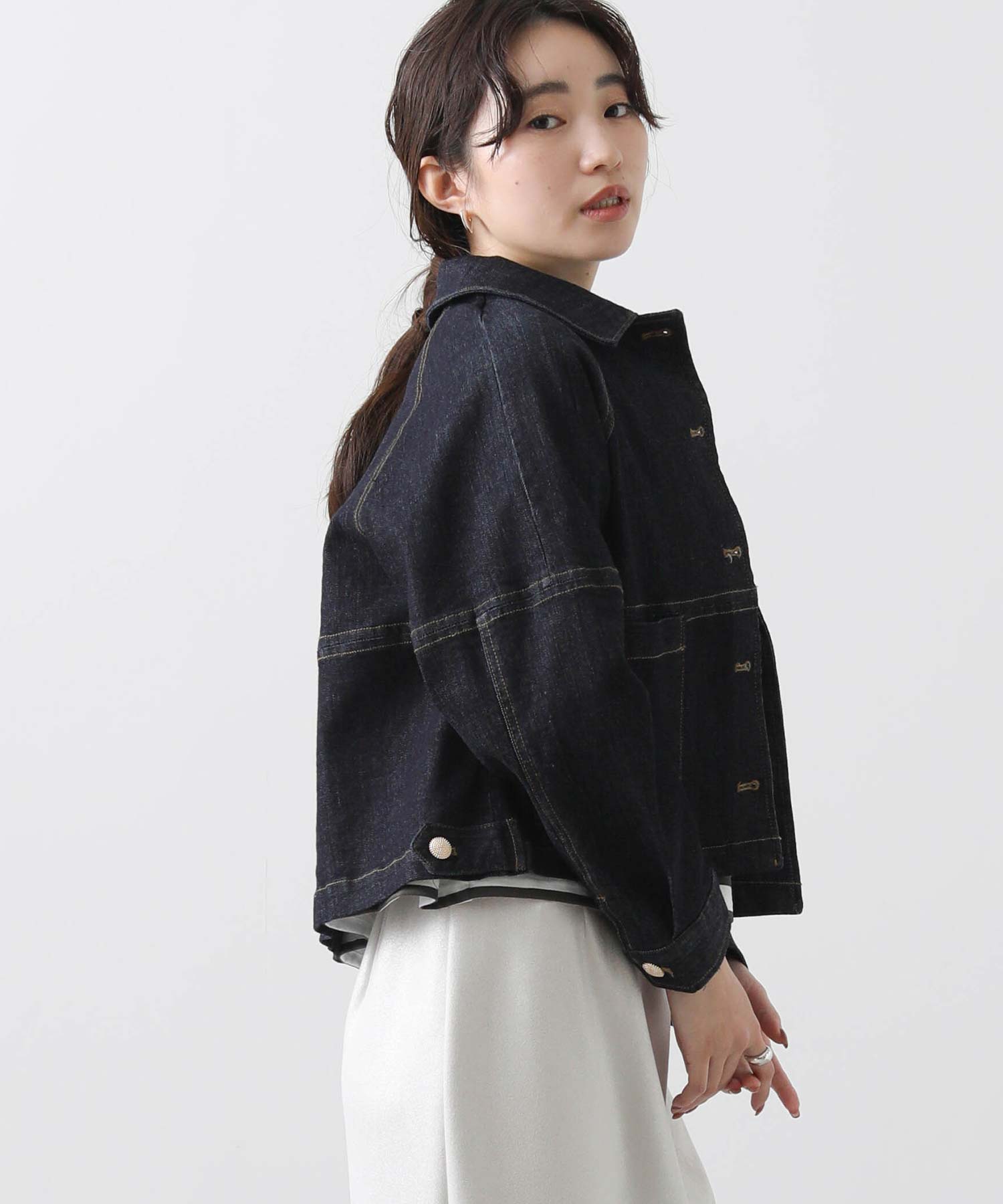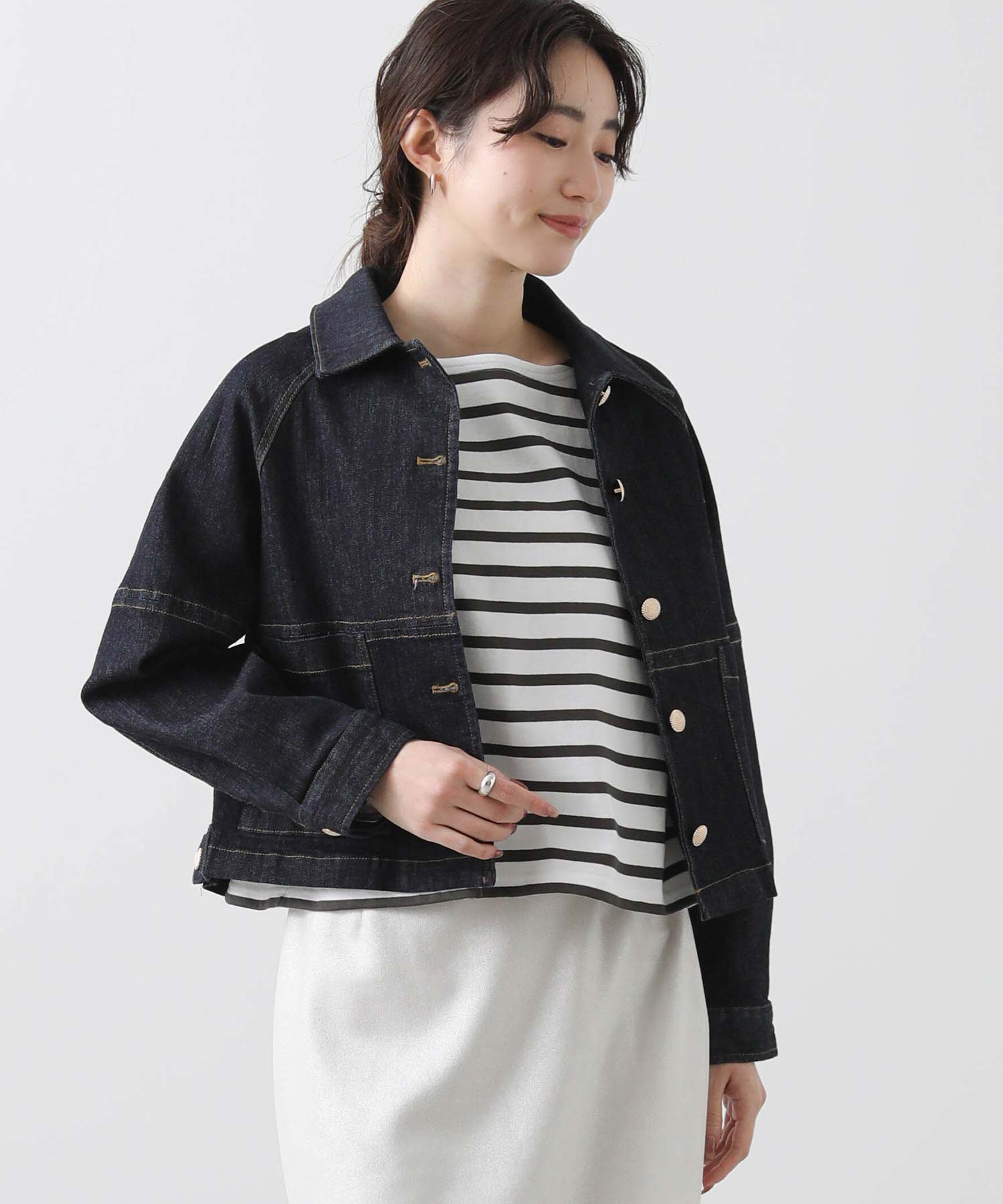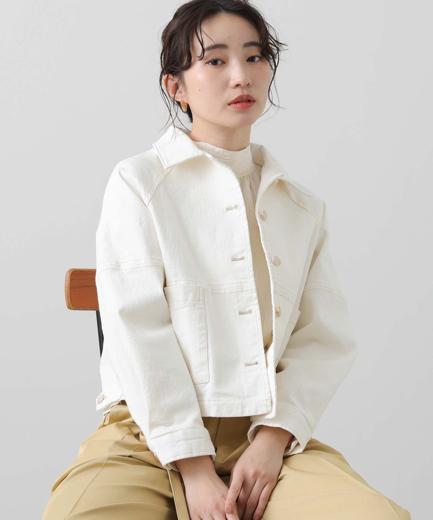 デニムのカジュアル感を楽しみつつ、女性らしい着こなしにもマッチするGジャン。襟付きだと、前を開けて着た時にサマになります。存在感のあるゴールド釦や配色ステッチがポイントでシンプルになり過ぎず、ストレッチが効いているので着心地が良いのも特徴です。