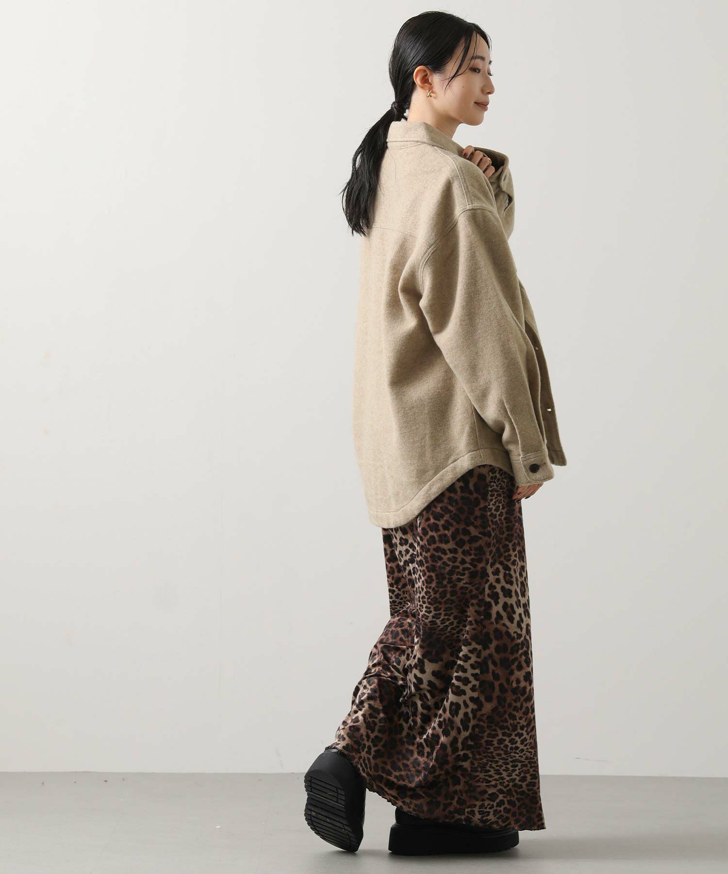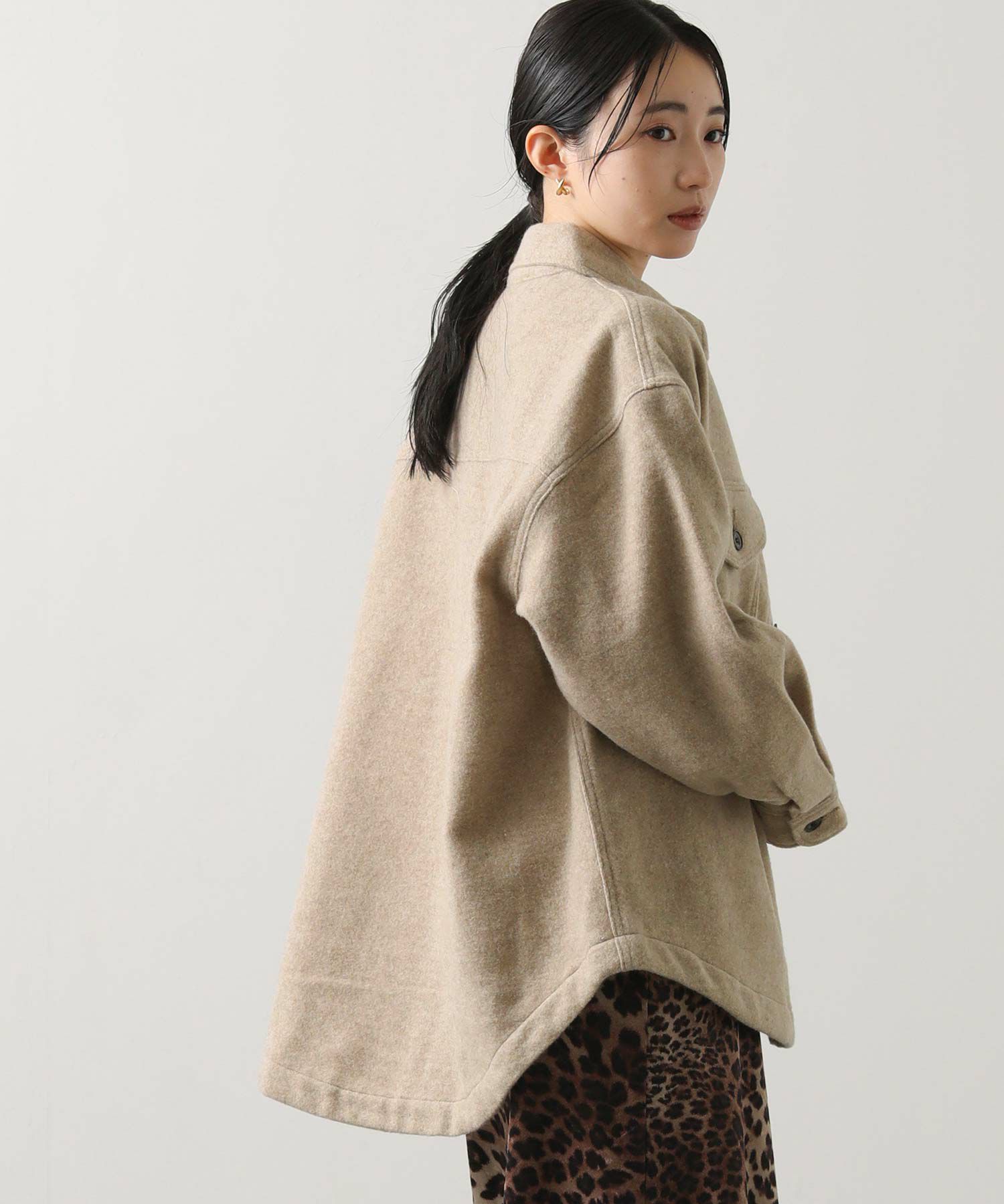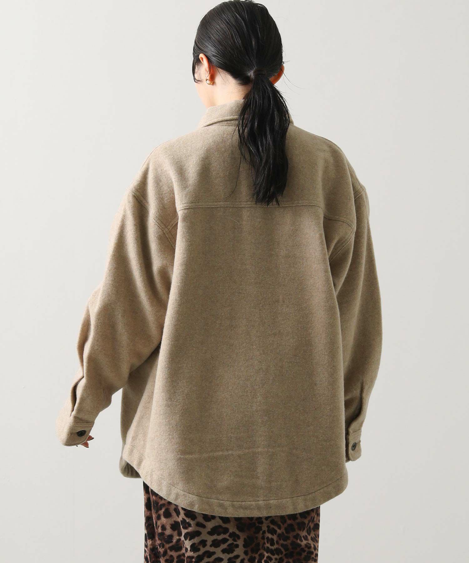 ややオーバーサイズ気味なシルエットながら、野暮ったく見えないよう計算されたデザイン。