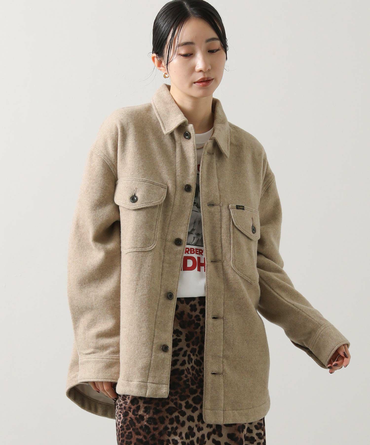 作業用ユニフォームをルーツとしたアウター・シャツのCPOジャケットを大人の女性に合うシルエットでアレンジ。