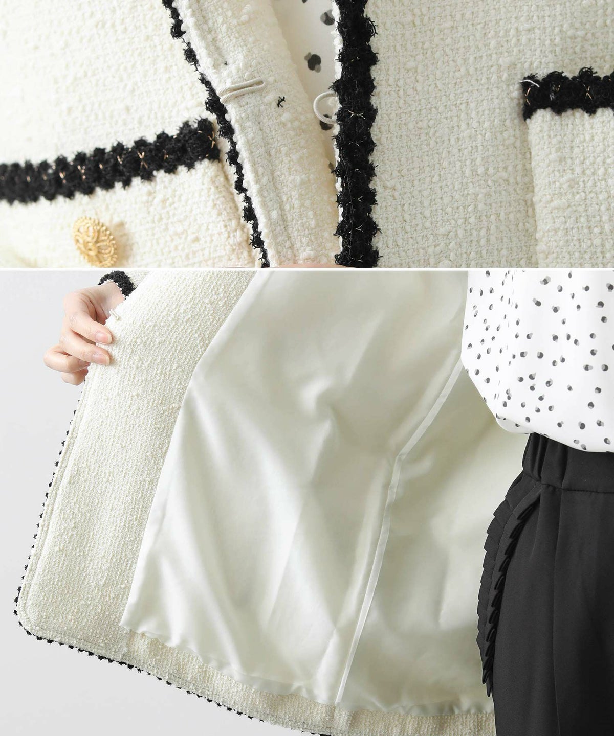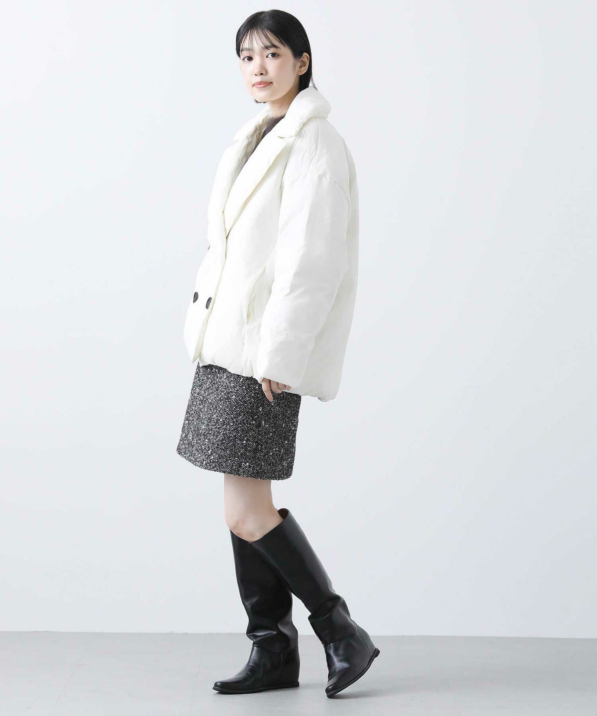 f.中綿ツィードヨーク切替ジャケット